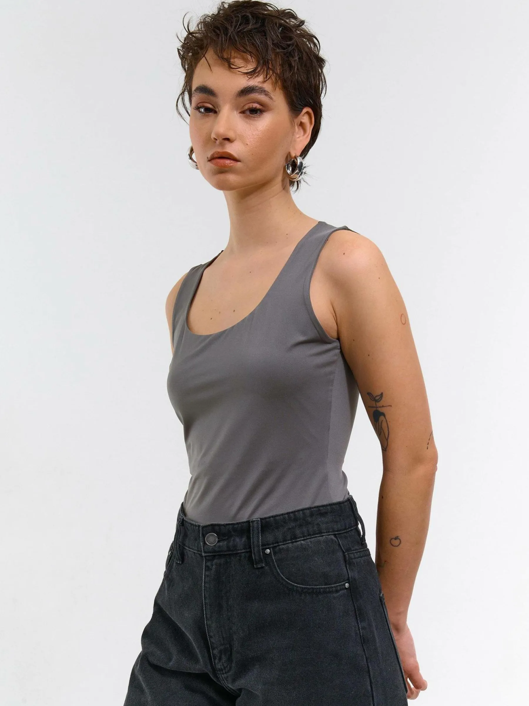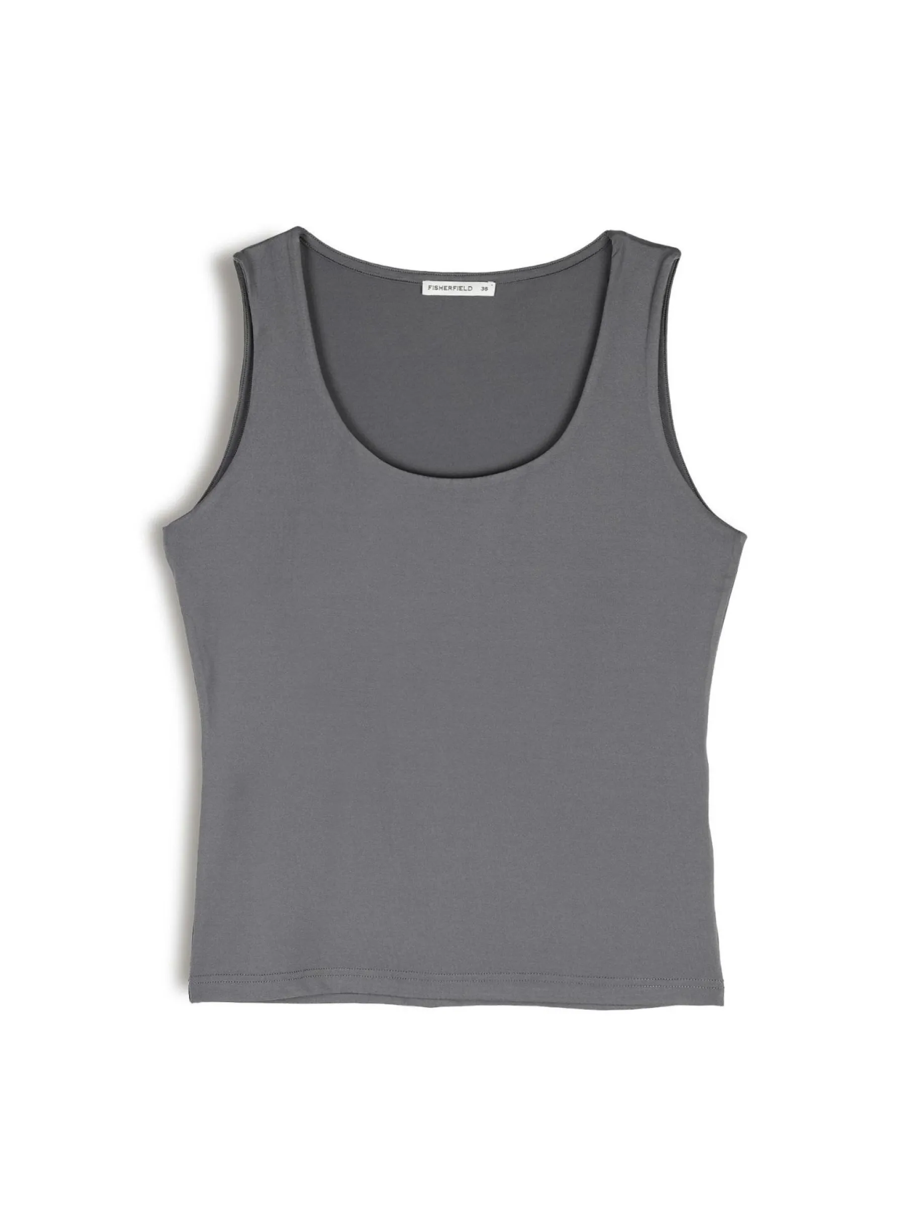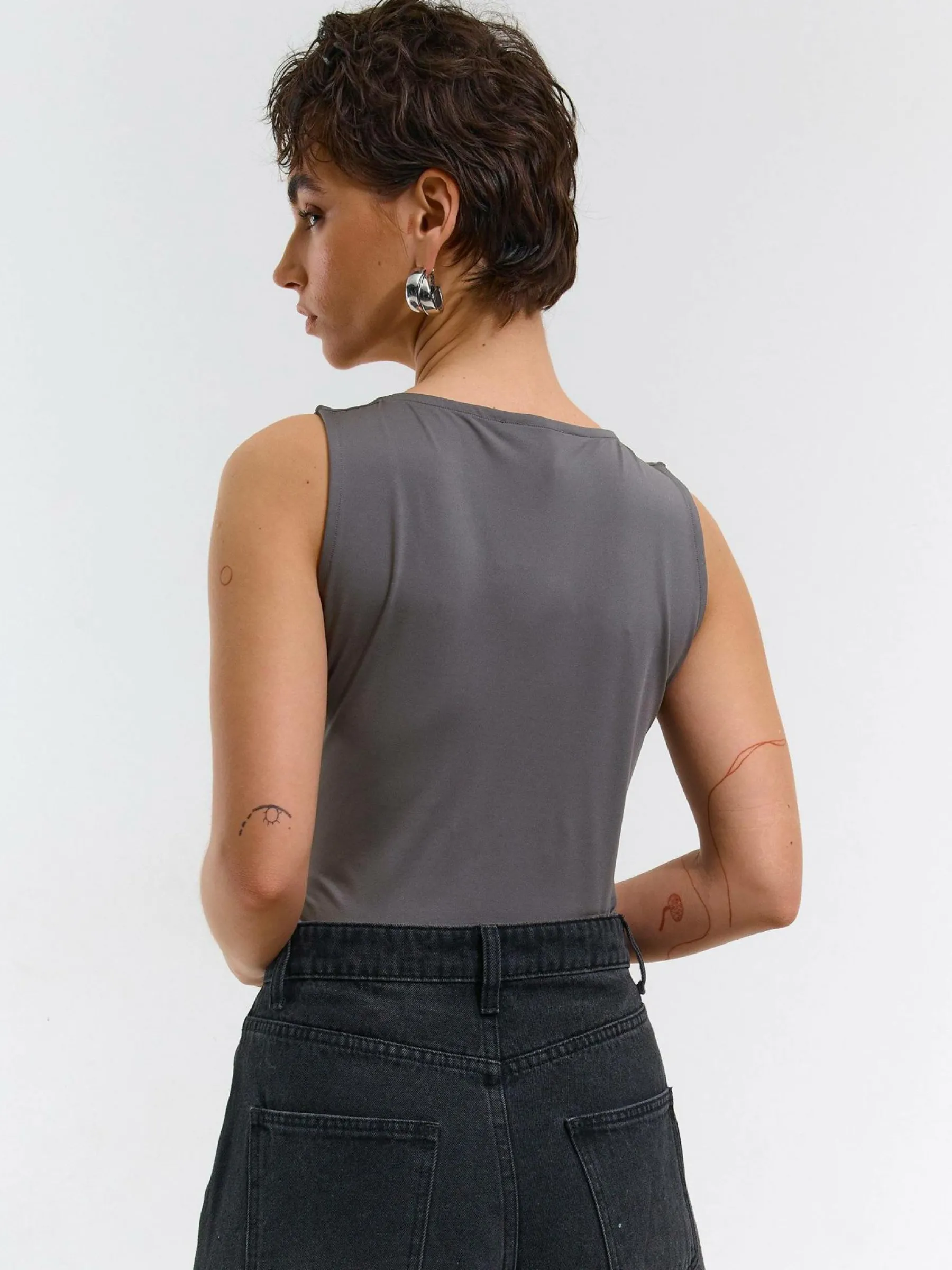 Kolor: szaryKrój: regularTyp: podkoszulekRekaw: bez rękawówDługość: krótkiPattern style: pojedynczy kolorDetal: n…
