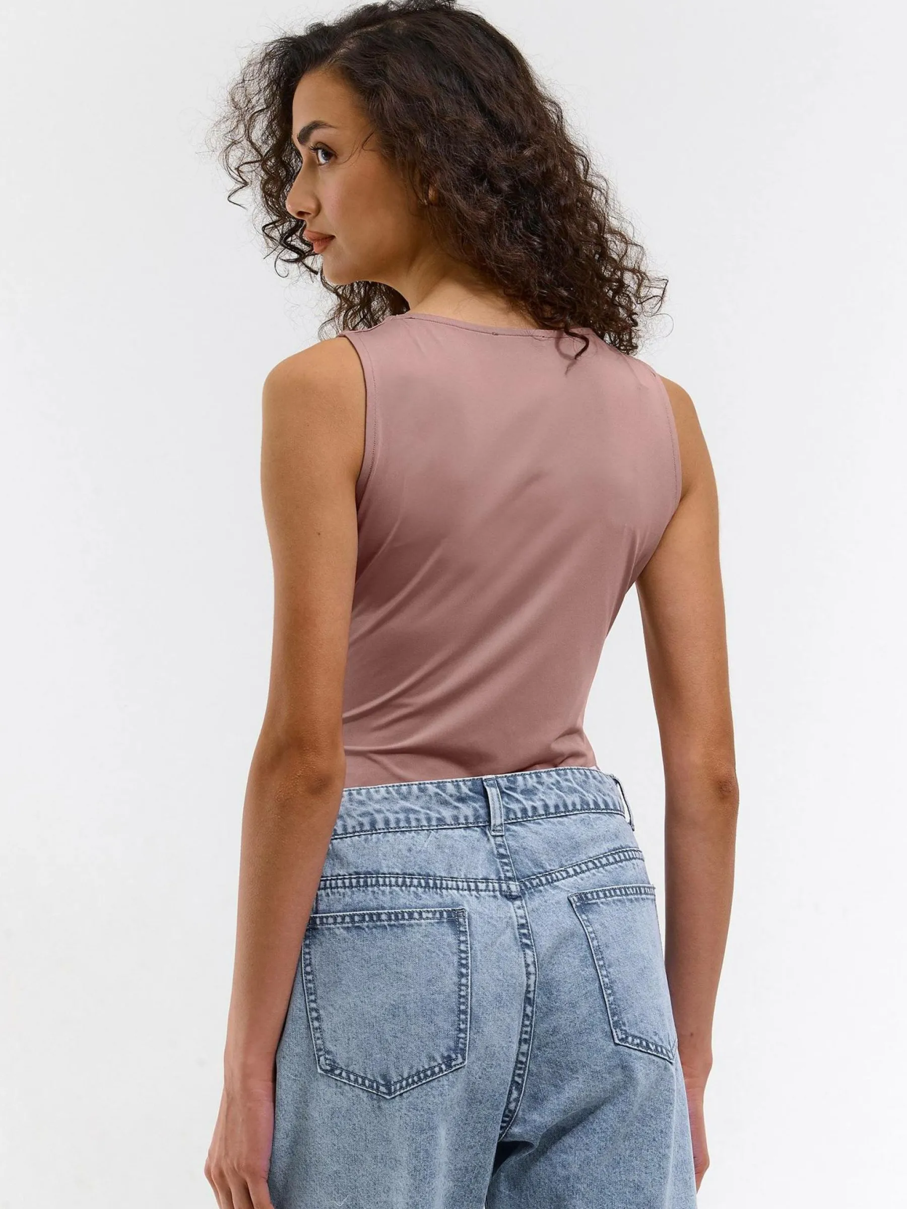 Kolor: różowyKrój: regularTyp: podkoszulekRekaw: bez rękawówDługość: krótkiPattern style: pojedynczy kolorDetal…