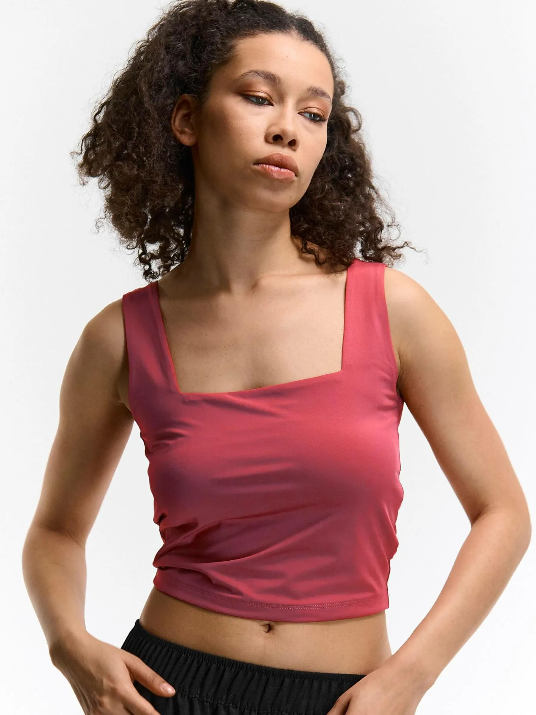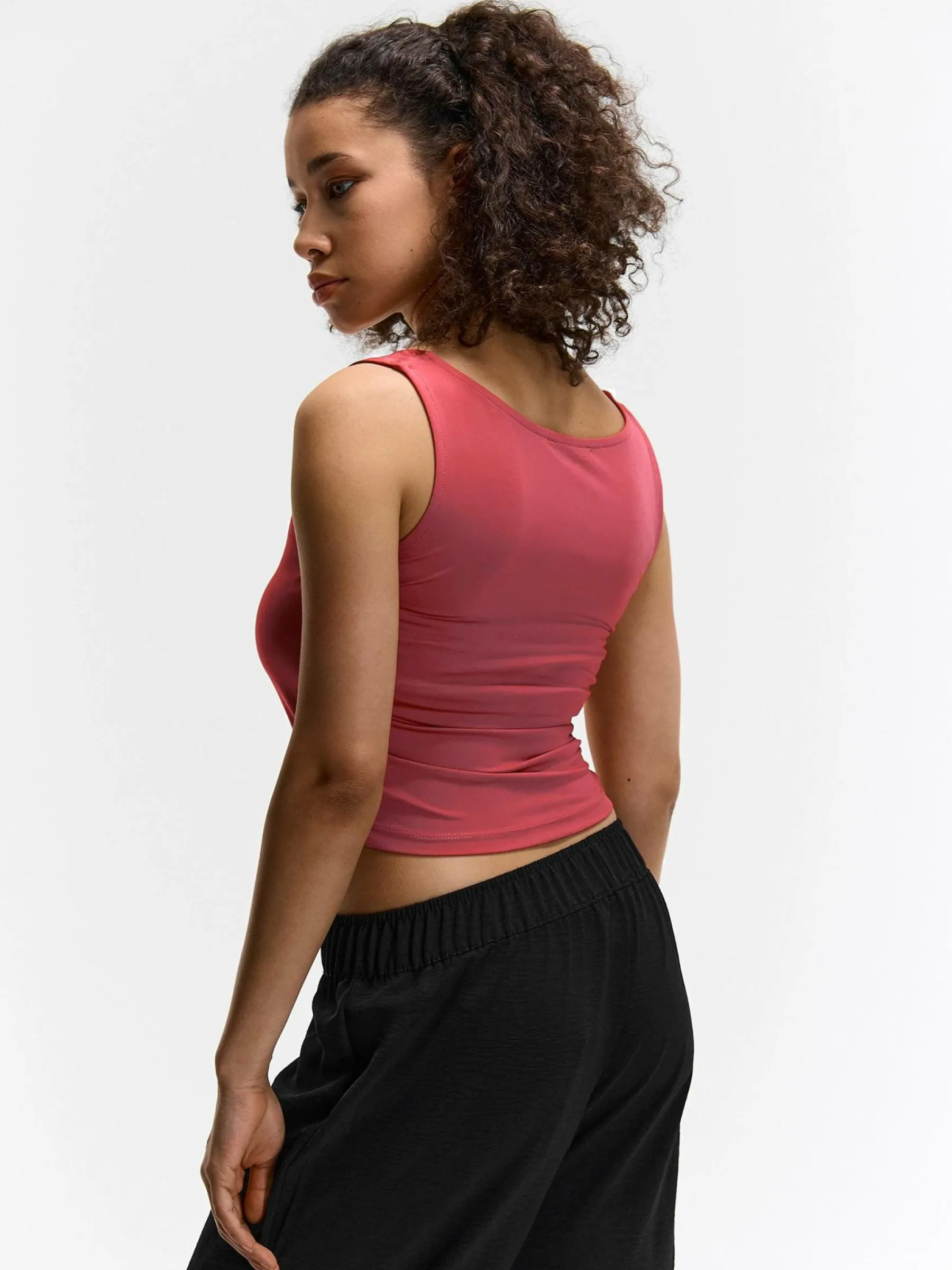 Kolor: różowyKrój: regularTyp: podkoszulekRekaw: bez rękawówDługość: krótki topPattern style: pojedynczy kolorD…