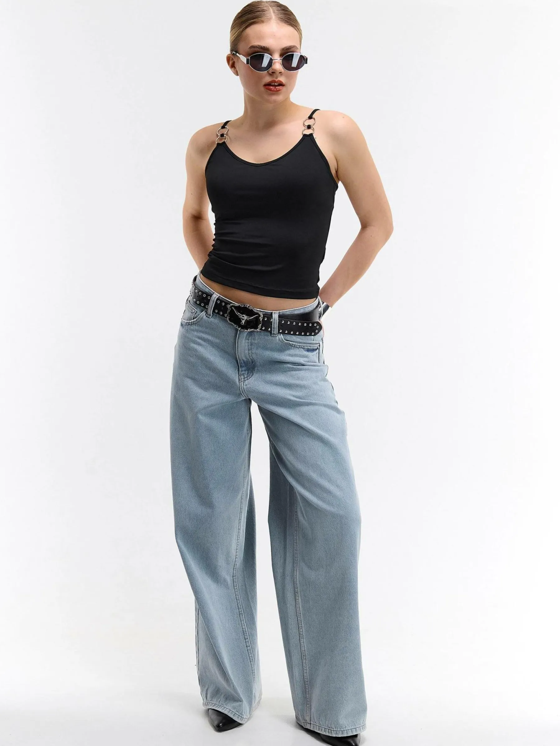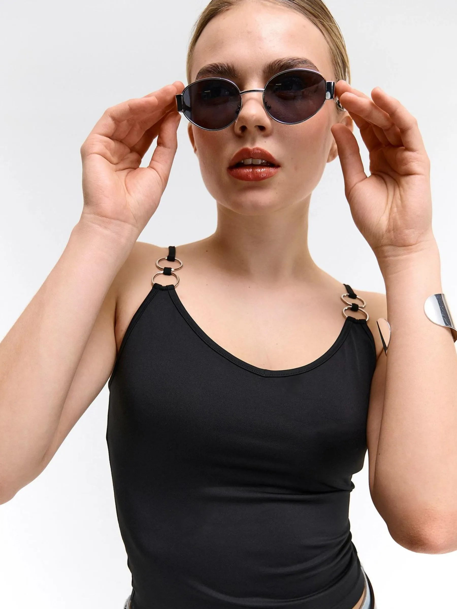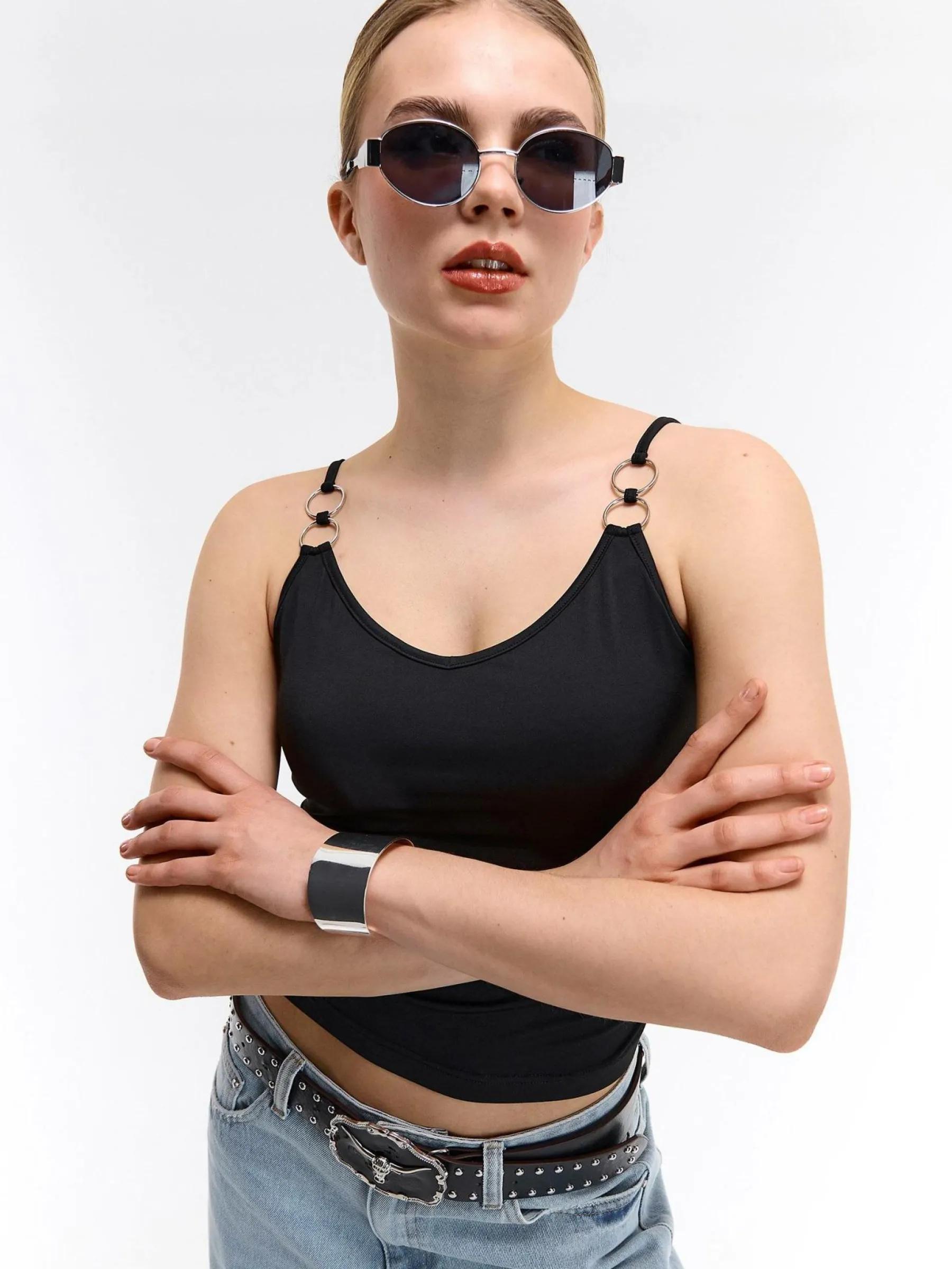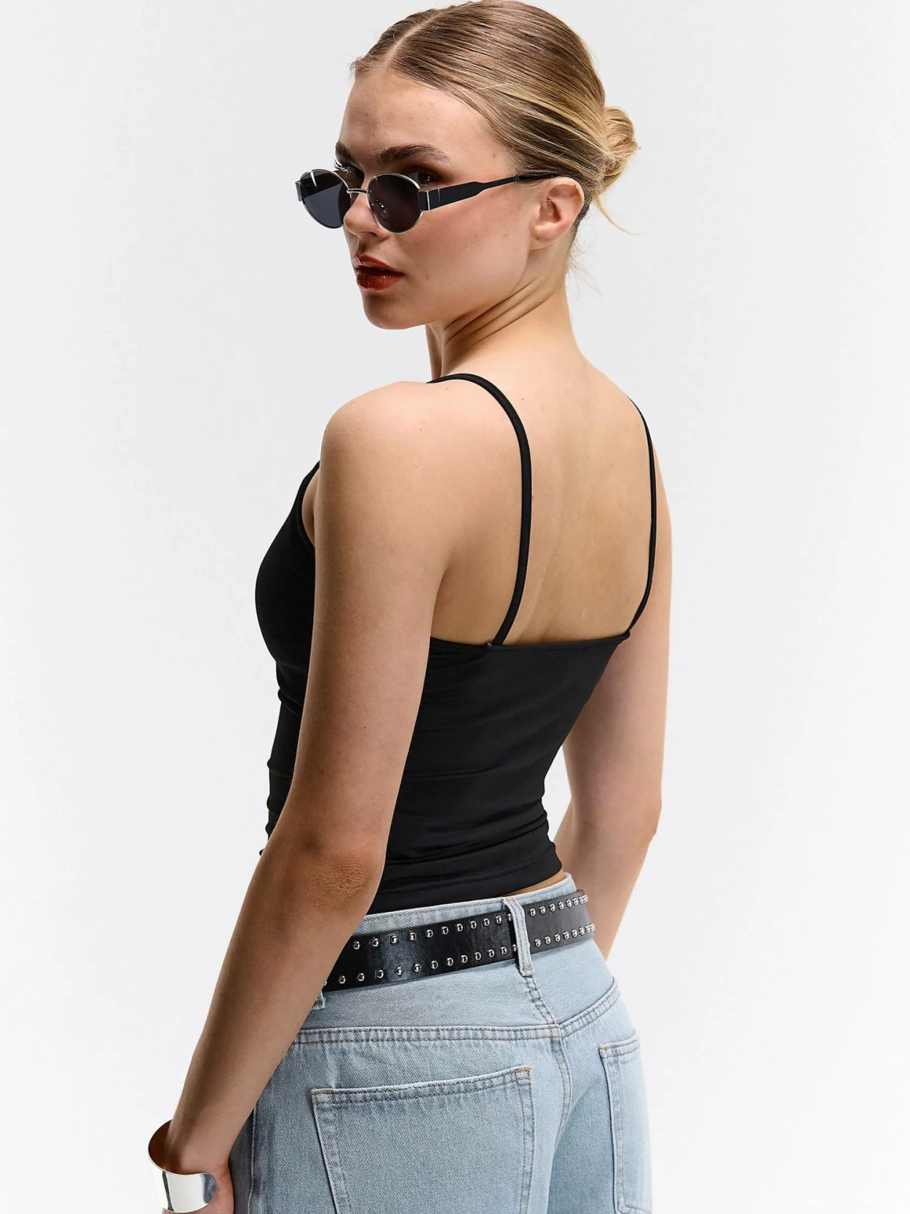 Kolor: czarnyKrój: regularTyp: podkoszulekRekaw: bez rękawówDługość: krótki topPattern style: pojedynczy kolorDet…
