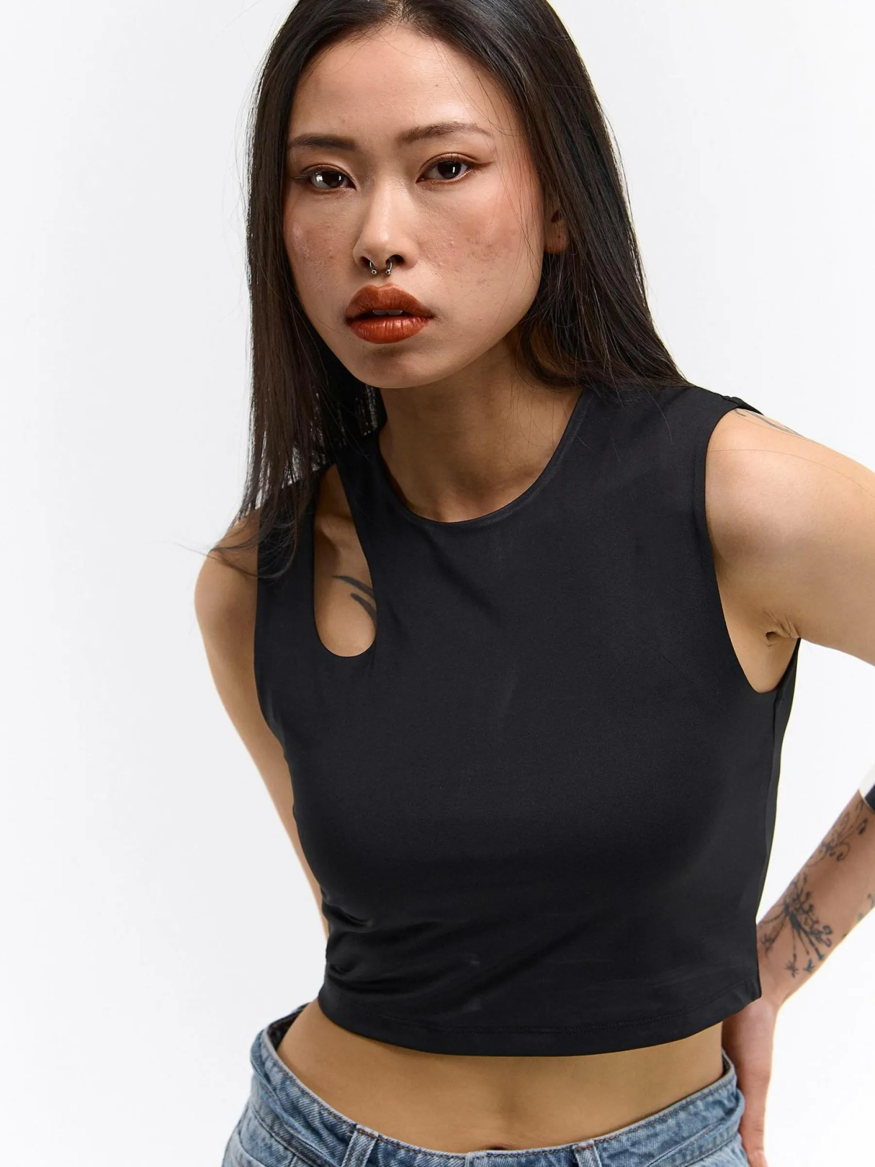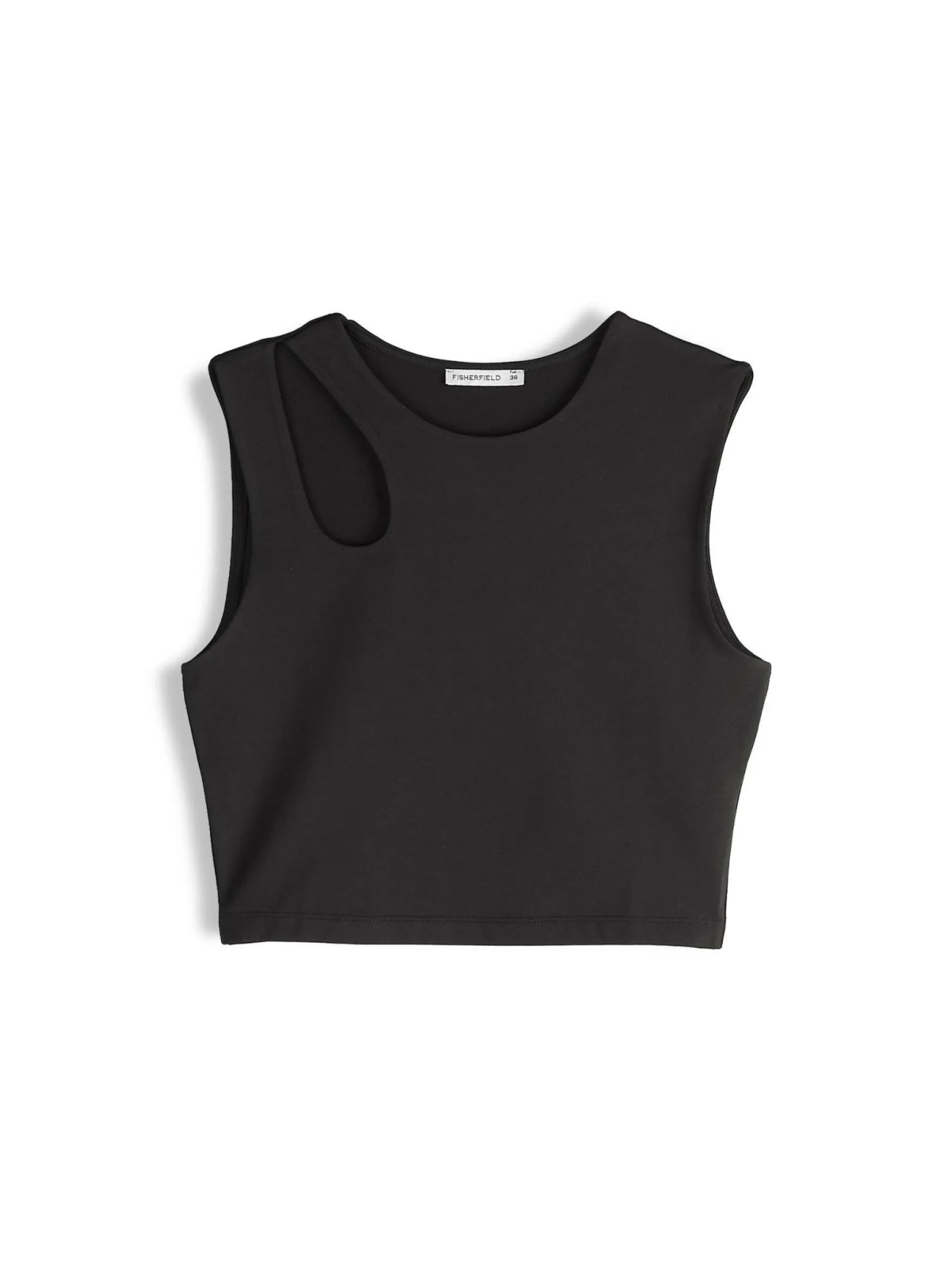 Kolor: czarnyKrój: regularTyp: podkoszulekRekaw: bez rękawówDługość: krótkiPattern style: pojedynczy kolorDetal: …