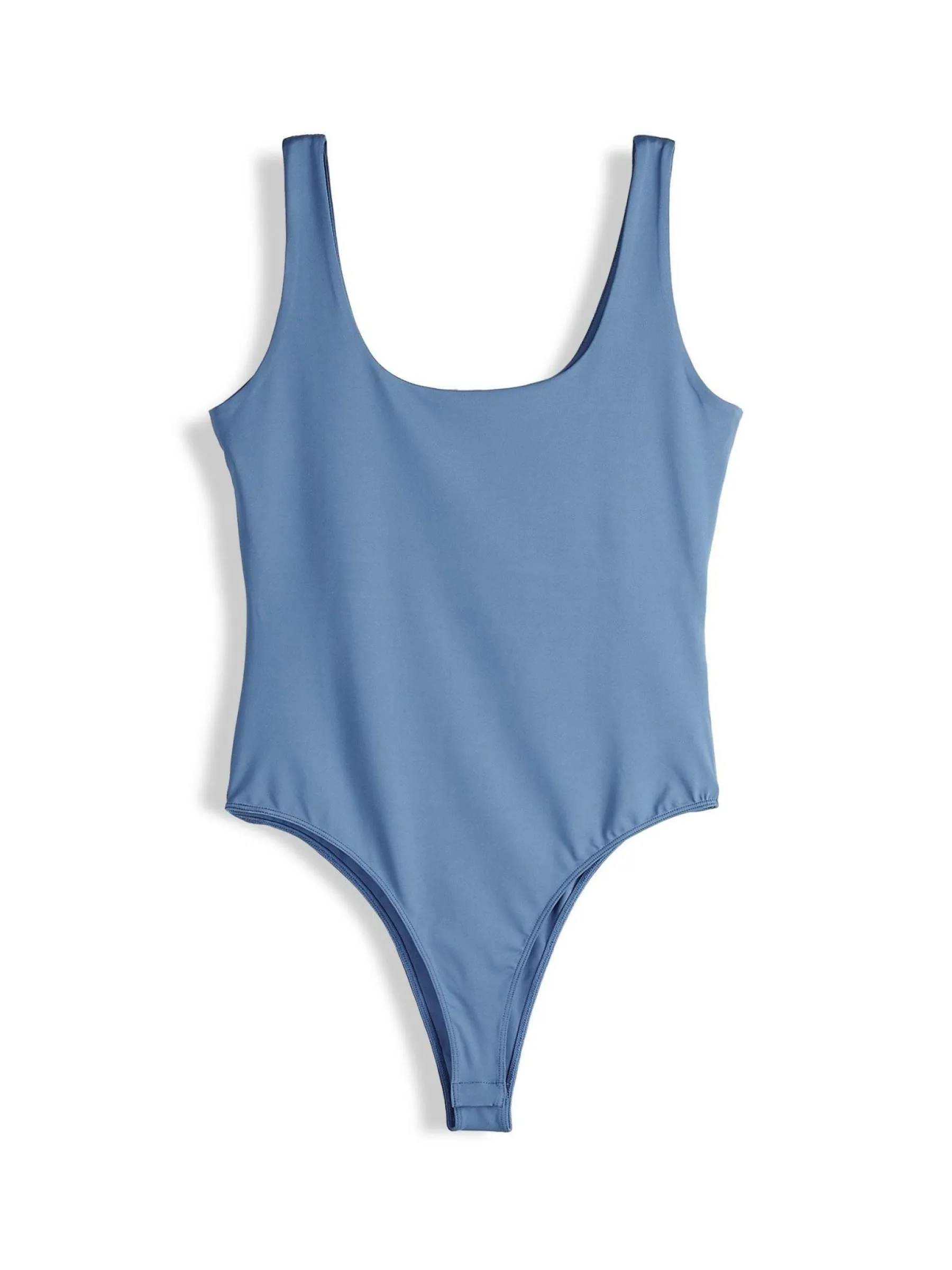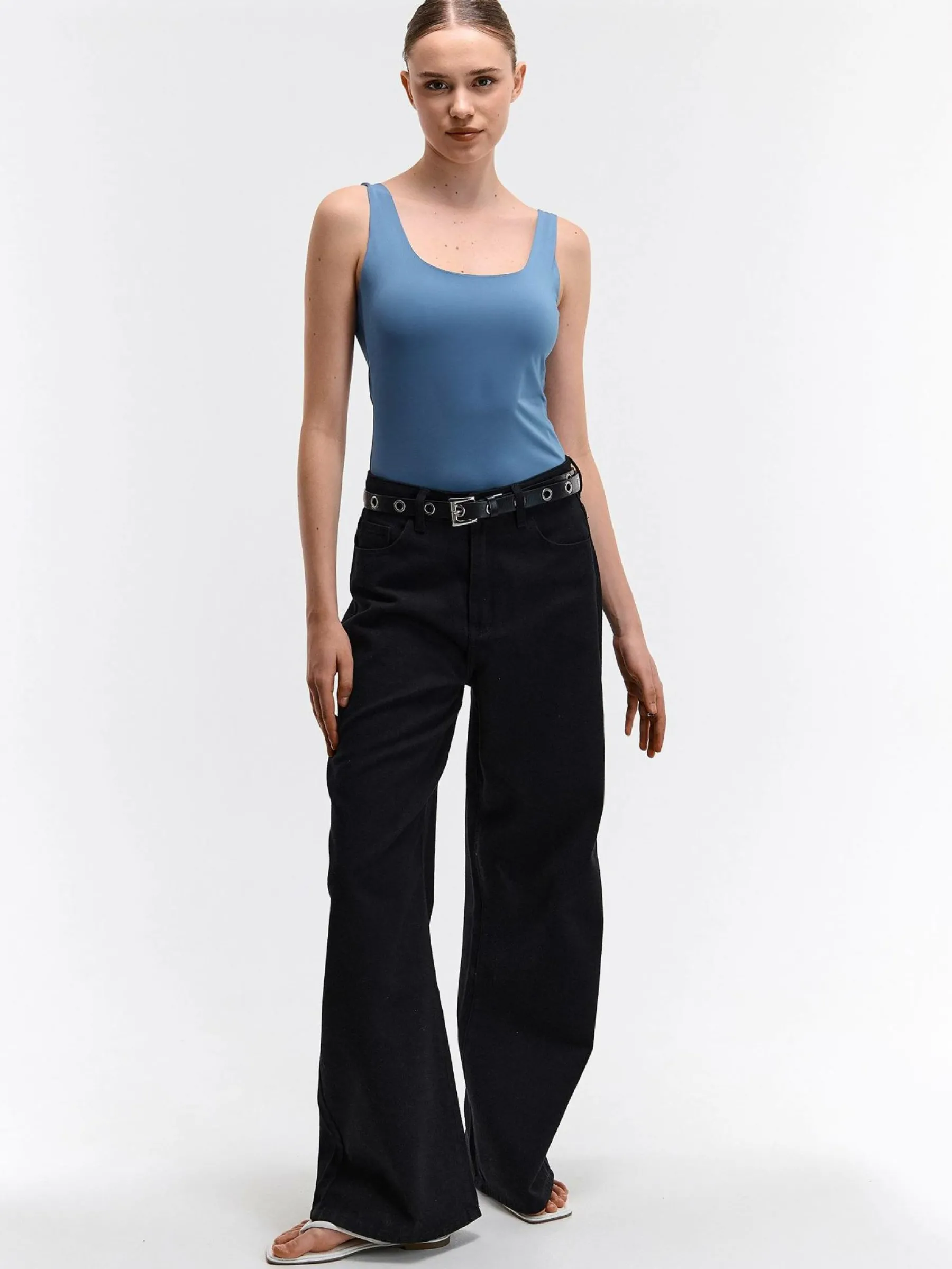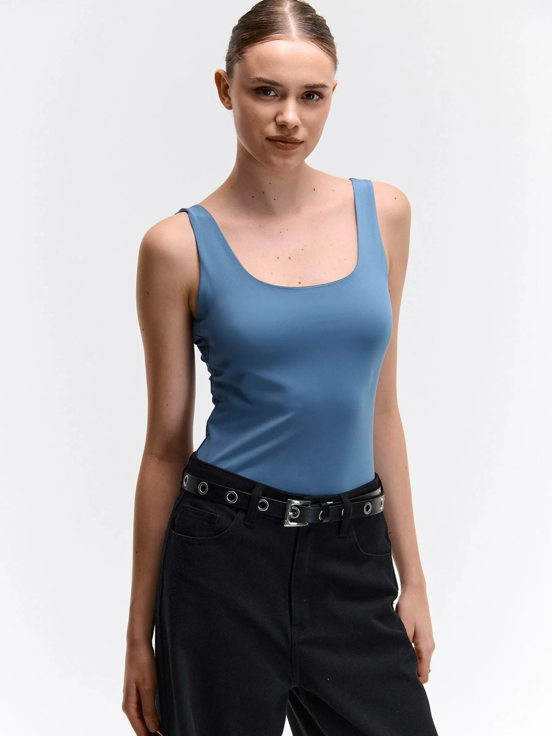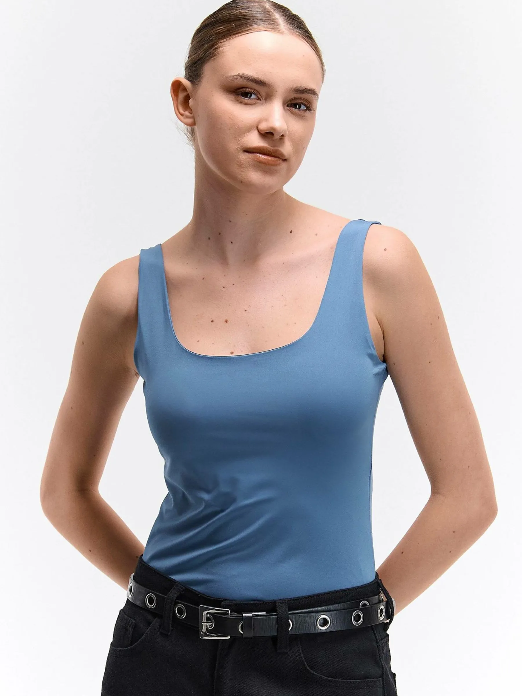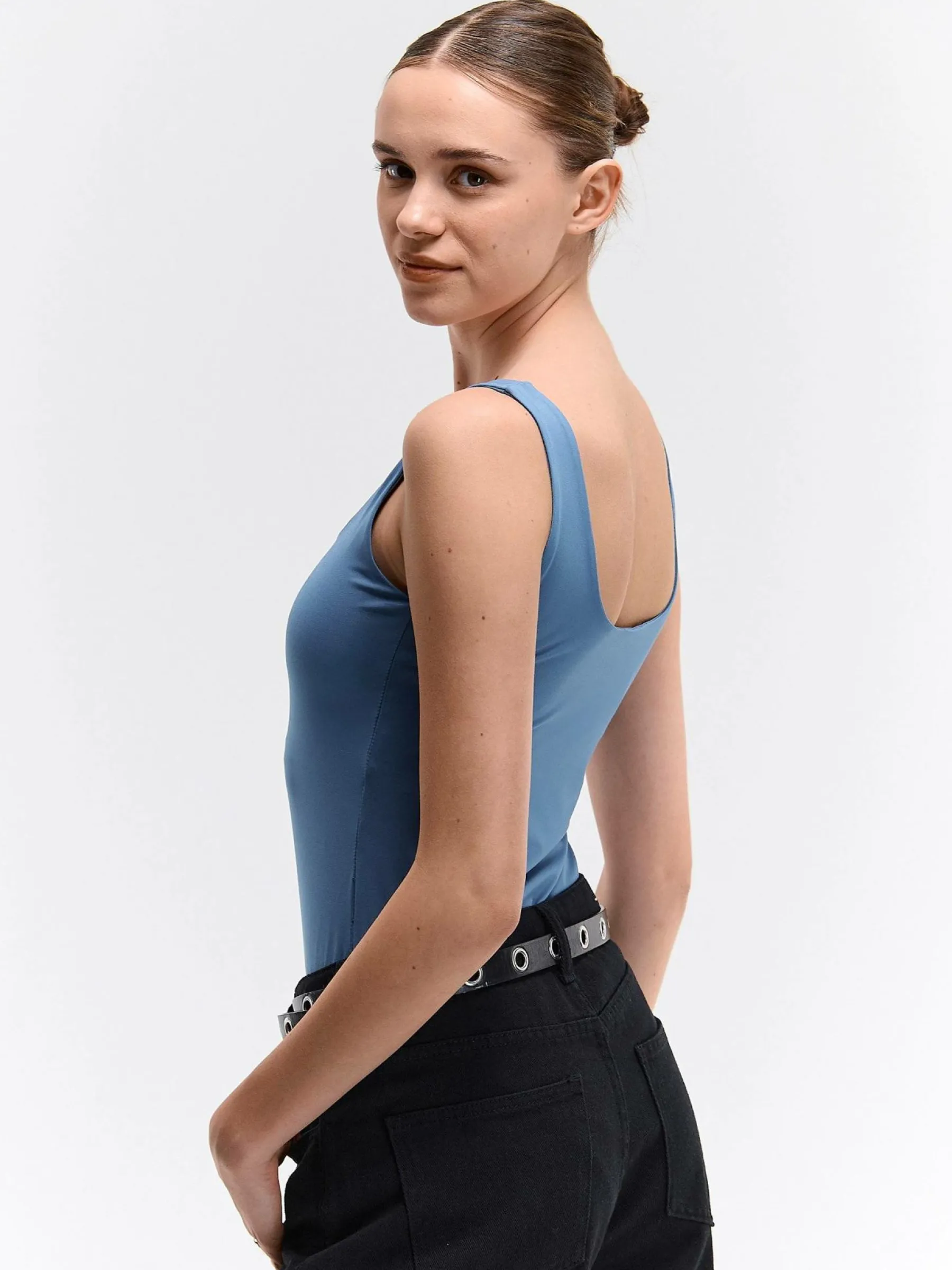 Kolor: niebieskiKrój: slimTyp: bodyRekaw: bez rękawówDługość: krótkiPattern style: pojedynczy kolorDetal: na snap…