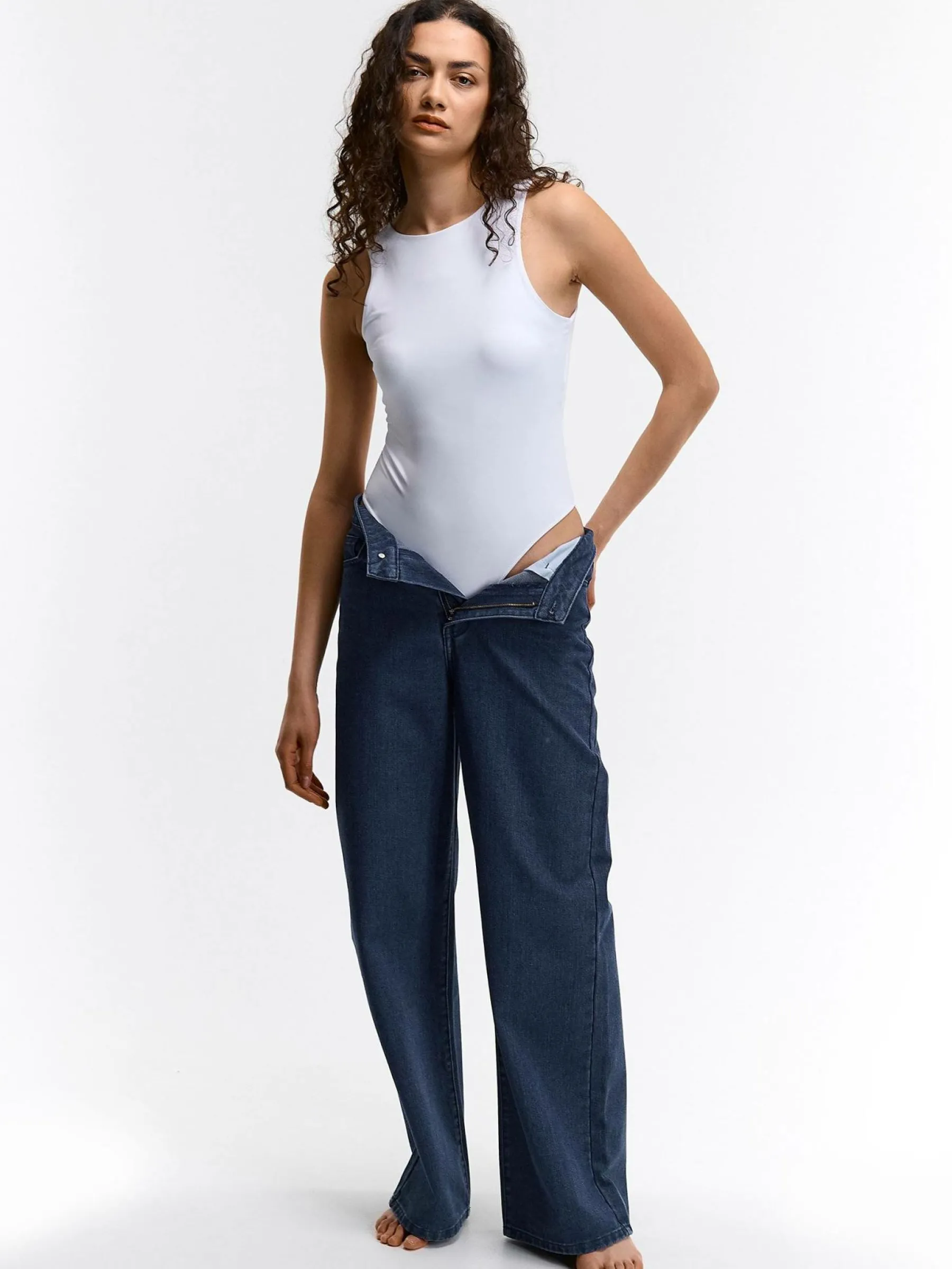 Kolor: białyKrój: slimTyp: bodyRekaw: bez rękawówDługość: krótkiPattern style: pojedynczy kolorDetal: na snapyMa…