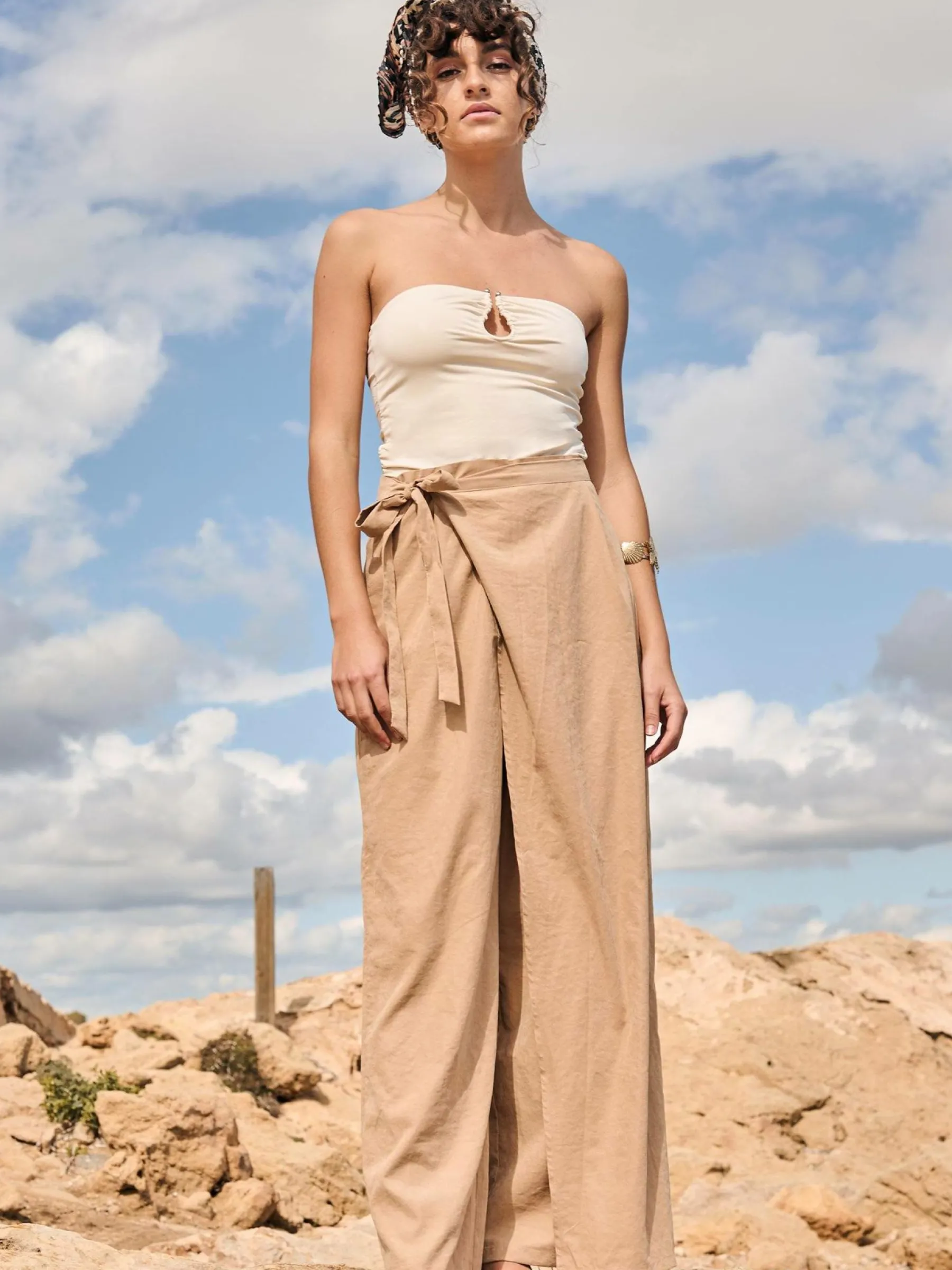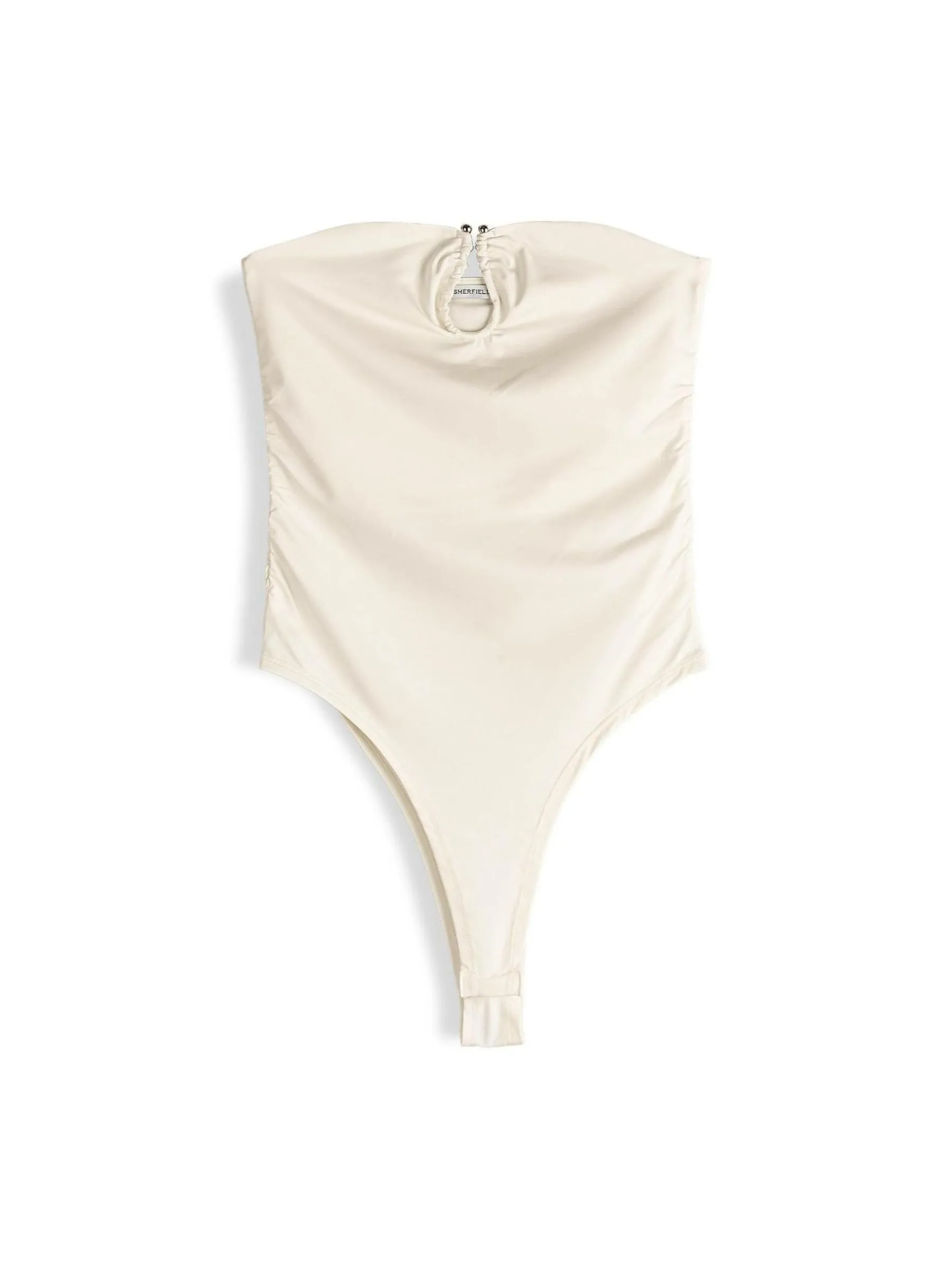 Kolor: beżowyKrój: z odkrytymi ramionamiTyp: bodyRekaw: bez rękawówDługość: krótkiPattern style: pojedynczy kolo…