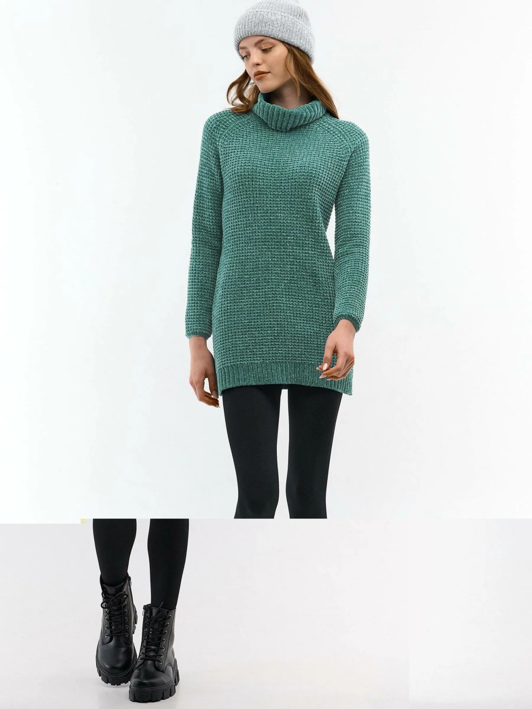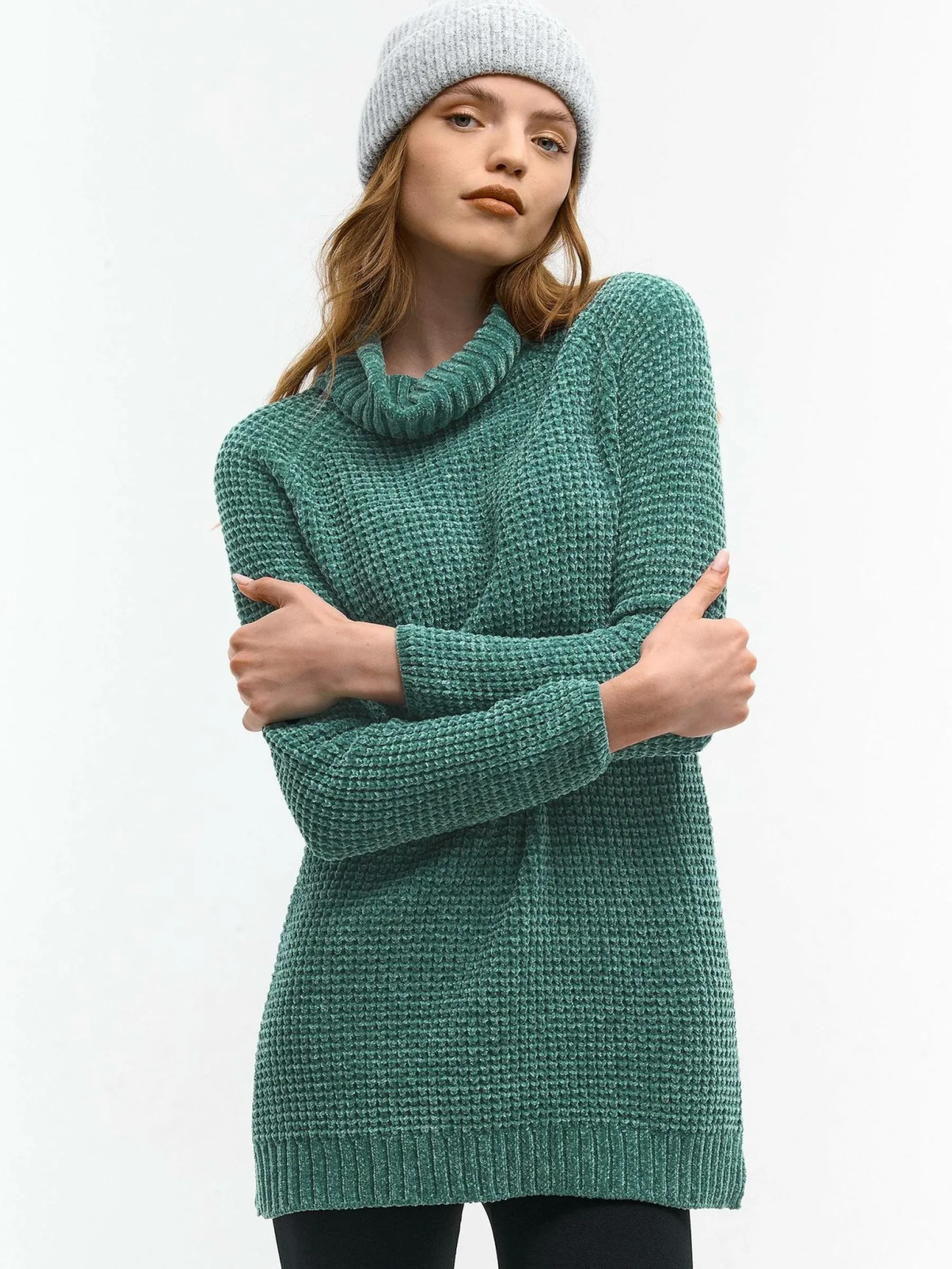 Kolor: zielonyKrój: regularTyp: swetryRekaw: długi rękawDługość: dlugiePattern style: pojedynczy kolor, strukturow…