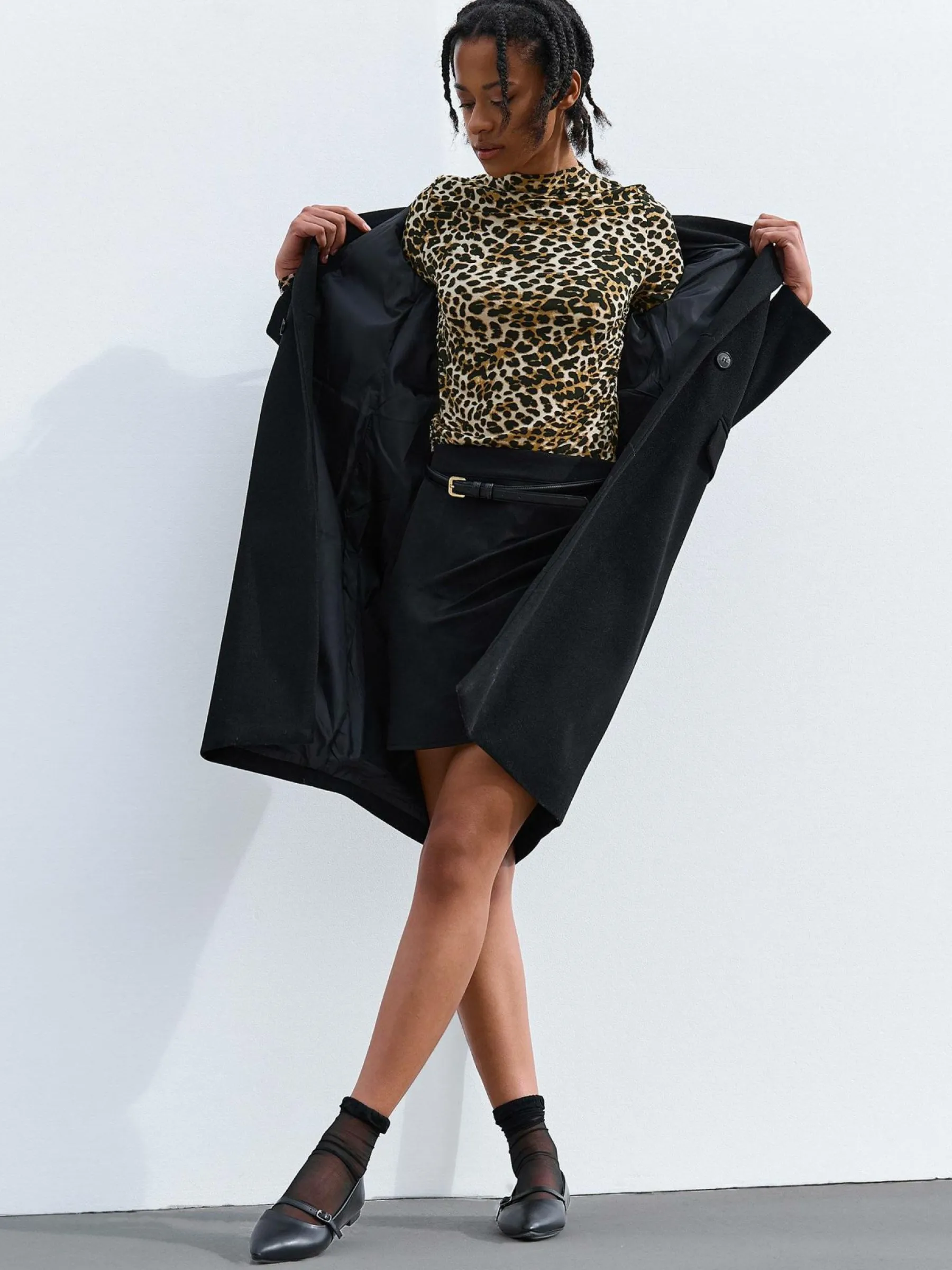 Kolor: beżowyKrój: regularTyp: top, golfRekaw: długi rękawDługość: krótkiPattern style: zwierzecy, z nadrukiemDe…