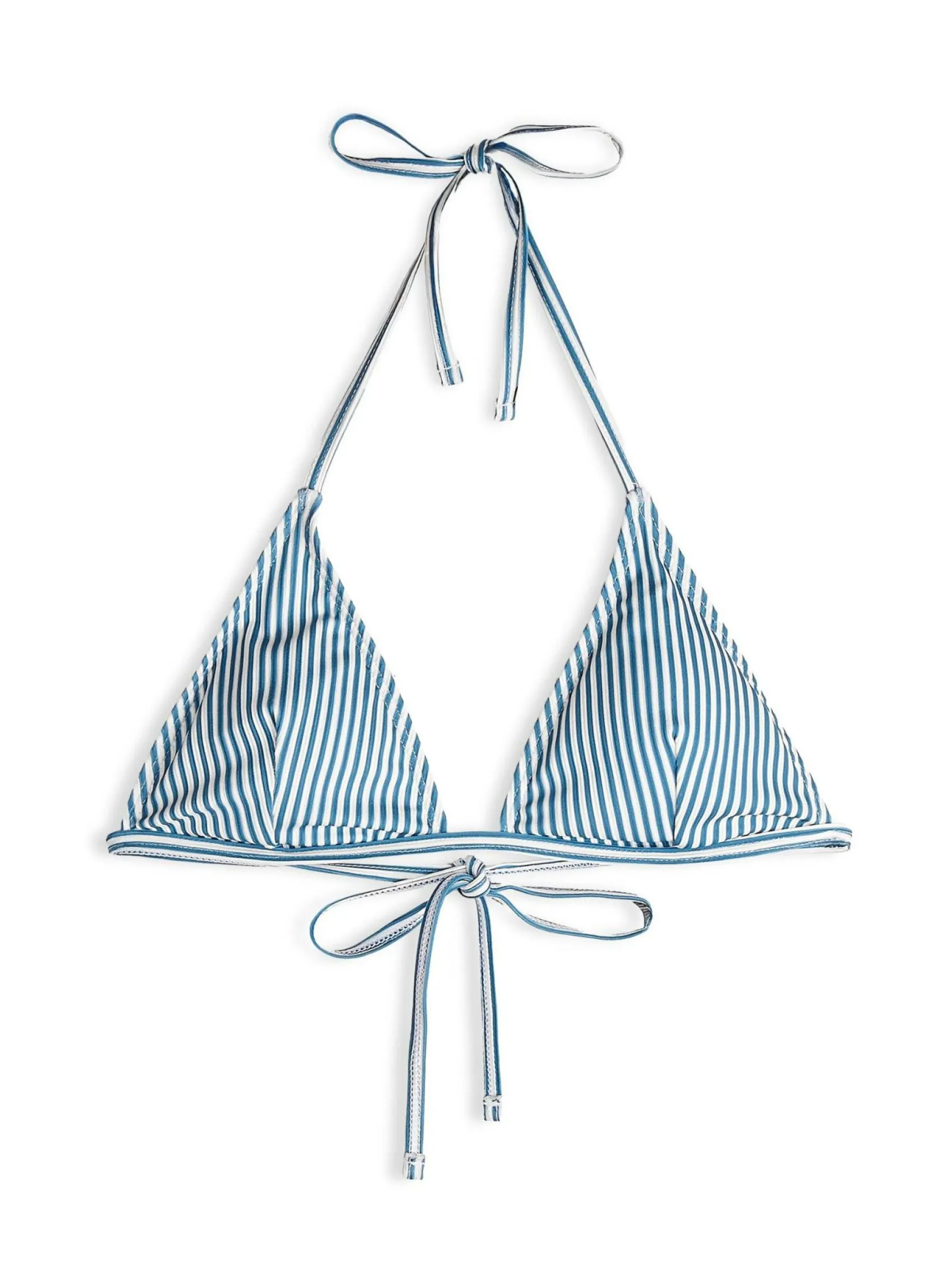 Kolor: niebieskiKrój: bikiniTyp: góra od bikiniPattern style: w prążkiDetal: trójkatne, z wiązaniem na szyi, wyjmo…