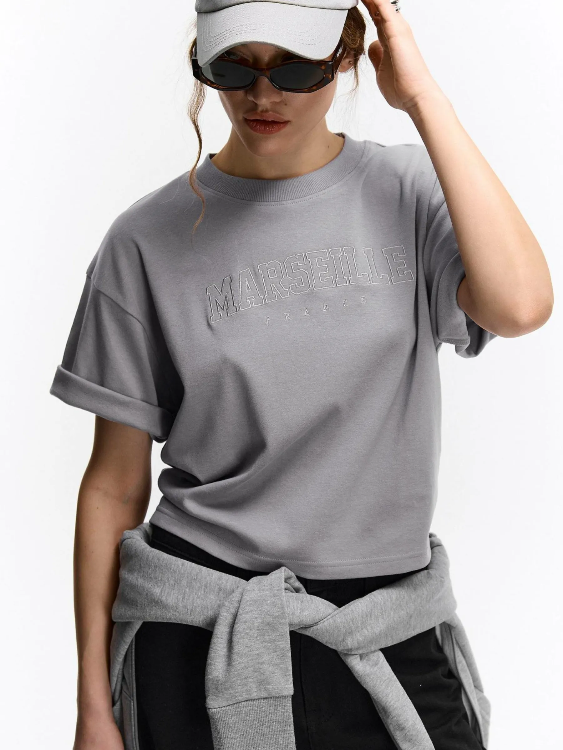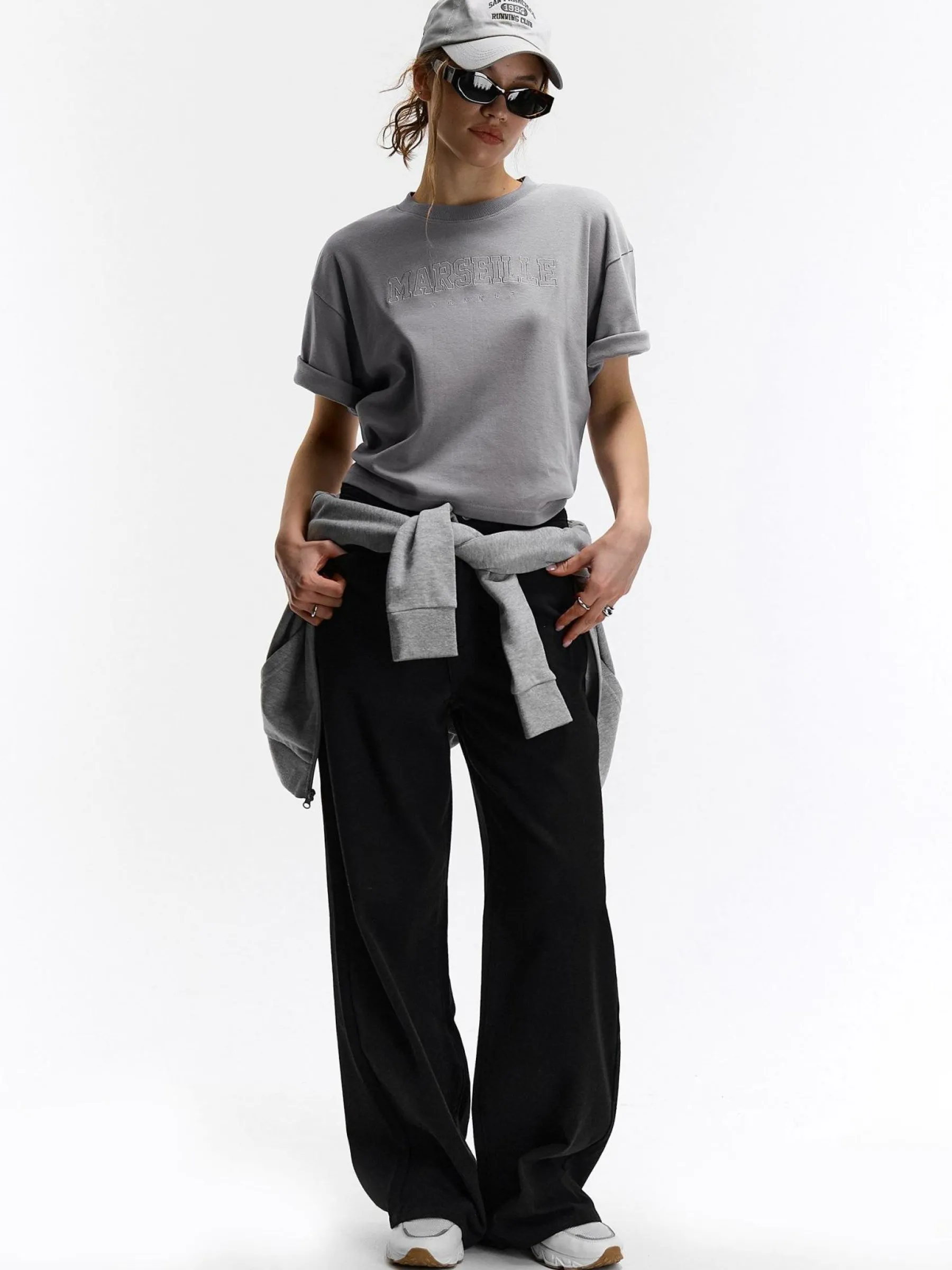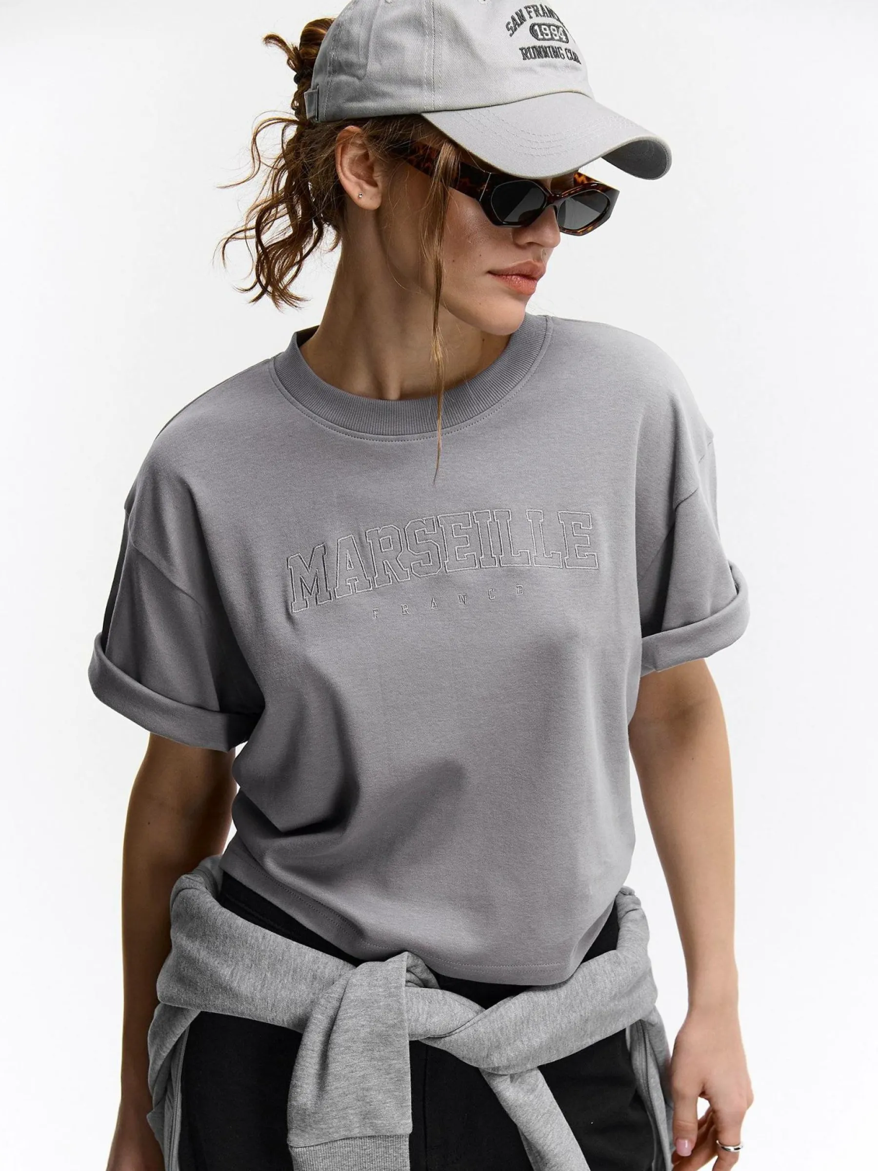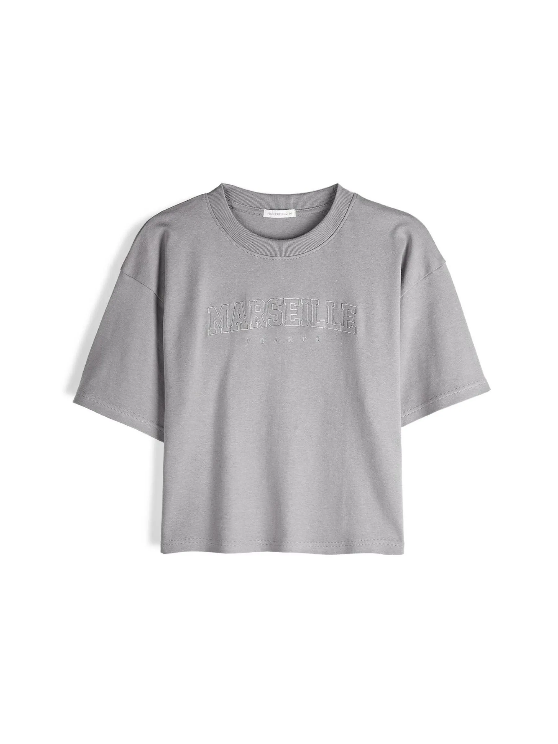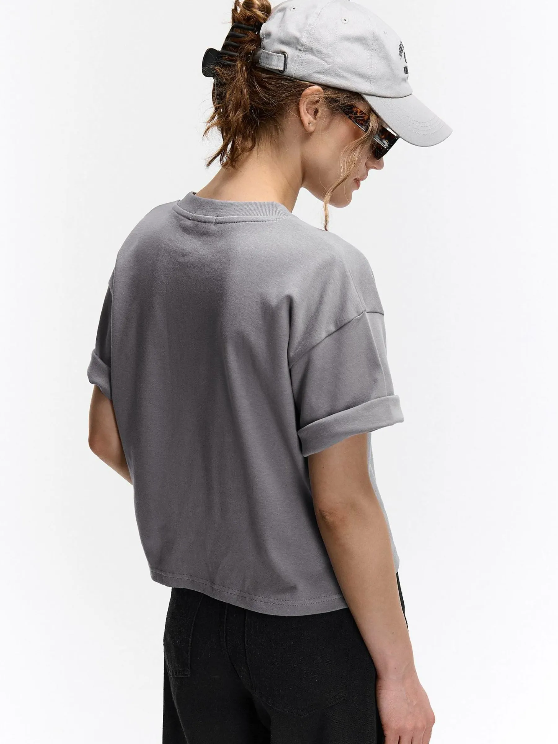 Kolor: szaryKrój: oversizedTyp: koszulkaRekaw: krótki rękawDługość: krótki topPattern style: pojedynczy kolor, z …