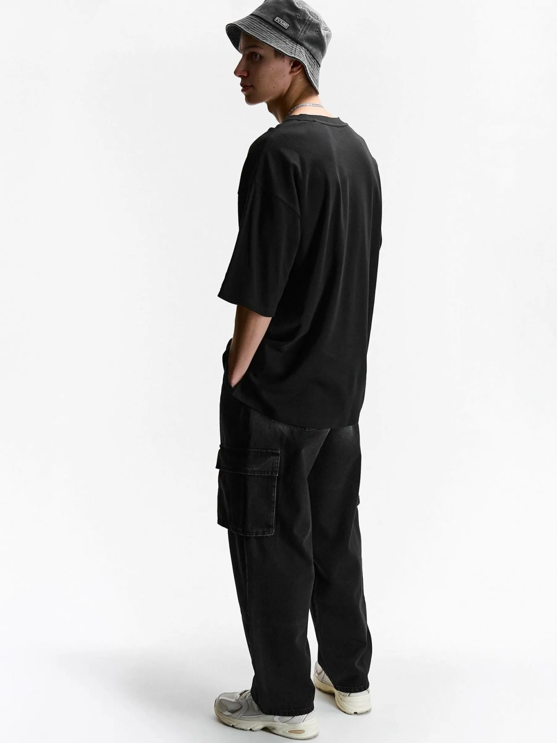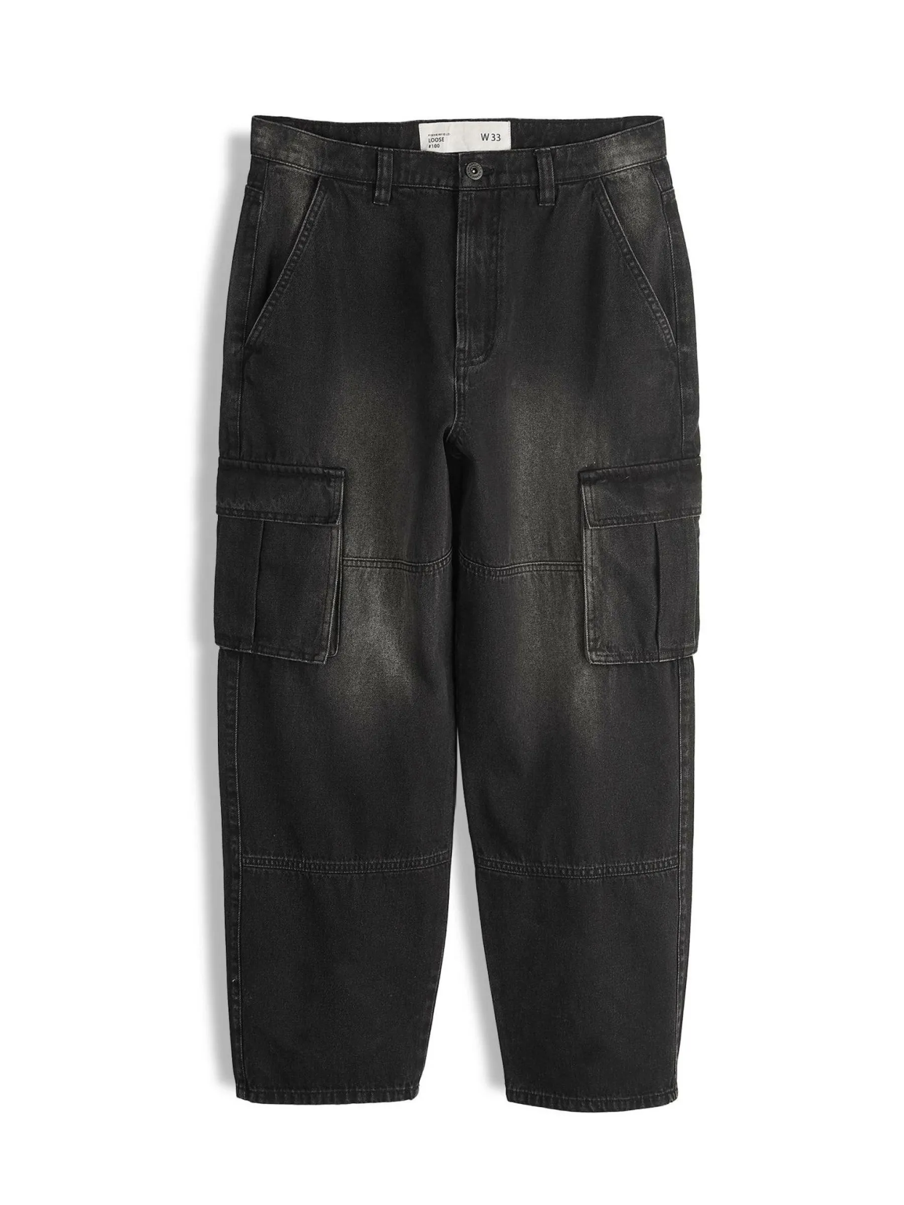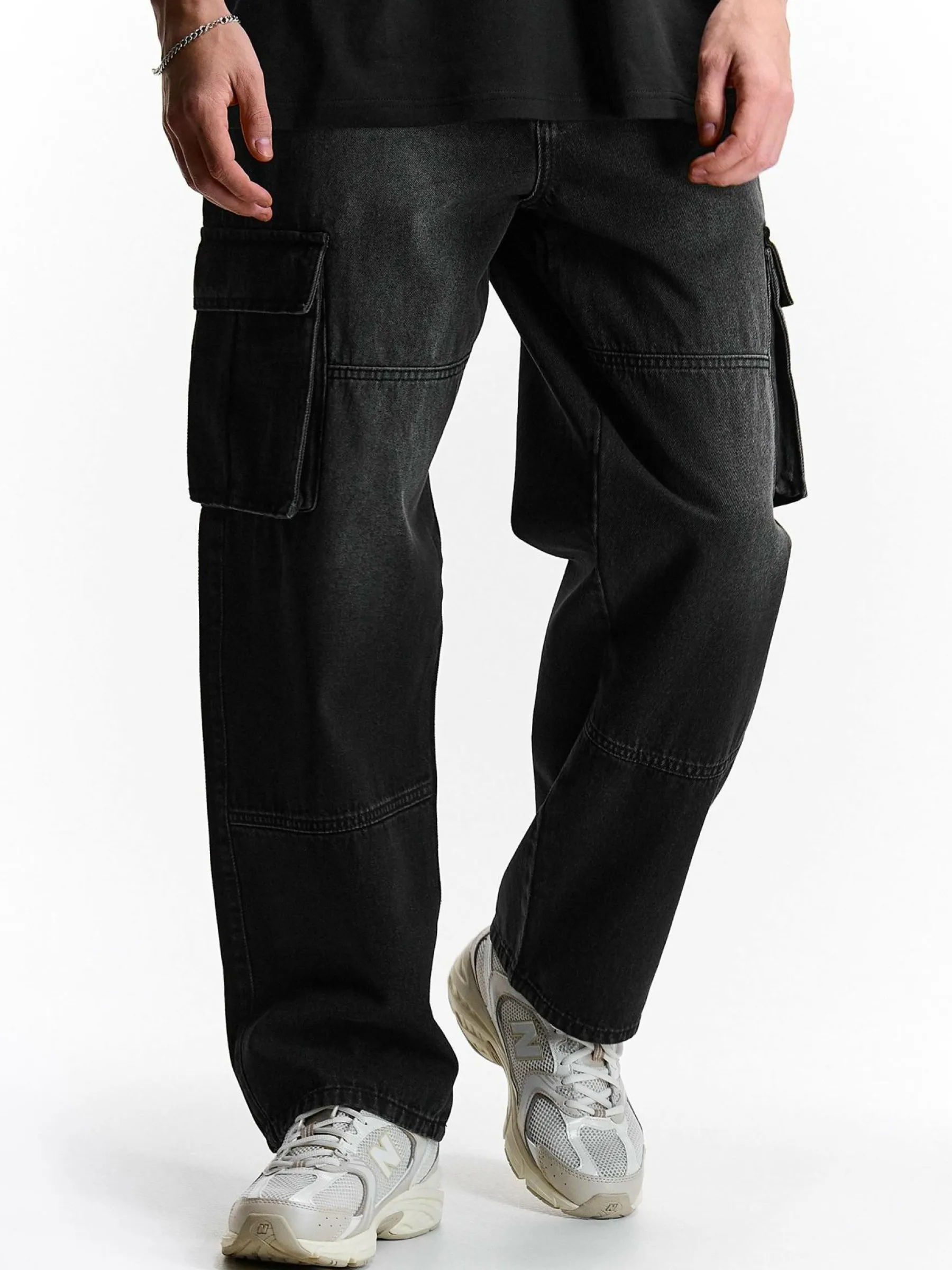 Kolor: czarnyKrój: cargoTyp: jeansDługość: dlugiePattern style: pojedynczy kolorDetal: na zamek, z kieszeniamiMateri…