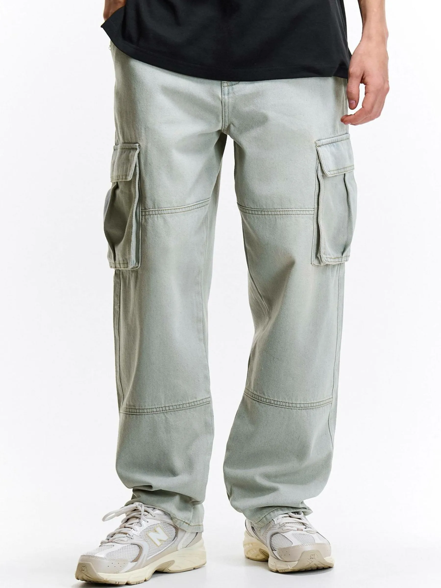 Kolor: niebieskiKrój: cargoTyp: jeansDługość: dlugiePattern style: pojedynczy kolorDetal: na zamek, z kieszeniamiMat…