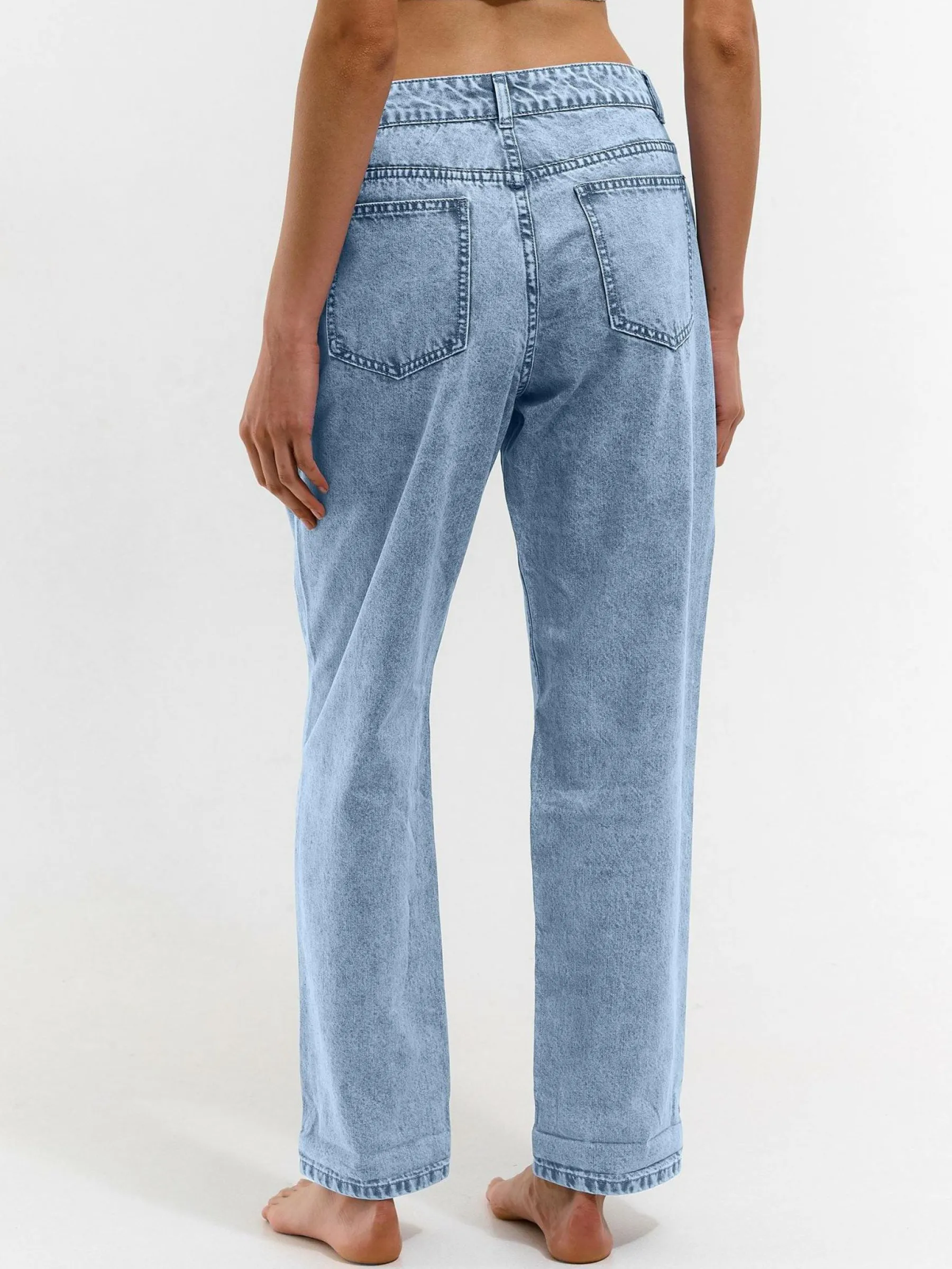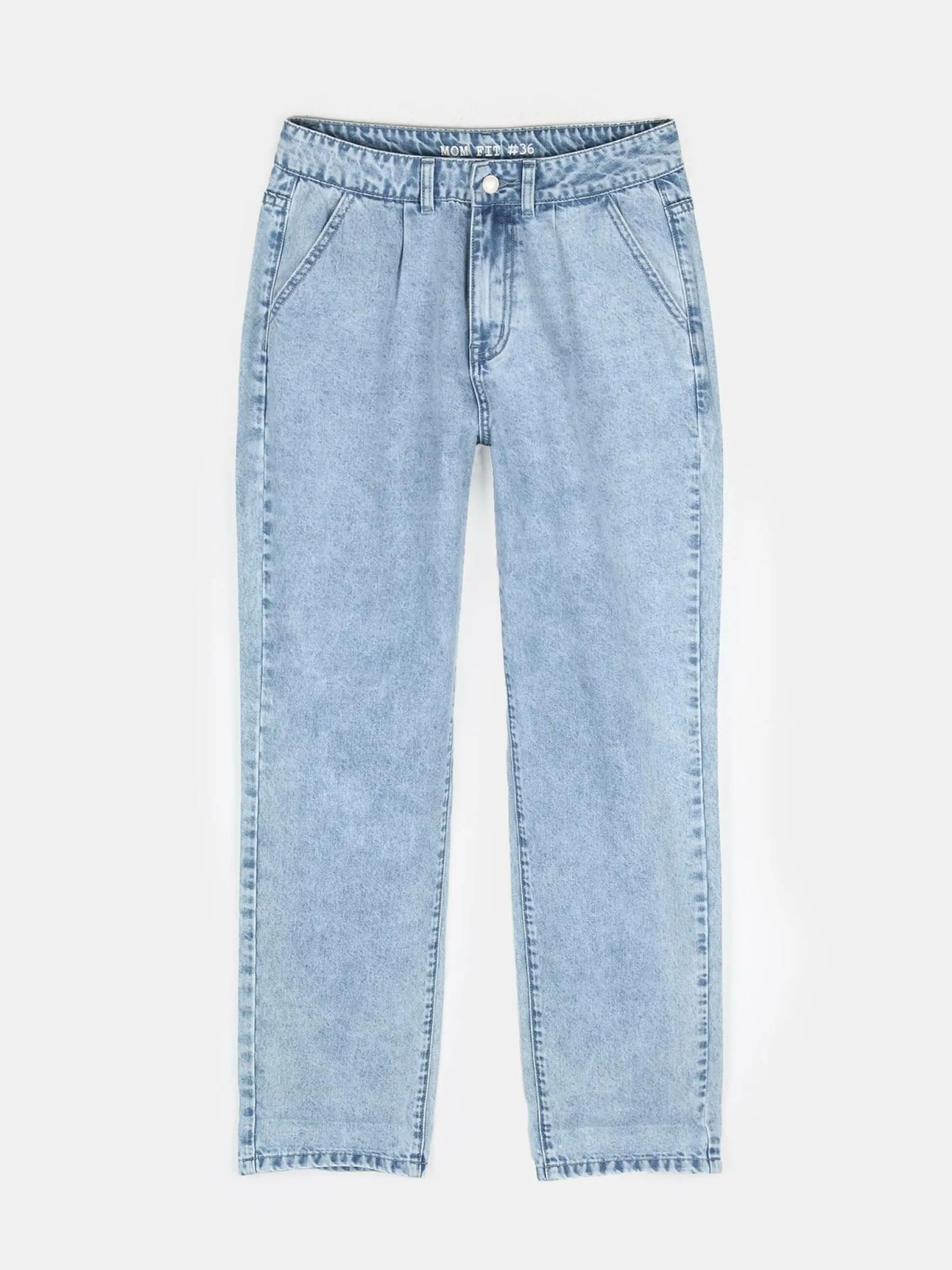 Kolor: niebieskiKrój: mamaTyp: jeansDługość: dlugiePattern style: pojedynczy kolorDetal: na zamekMateriał: dżinsow…