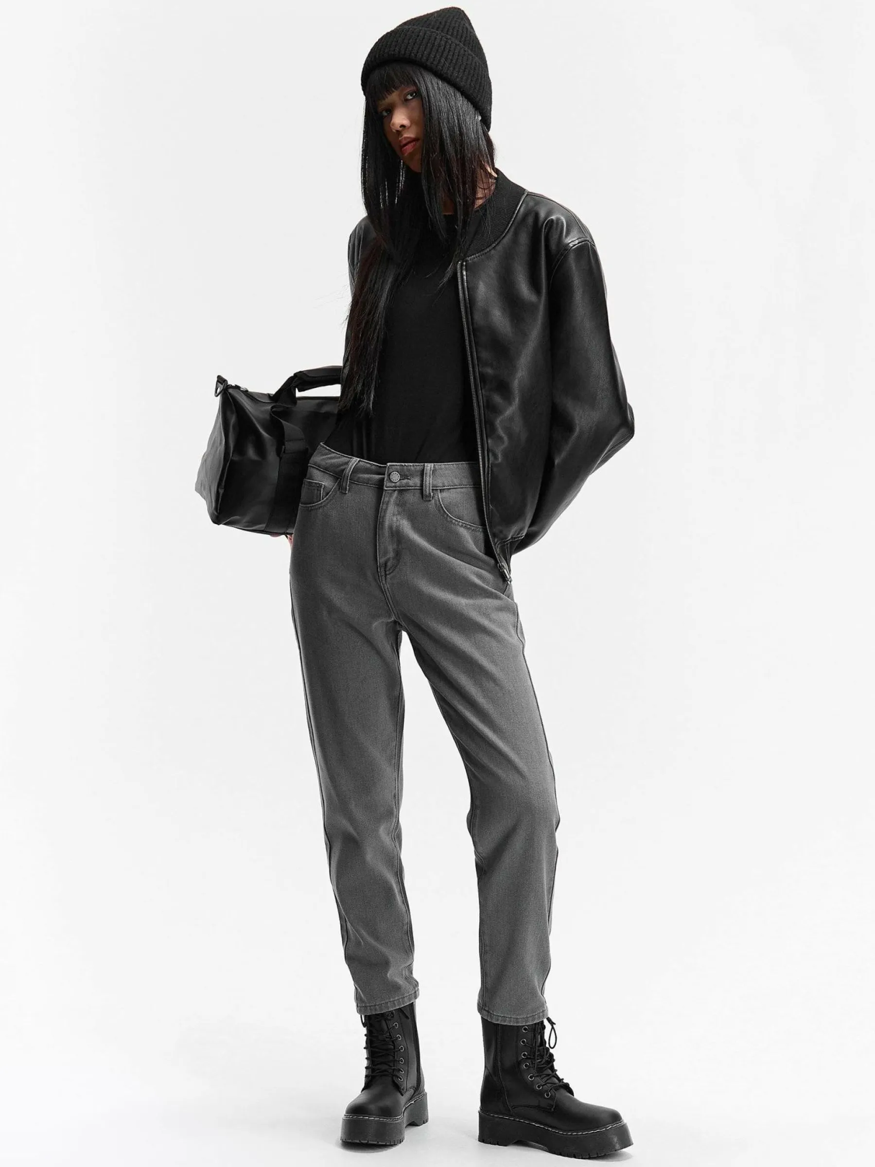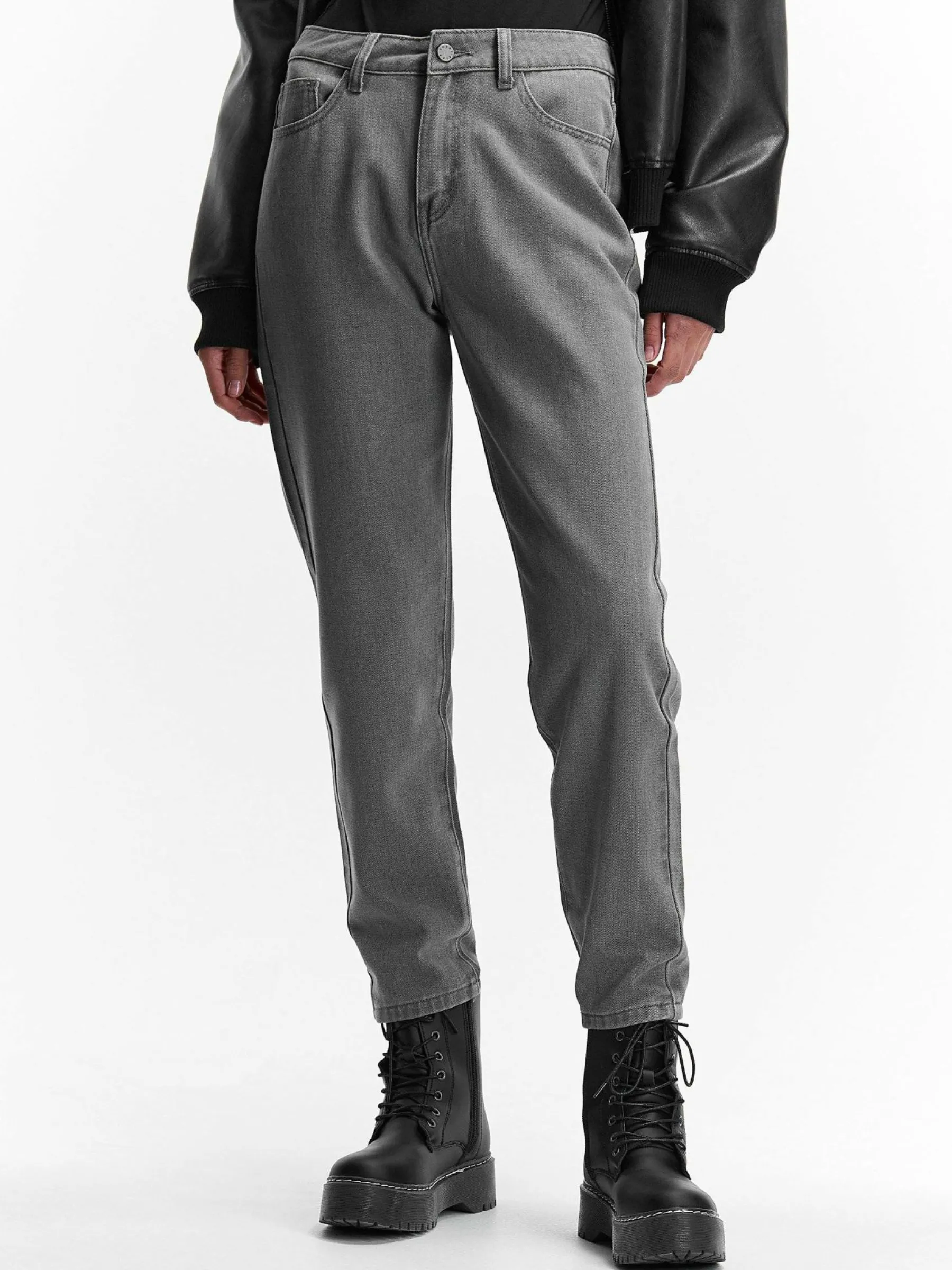 Kolor: szaryKrój: mamaTyp: jeansDługość: dlugiePattern style: pojedynczy kolorDetal: na zamekMateriał: dżinsowePł…