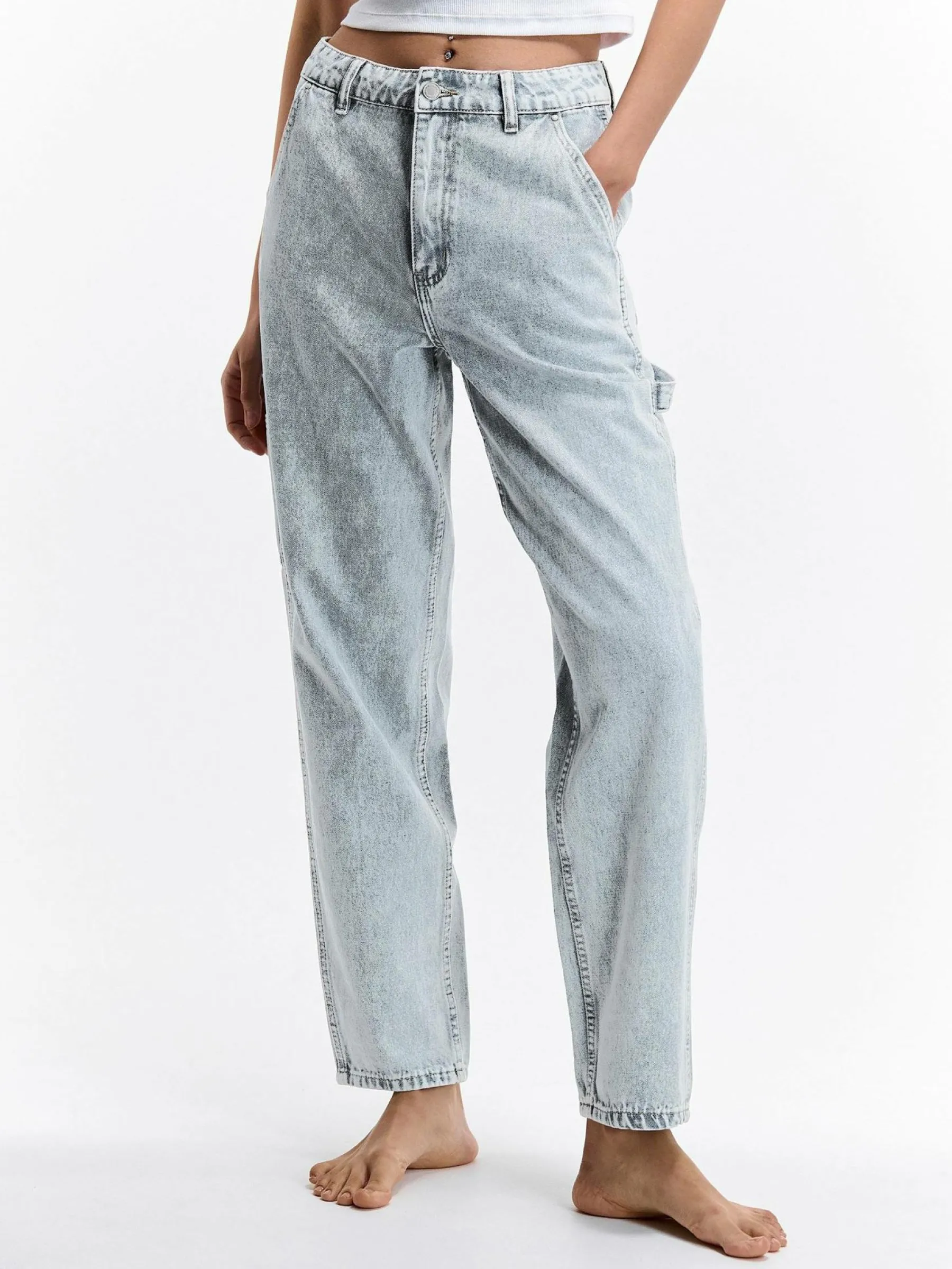 Kolor: niebieskiKrój: z wysokim stanem, mamaTyp: jeansDługość: dlugiePattern style: pojedynczy kolorDetal: na zamek,…