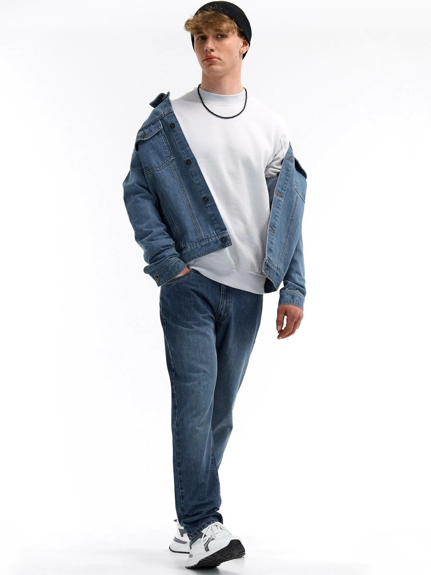 Zdjęcia z modelem mogą nie odpowiadać rzeczywistemu kolorowi produktu.Kolor: niebieskiKrój: straightTyp: jeansDługo…
