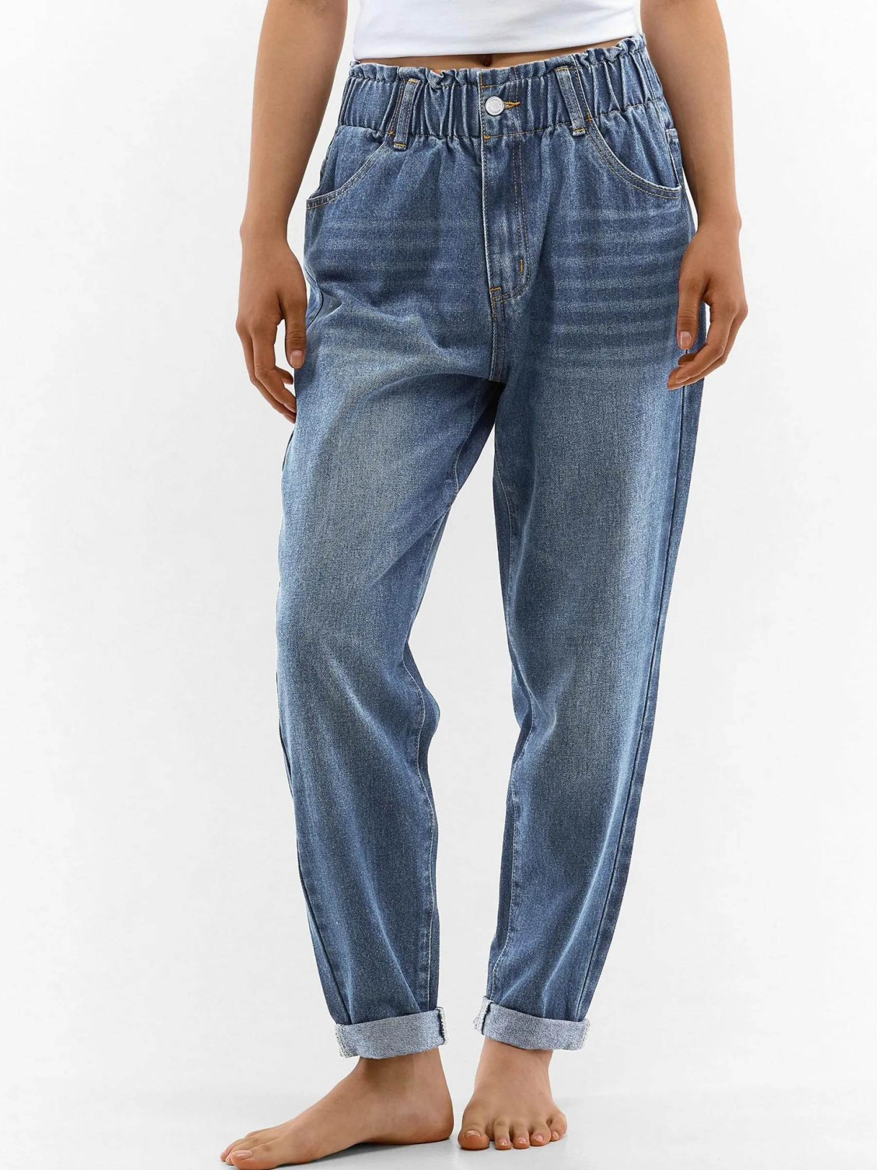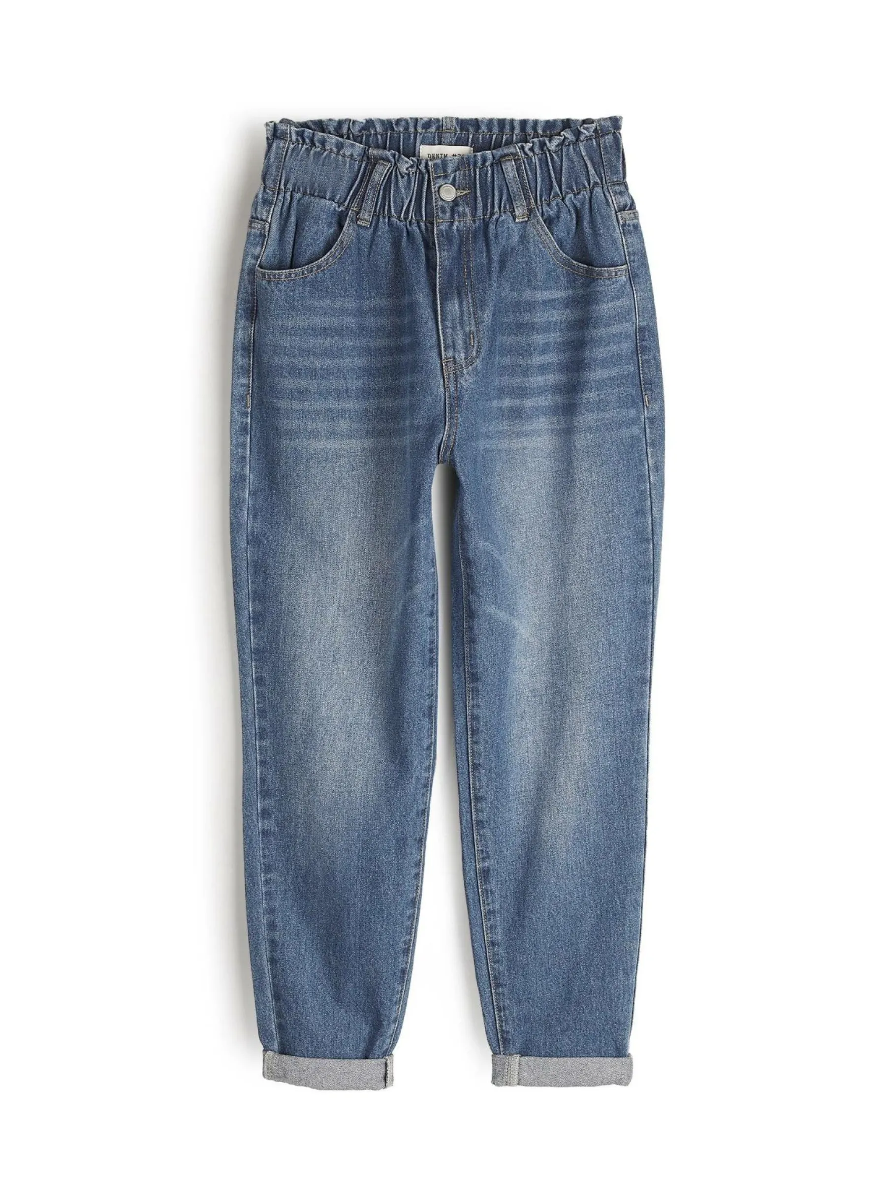 Kolor: niebieskiKrój: paperbagTyp: jeansDługość: dlugiePattern style: pojedynczy kolorDetal: na zamek, z kieszeniami…