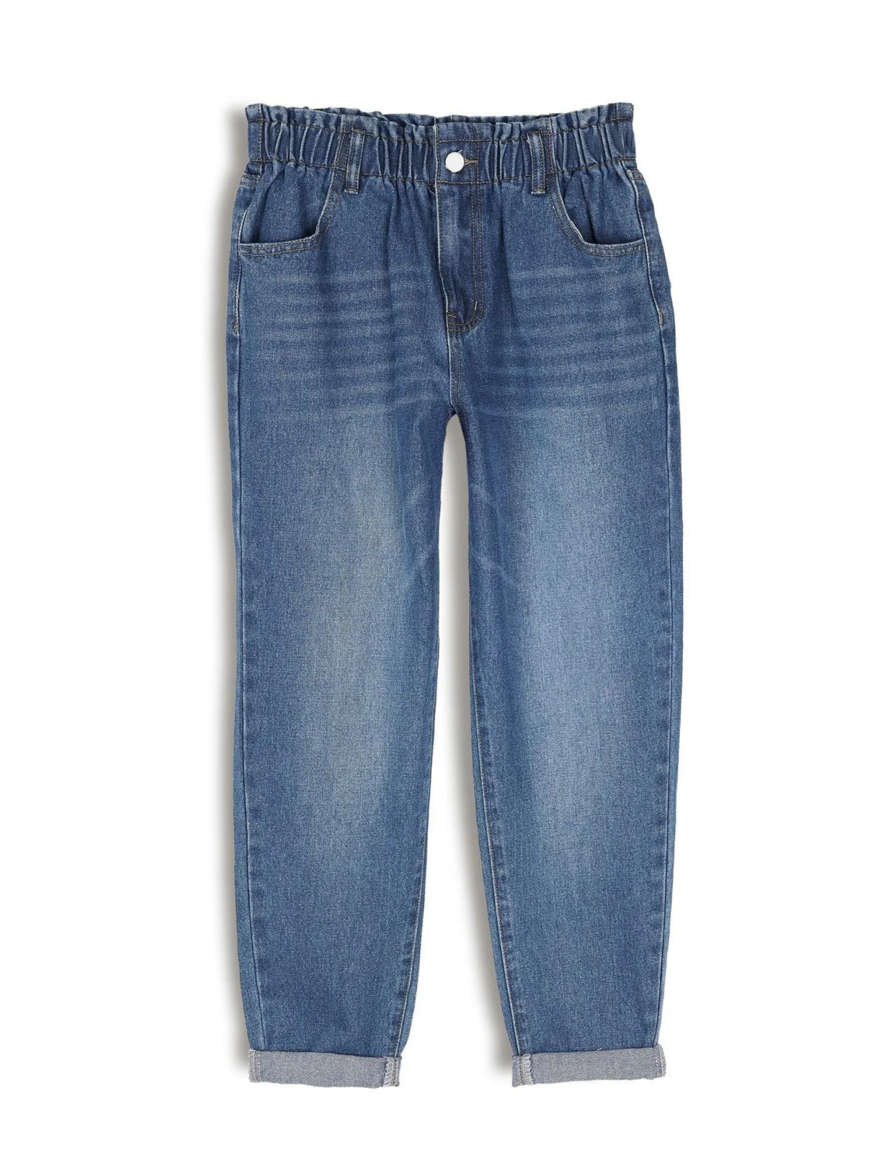 Kolor: niebieskiKrój: paperbagTyp: jeansDługość: dlugiePattern style: pojedynczy kolorDetal: na zamek, z kieszeniami…
