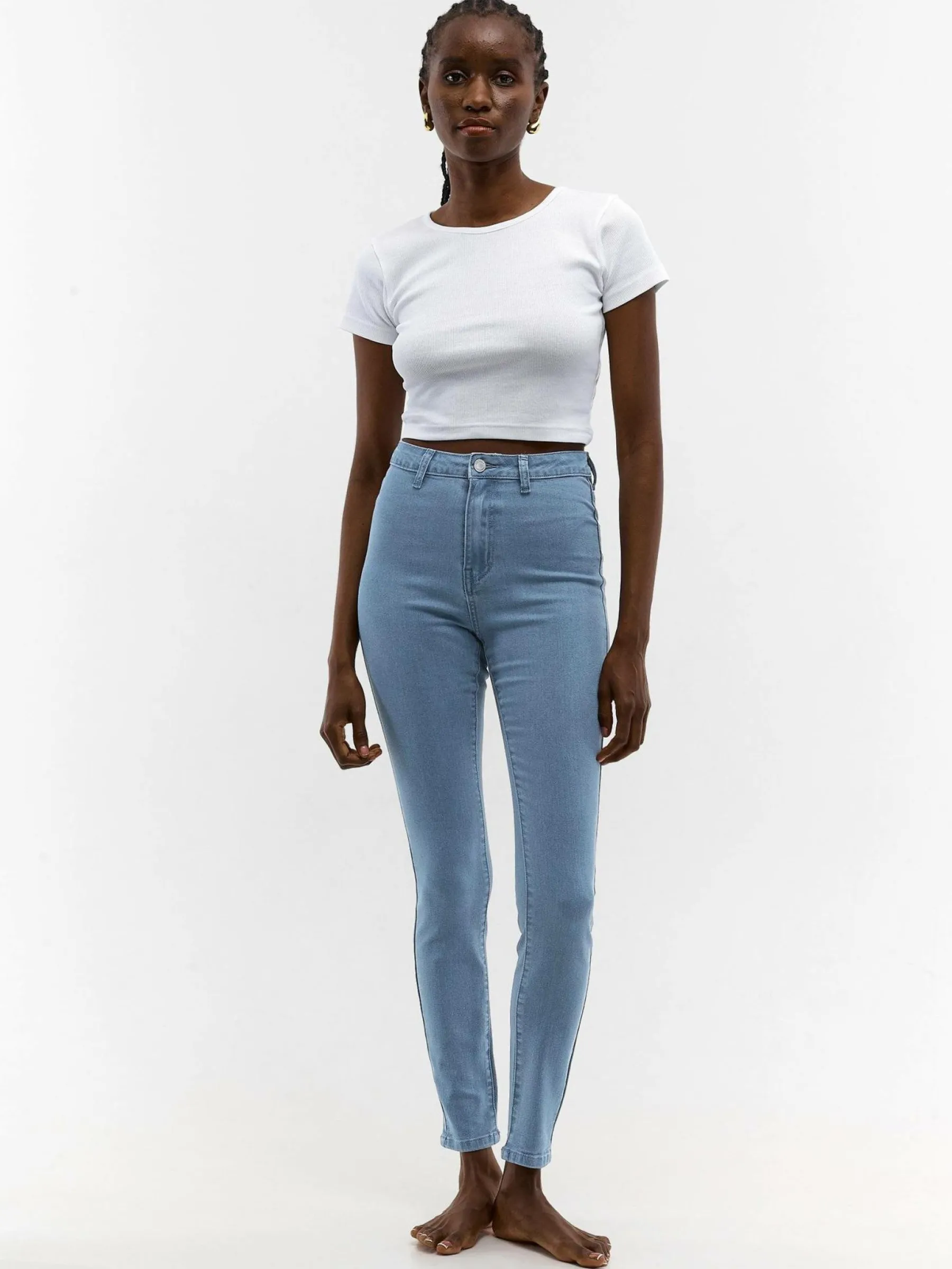 Kolor: niebieskiKrój: skinnyTyp: jeansDługość: dlugiePattern style: pojedynczy kolorDetal: na zamekMateriał: dżins…
