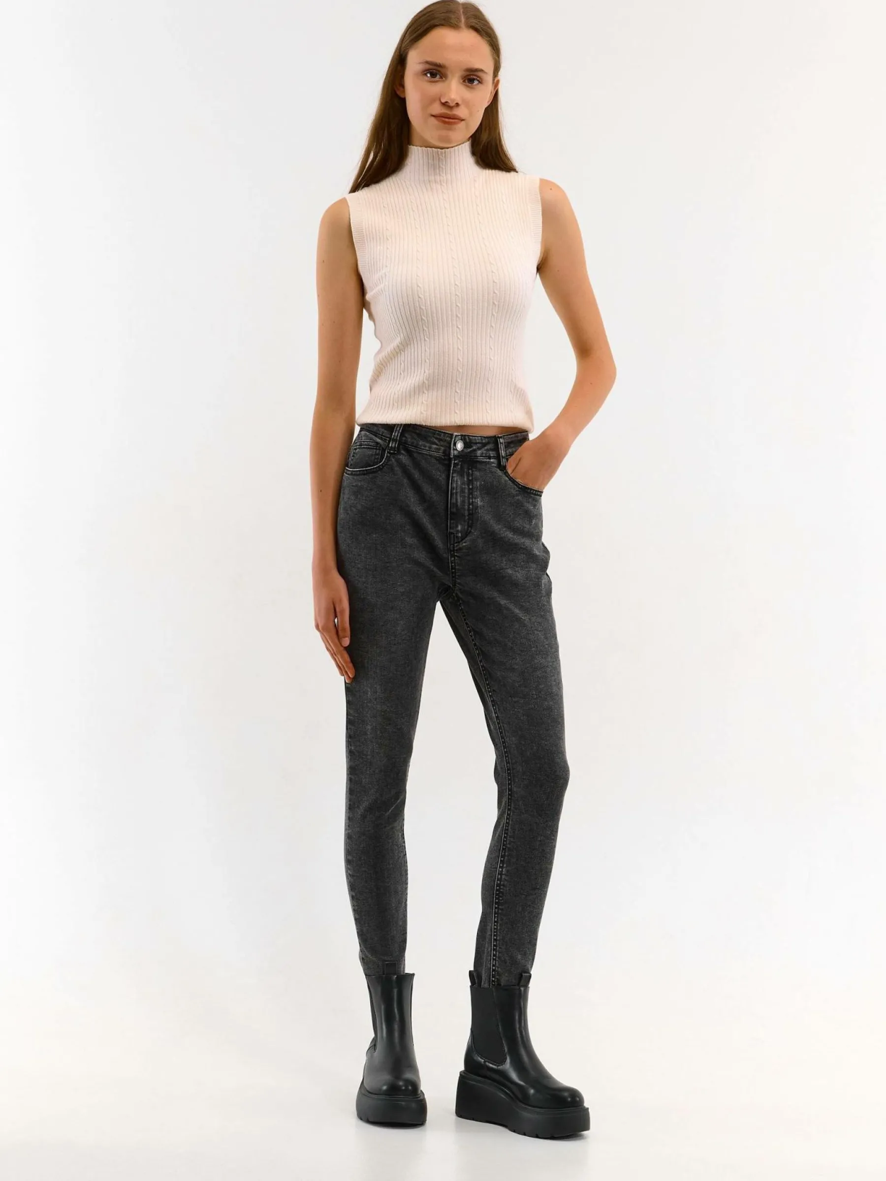 Kolor: czarnyKrój: skinnyTyp: jeansDługość: dlugiePattern style: pojedynczy kolorDetal: na zamekMateriał: dżinsowe…