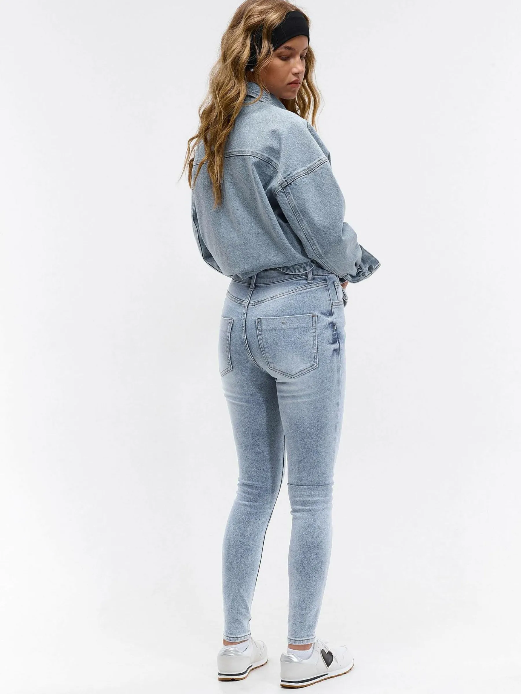 Kolor: niebieskiKrój: skinnyTyp: jeansDługość: dlugiePattern style: pojedynczy kolorDetal: na zamek, z kieszeniamiMa…