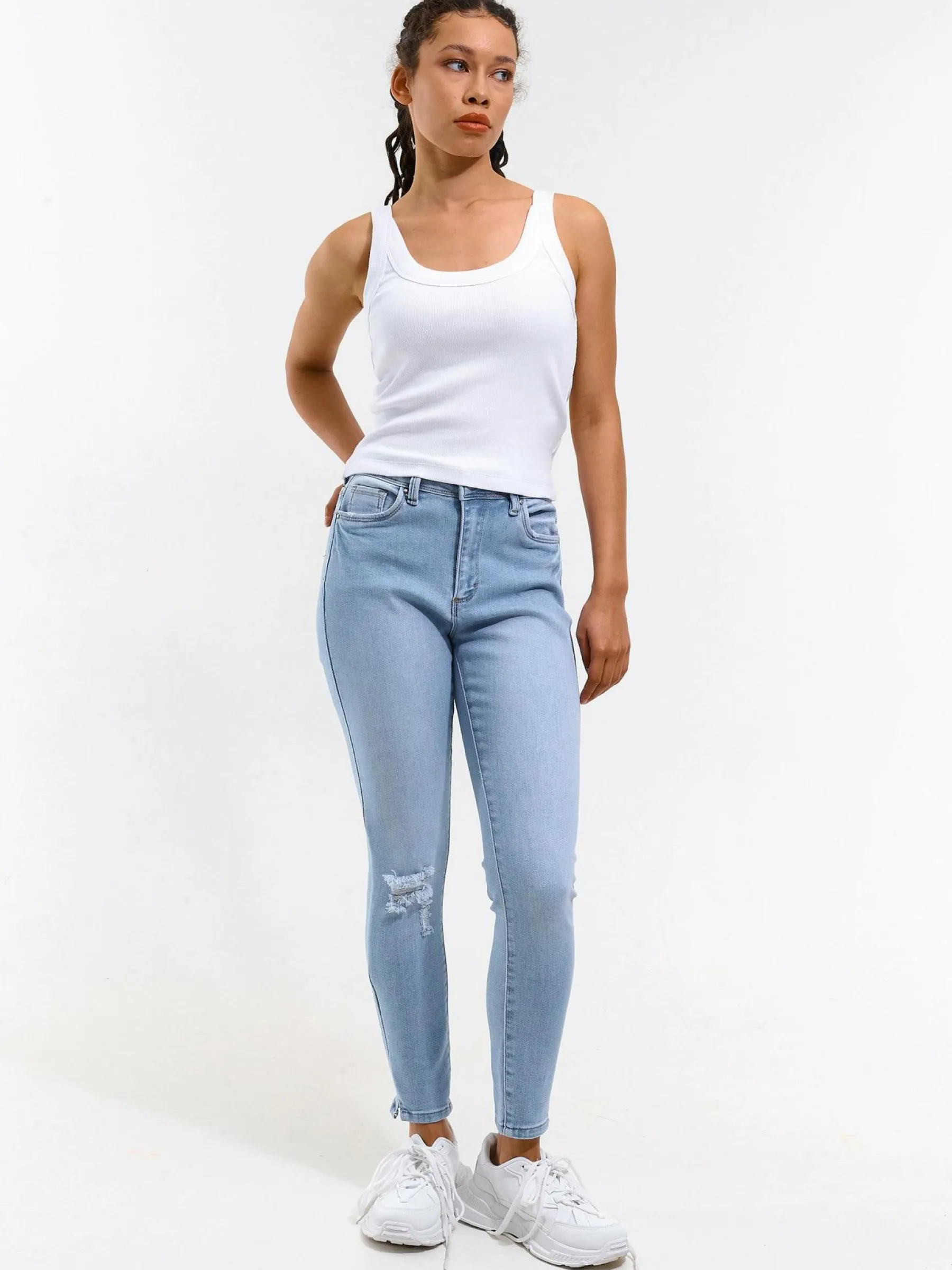 Kolor: niebieskiKrój: skinnyTyp: jeansDługość: dlugiePattern style: pojedynczy kolorDetal: na zamekMateriał: dżins…