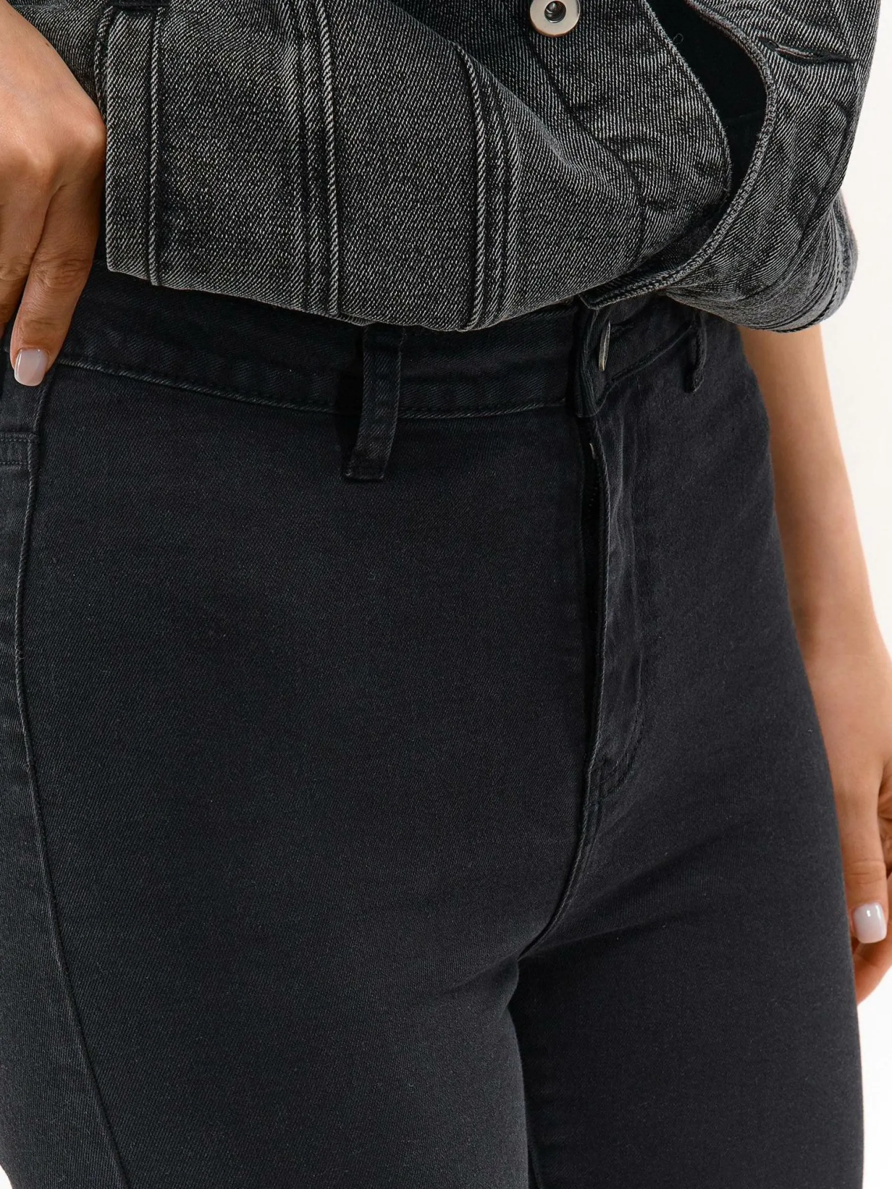 Kolor: czarnyKrój: skinnyTyp: jeansDługość: dlugiePattern style: pojedynczy kolorDetal: na zamek, z kieszeniamiMater…