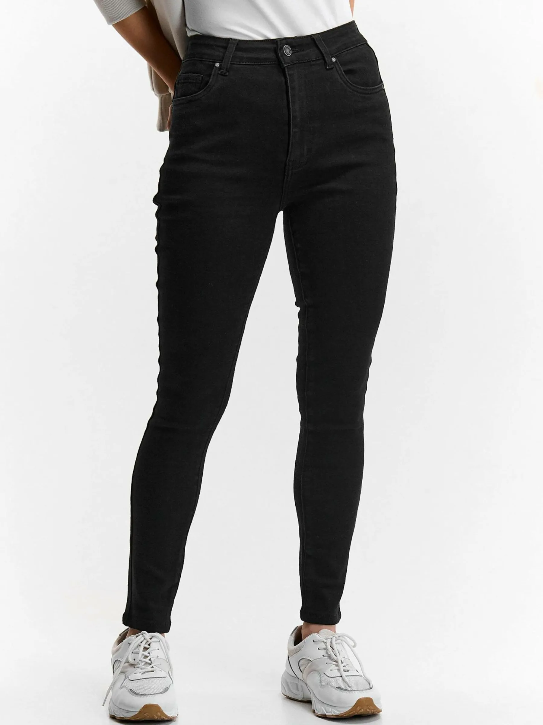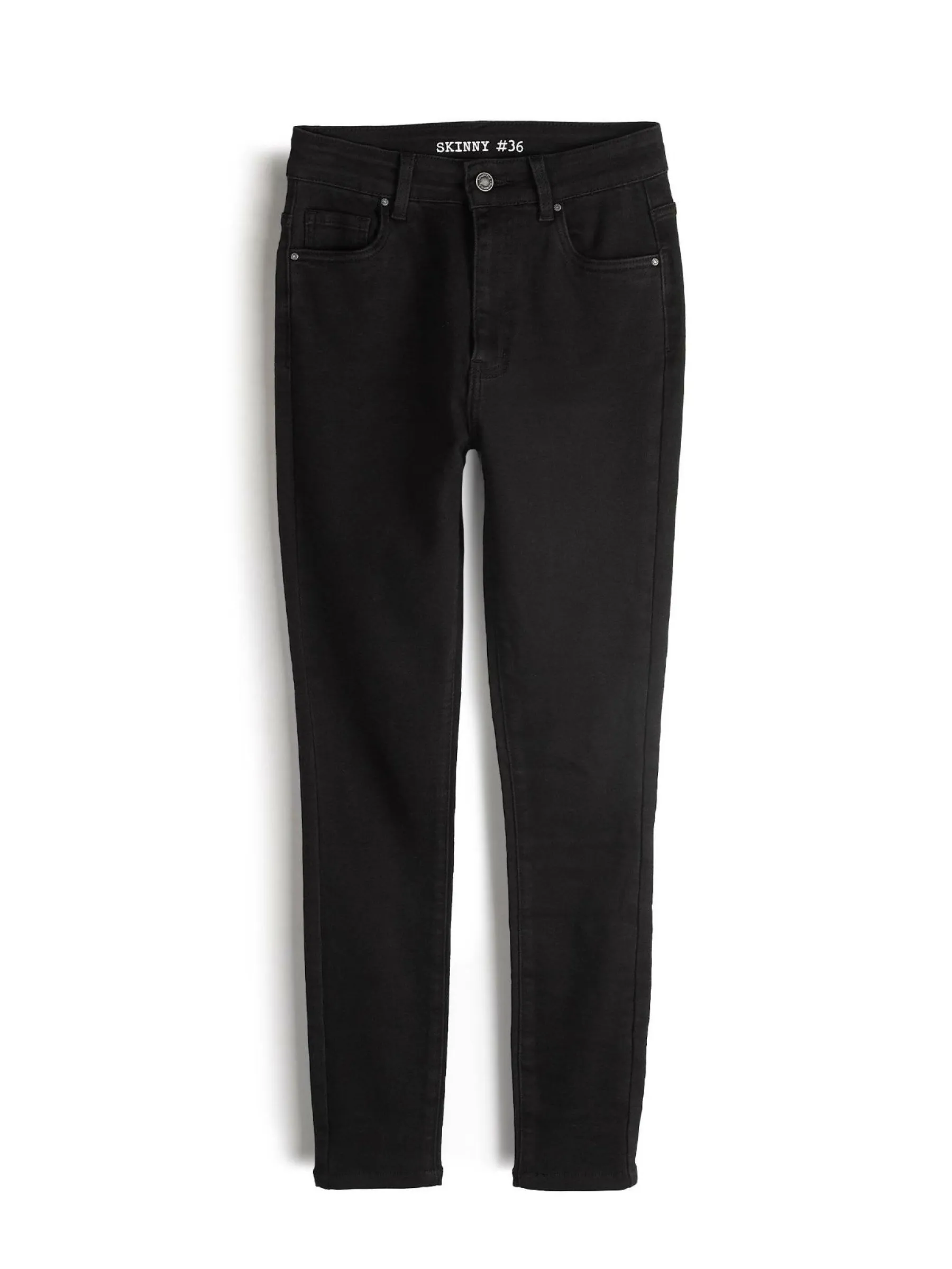 Kolor: czarnyKrój: skinnyTyp: jeansDługość: dlugiePattern style: pojedynczy kolorDetal: na zamekMateriał: dżinsowe…