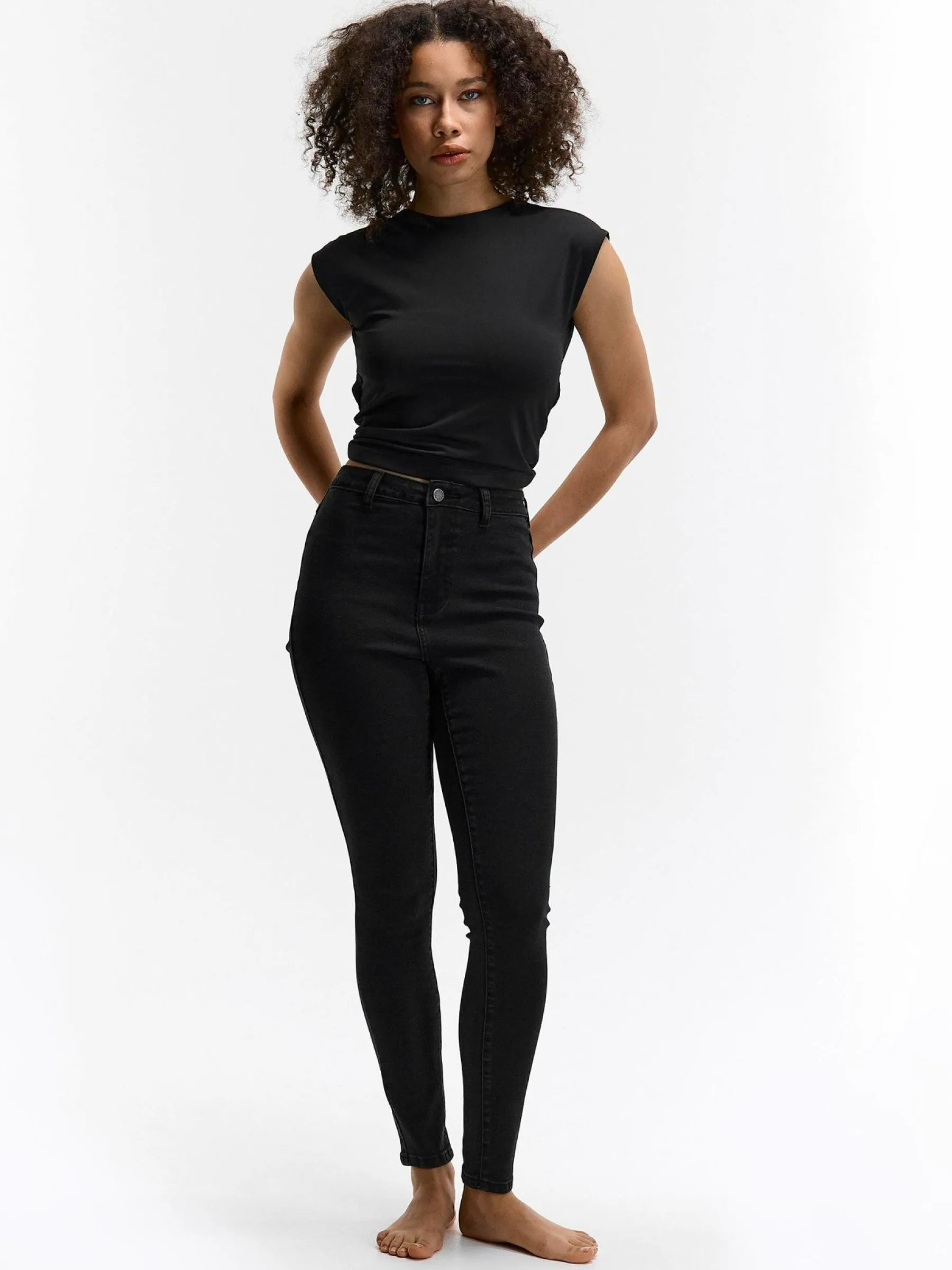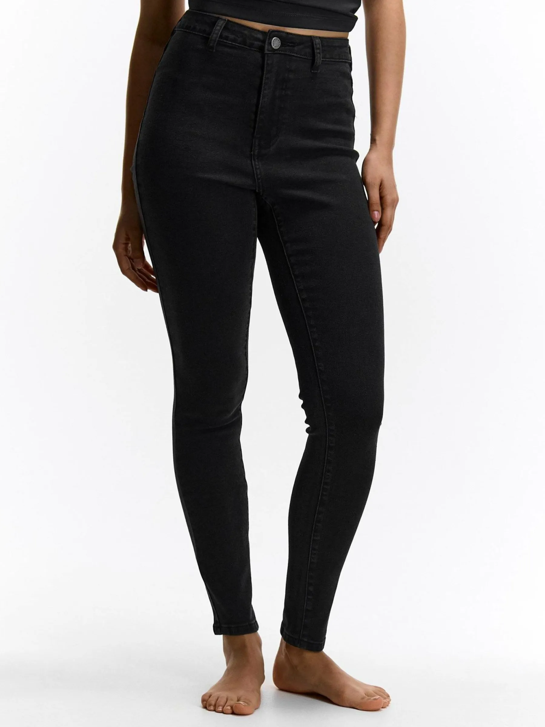 Kolor: czarnyKrój: skinnyTyp: jeansDługość: dlugiePattern style: pojedynczy kolorDetal: na zamekMateriał: dżinsowe…