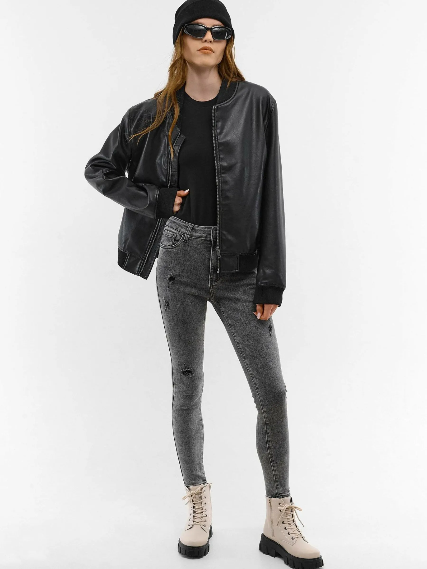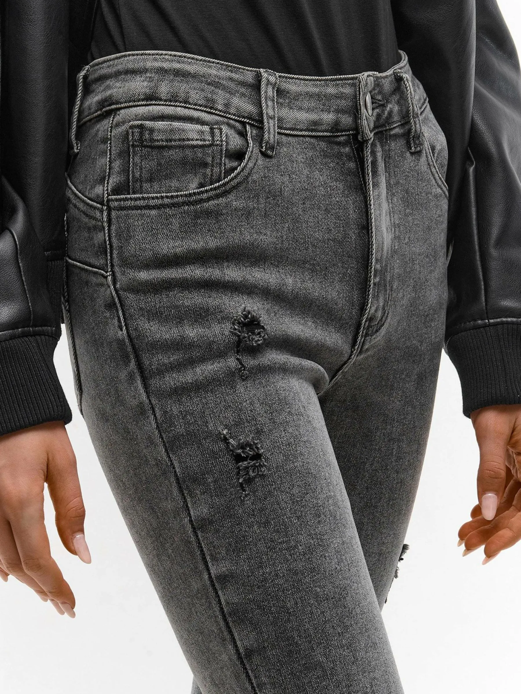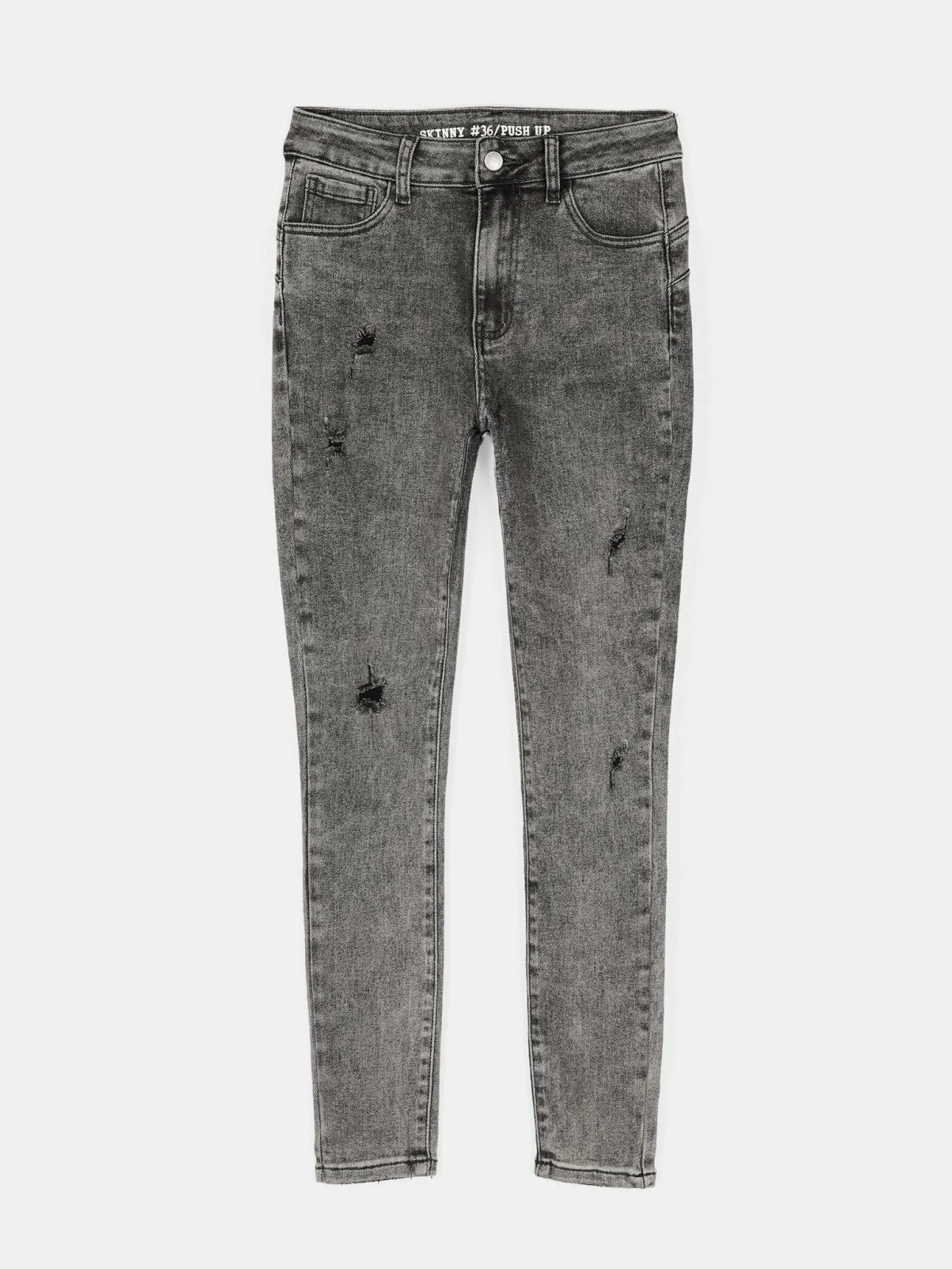 Kolor: szaryKrój: skinnyTyp: jeansDługość: dlugiePattern style: pojedynczy kolorDetal: na zamek, z otworamiMateriał…