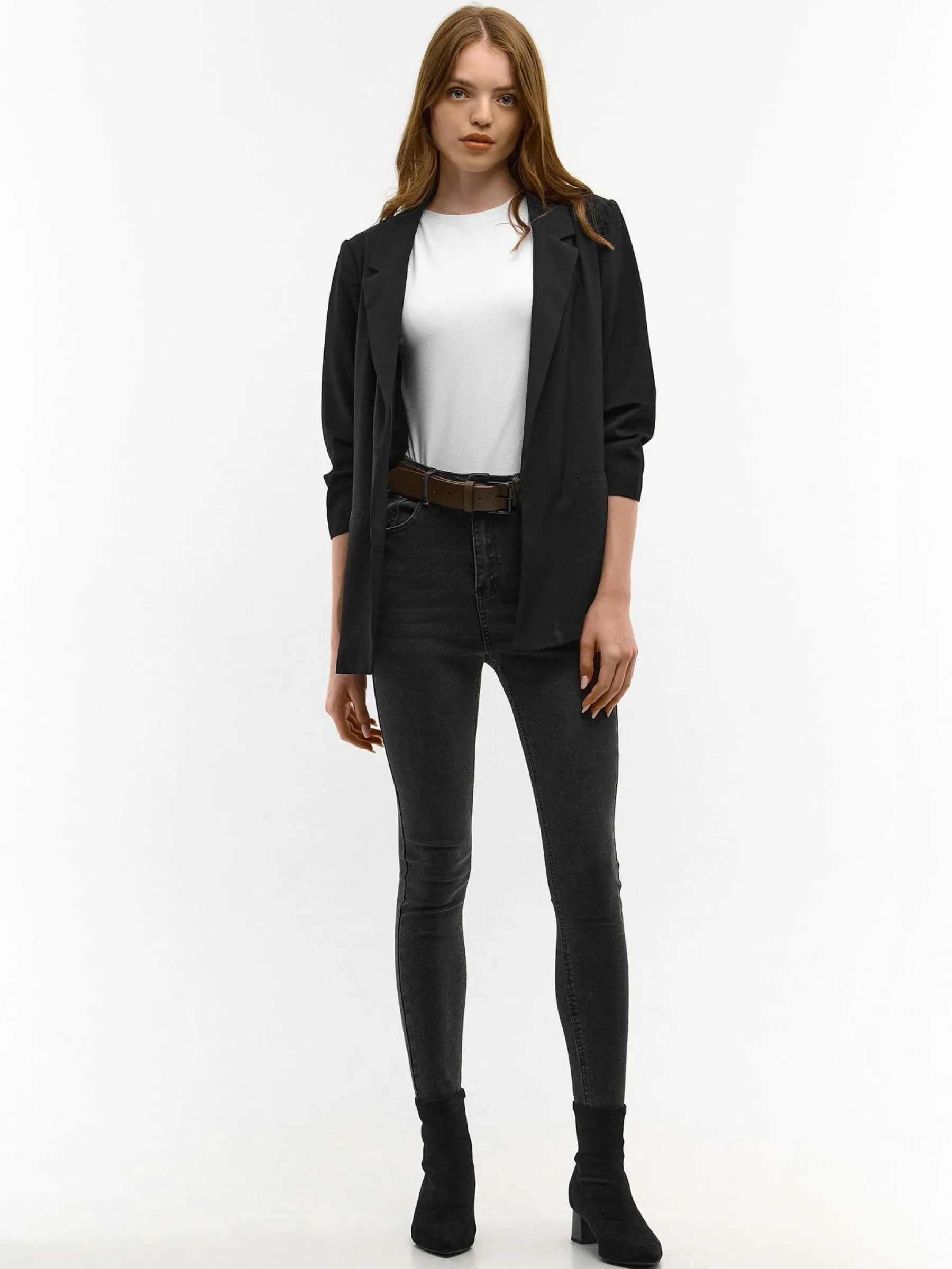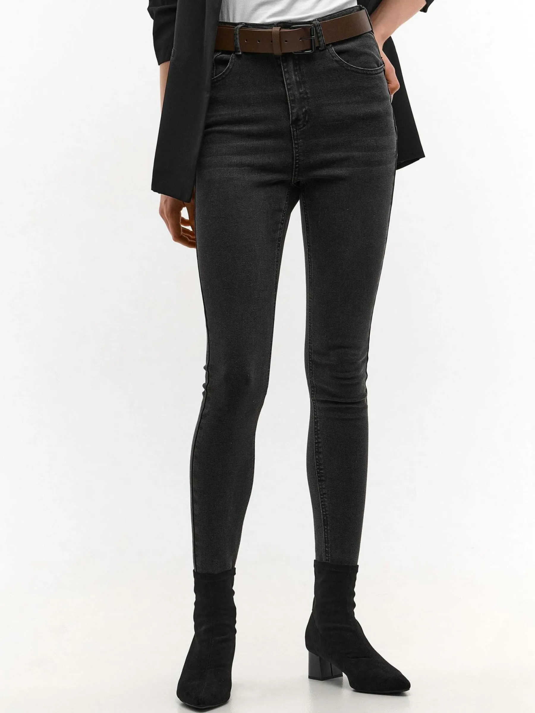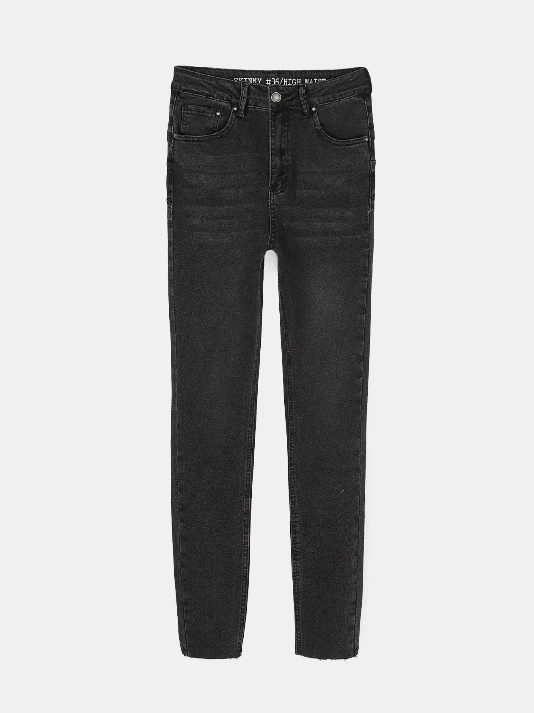 Kolor: czarnyKrój: skinny, z wysokim stanemTyp: jeansDługość: dlugiePattern style: pojedynczy kolorDetal: na zamekMa…