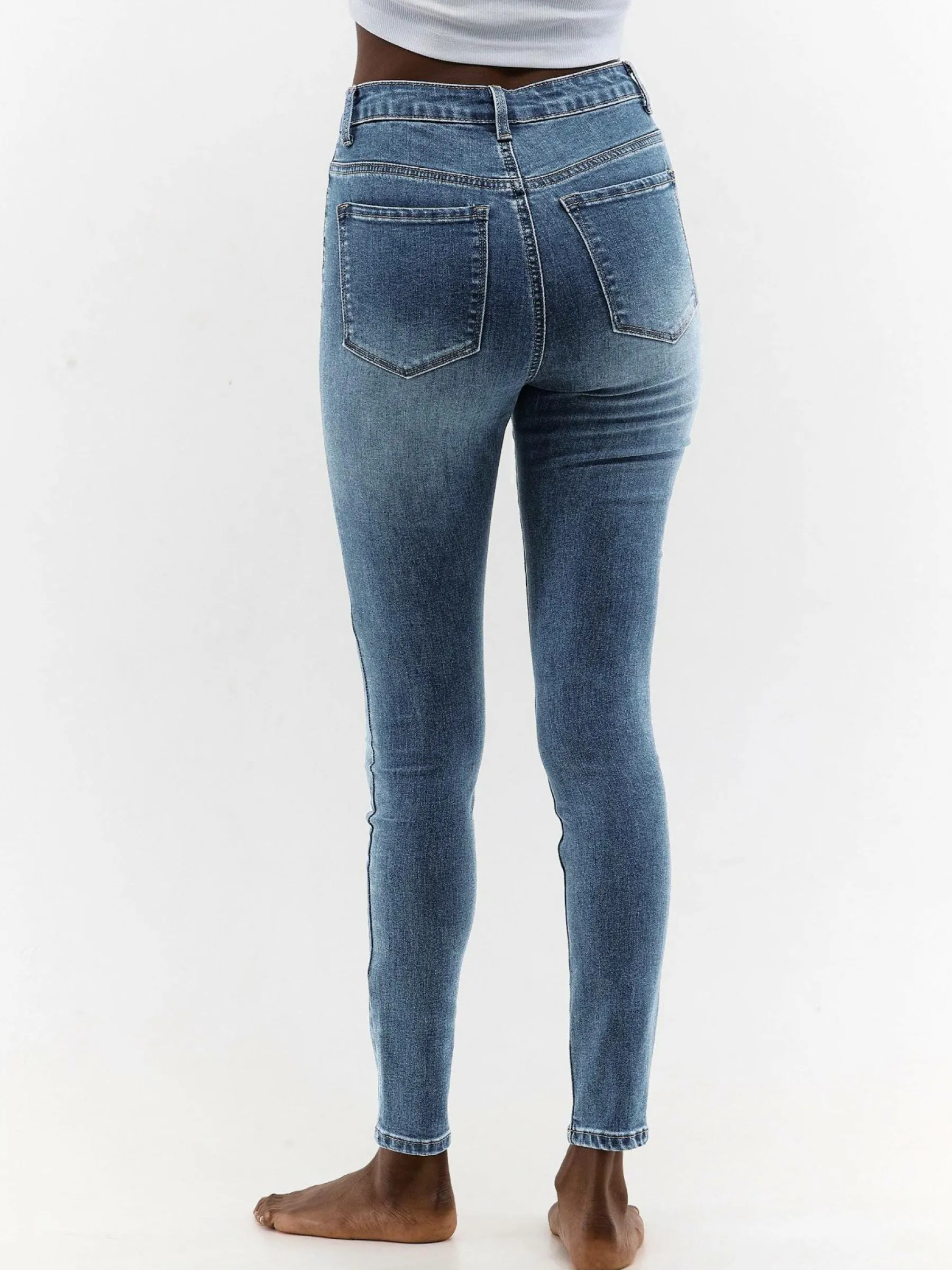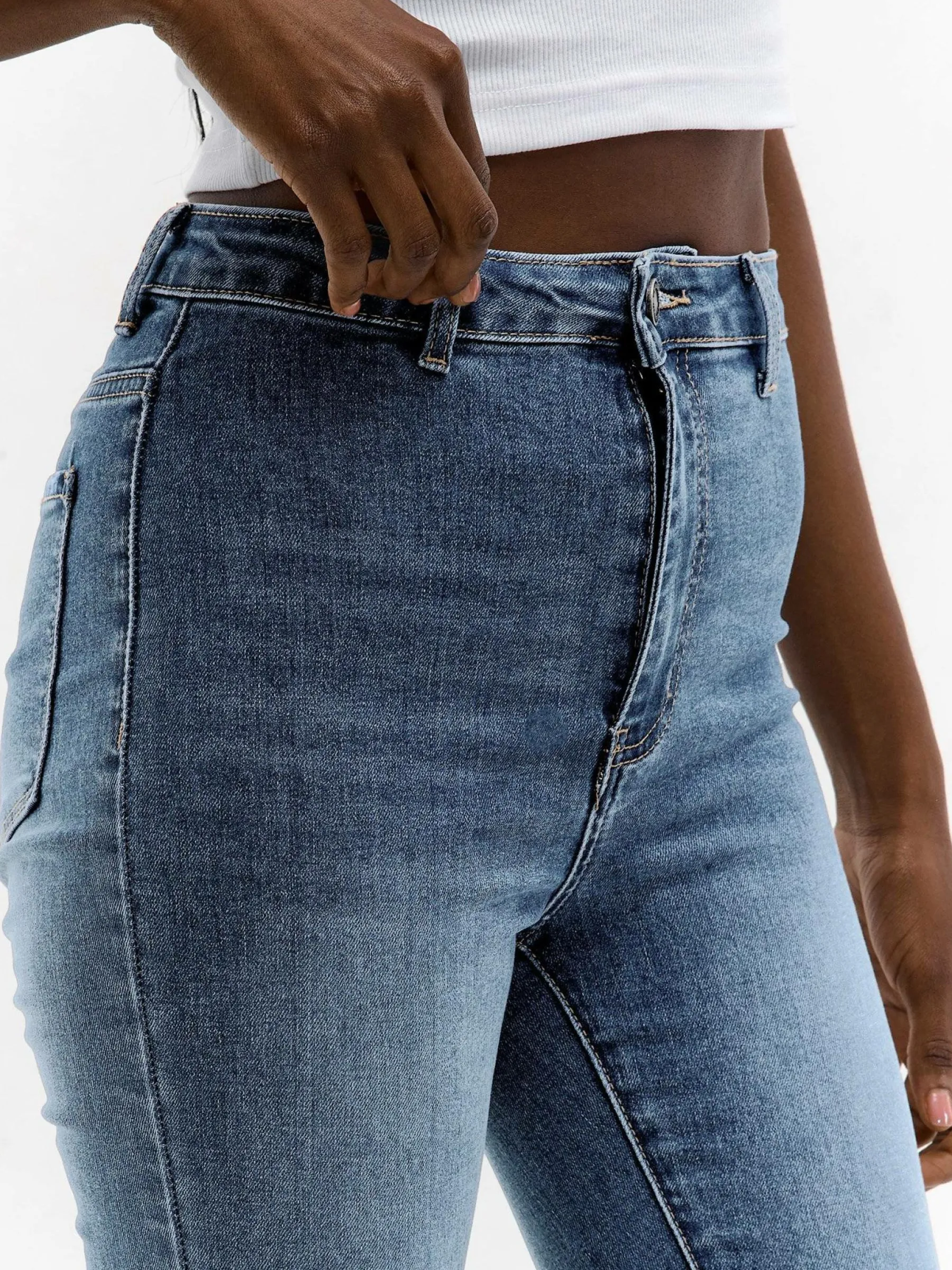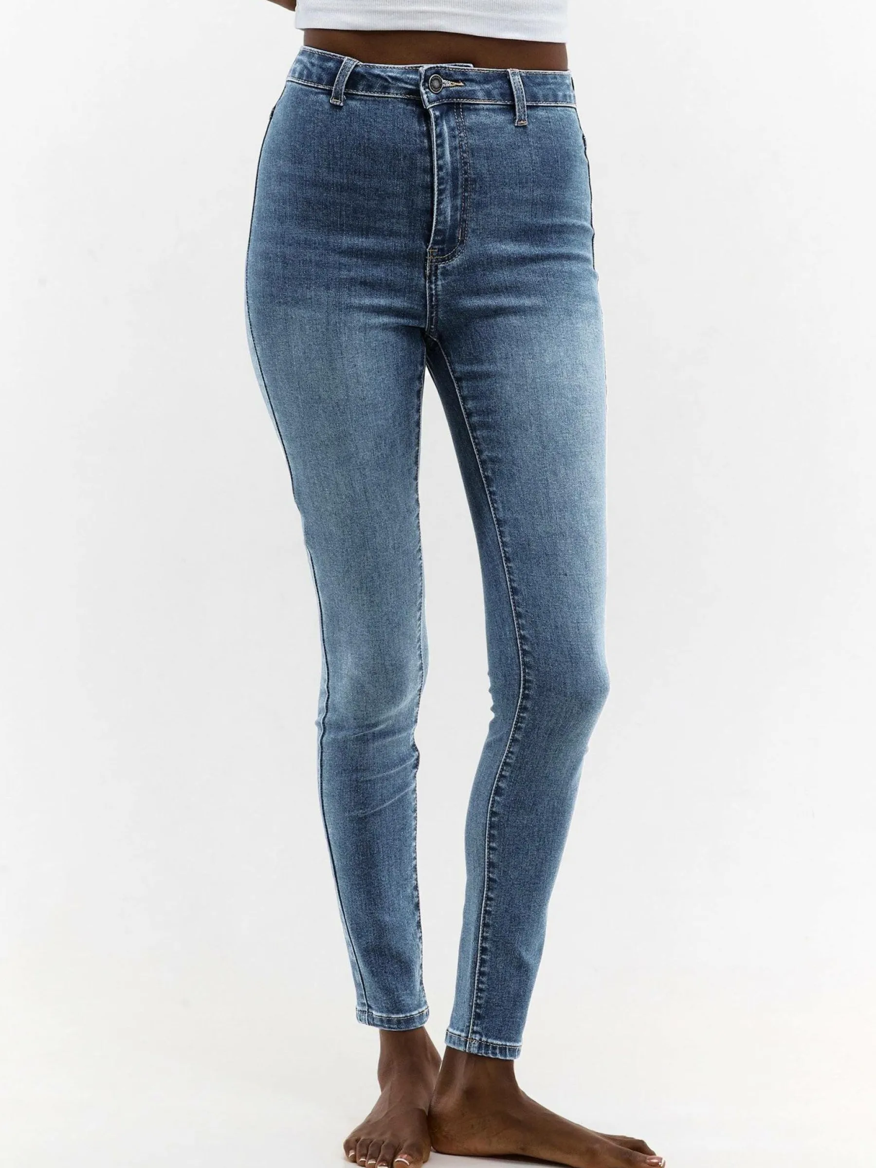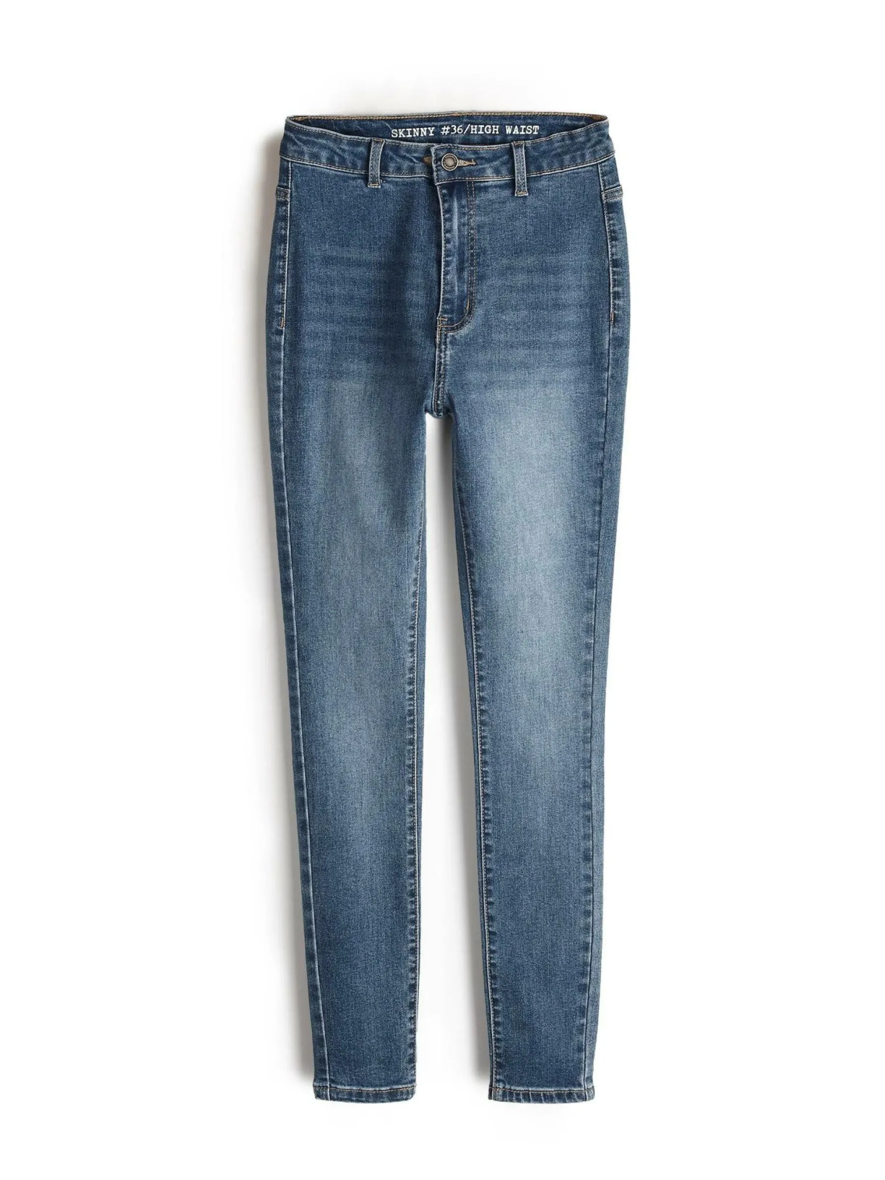 Kolor: niebieskiKrój: skinny, z wysokim stanemTyp: jeansDługość: dlugiePattern style: pojedynczy kolorDetal: na zame…