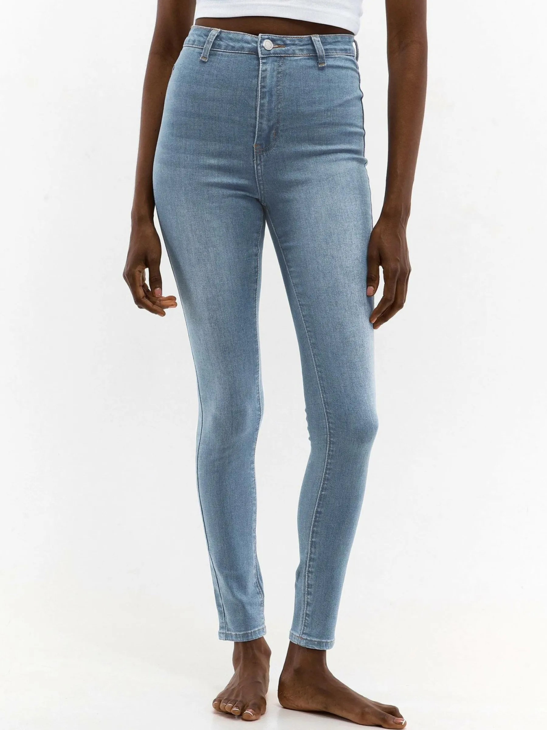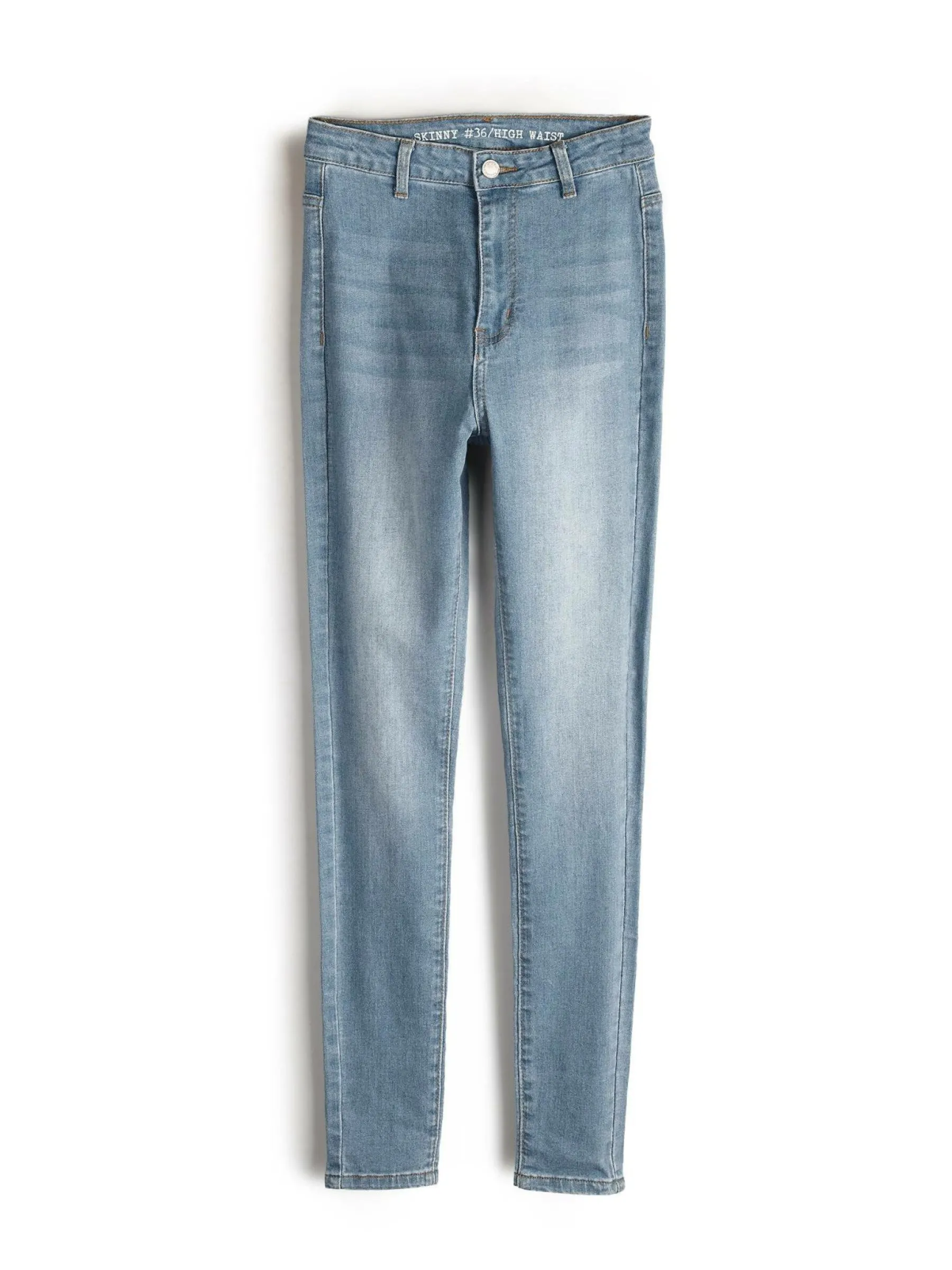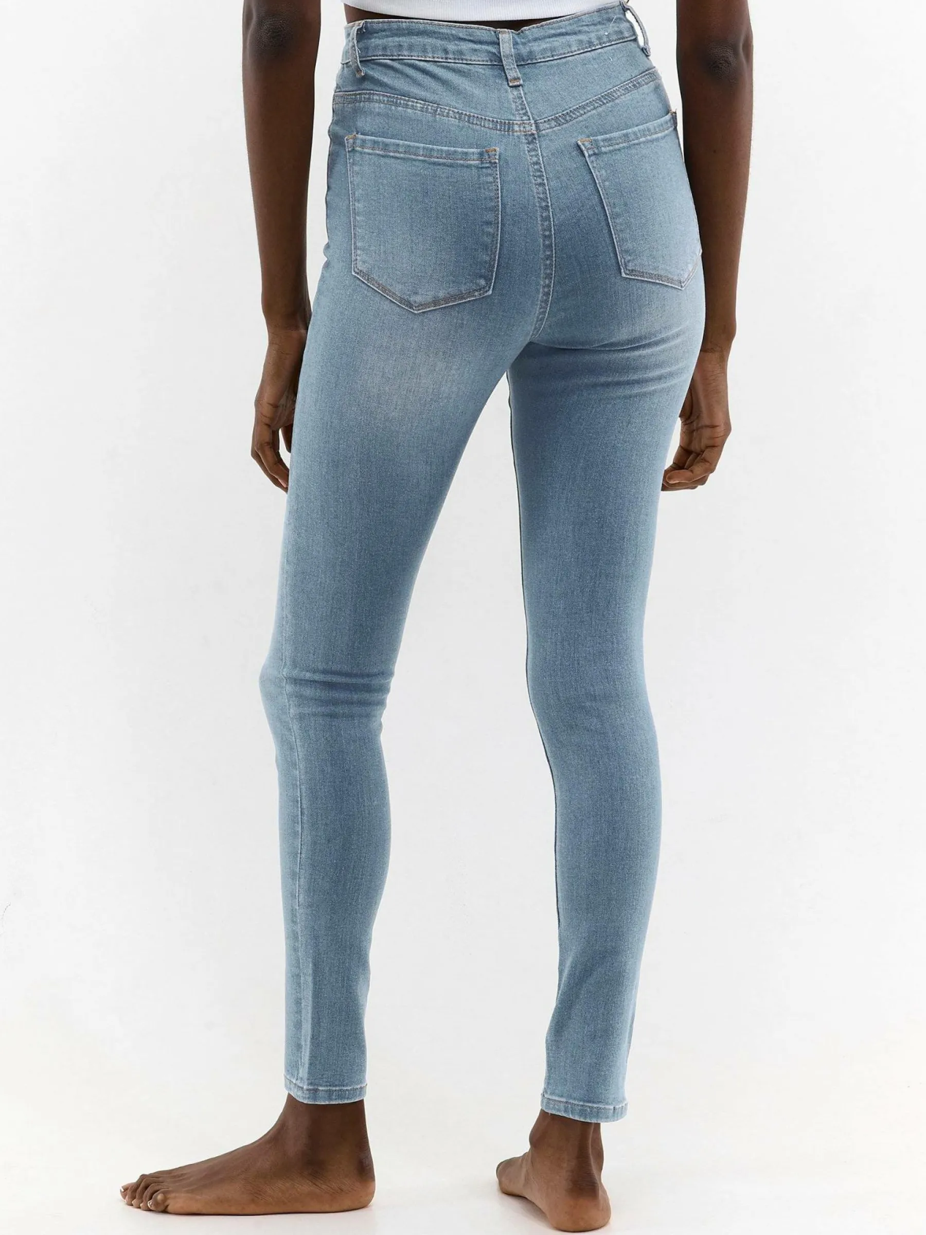 Kolor: niebieskiKrój: skinny, z wysokim stanemTyp: jeansDługość: dlugiePattern style: pojedynczy kolorDetal: na zame…