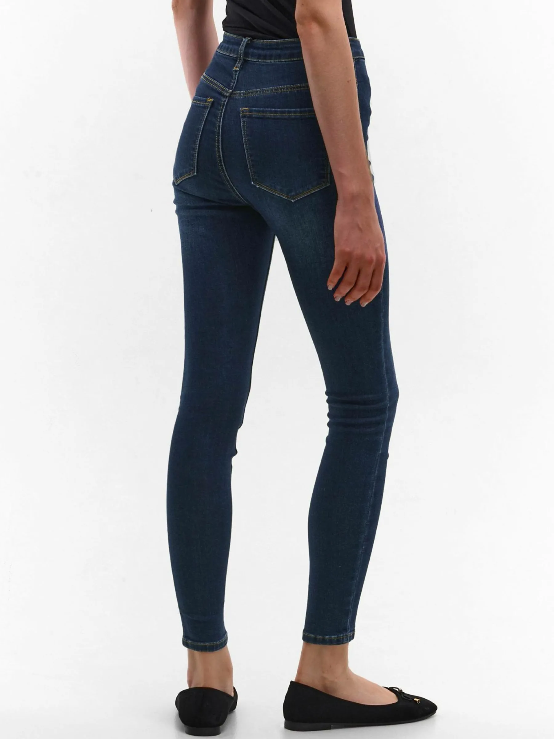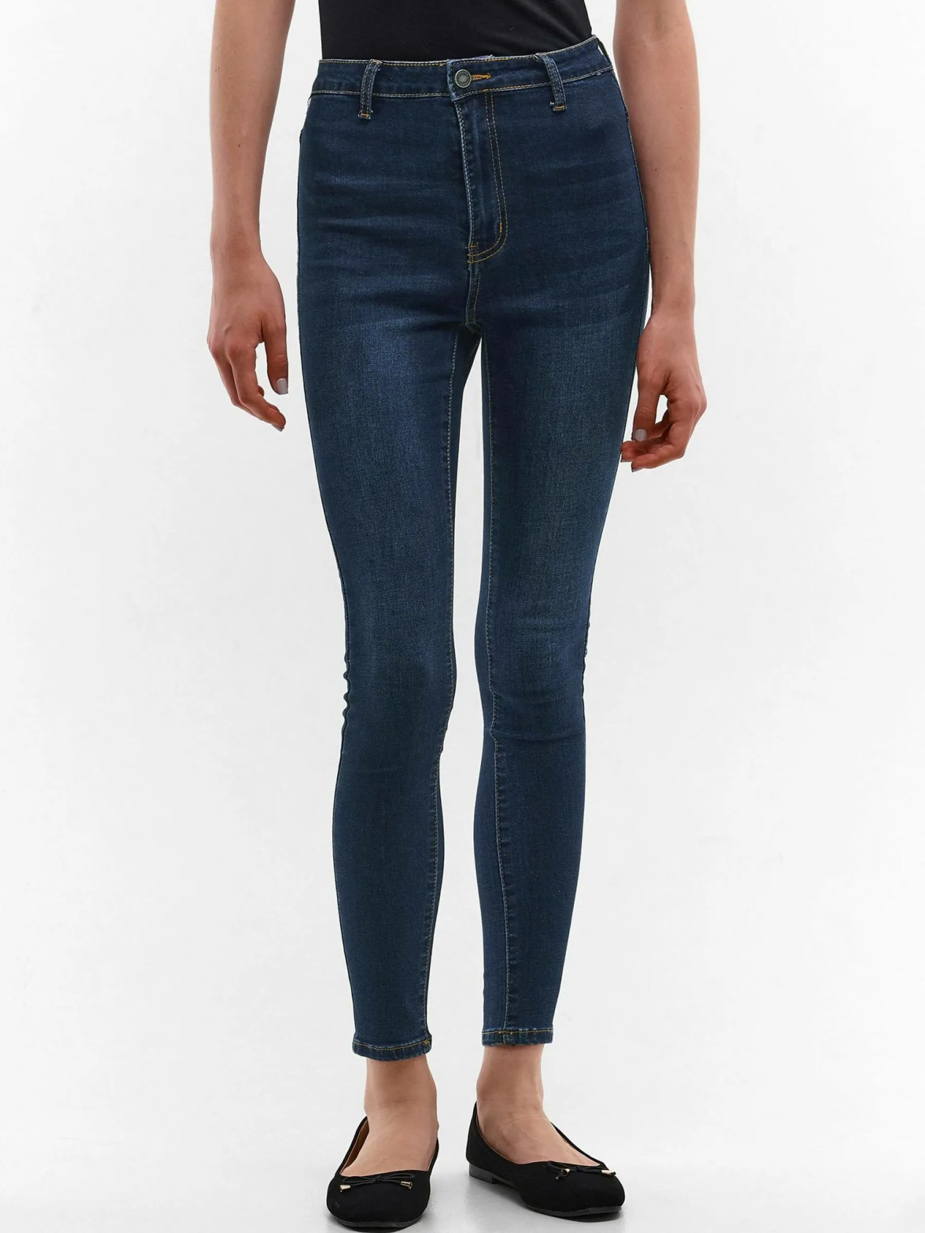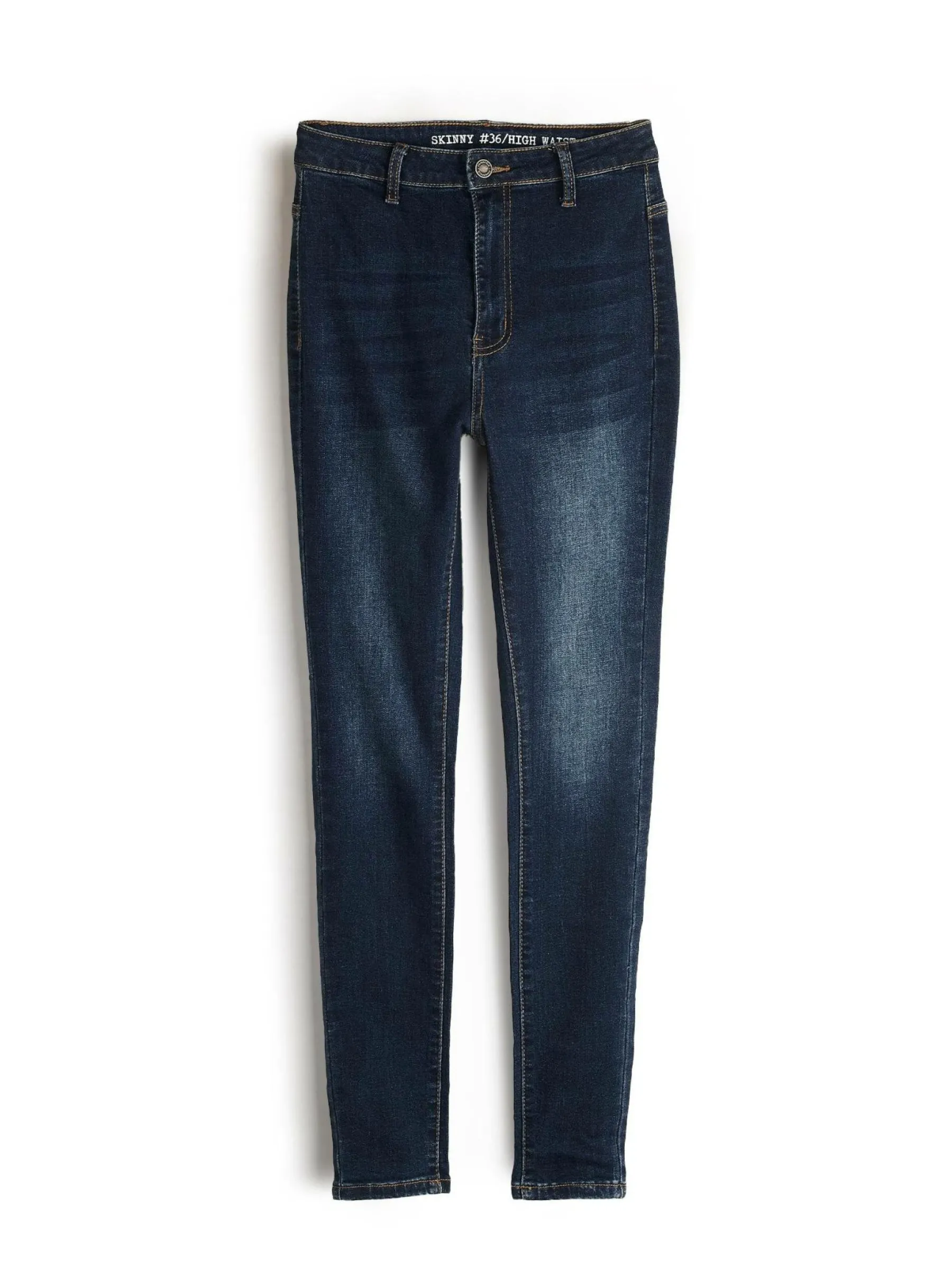Kolor: granatowyKrój: z wysokim stanem, skinnyTyp: jeansDługość: dlugiePattern style: pojedynczy kolorDetal: na zame…