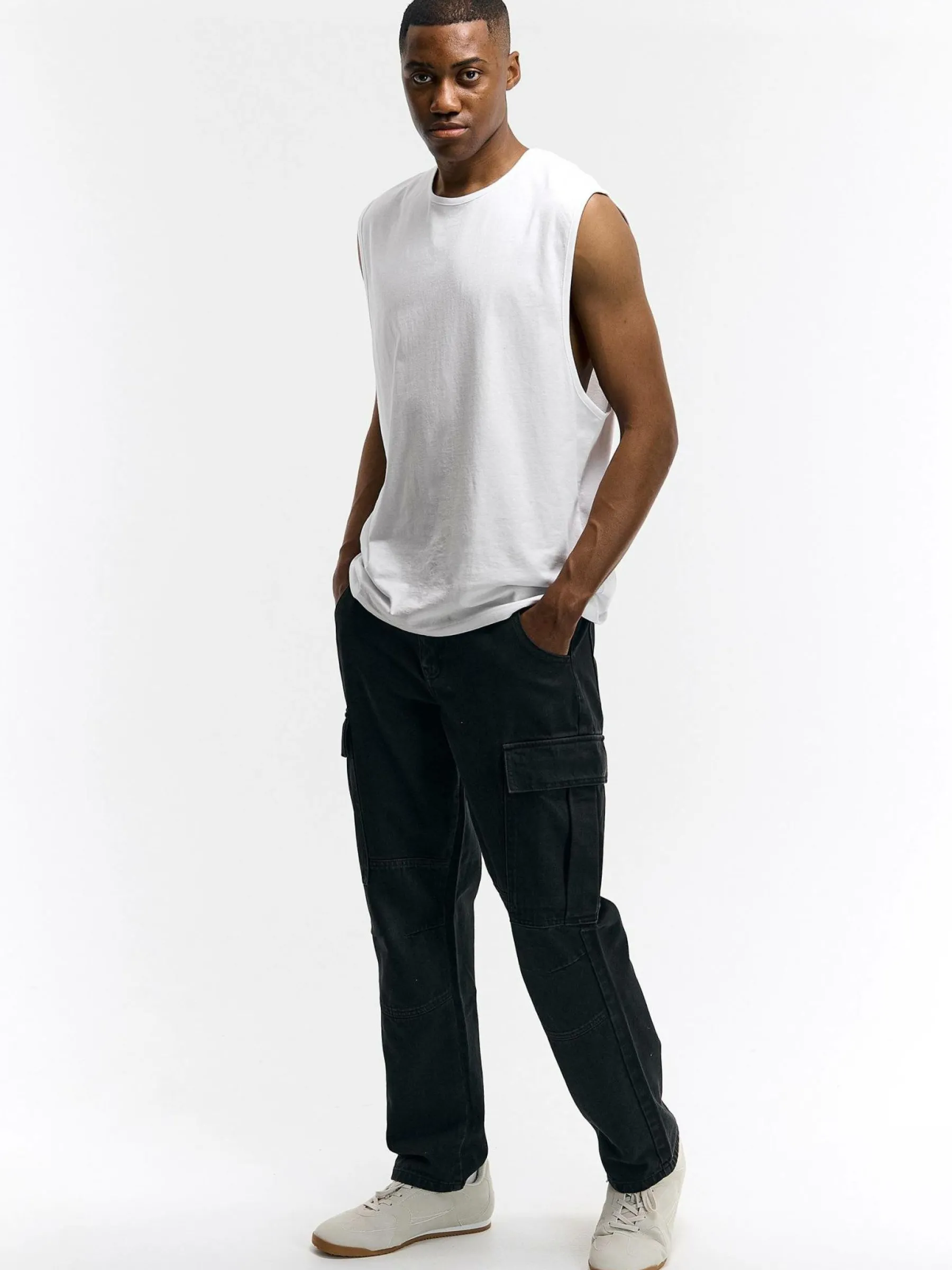 Kolor: czarnyKrój: cargoTyp: jeansDługość: dlugiePattern style: pojedynczy kolorDetal: na zamek, z kieszeniamiMateri…