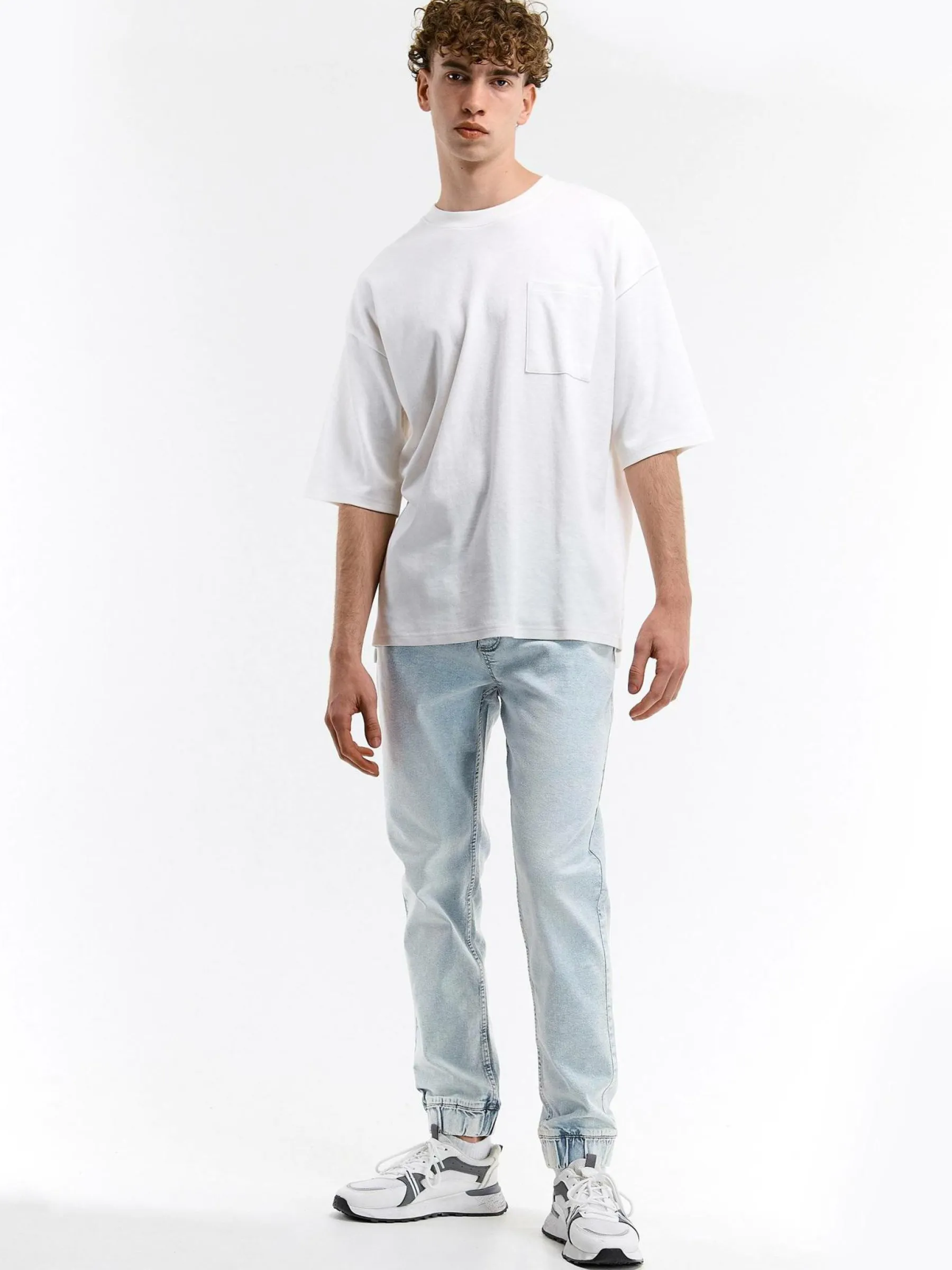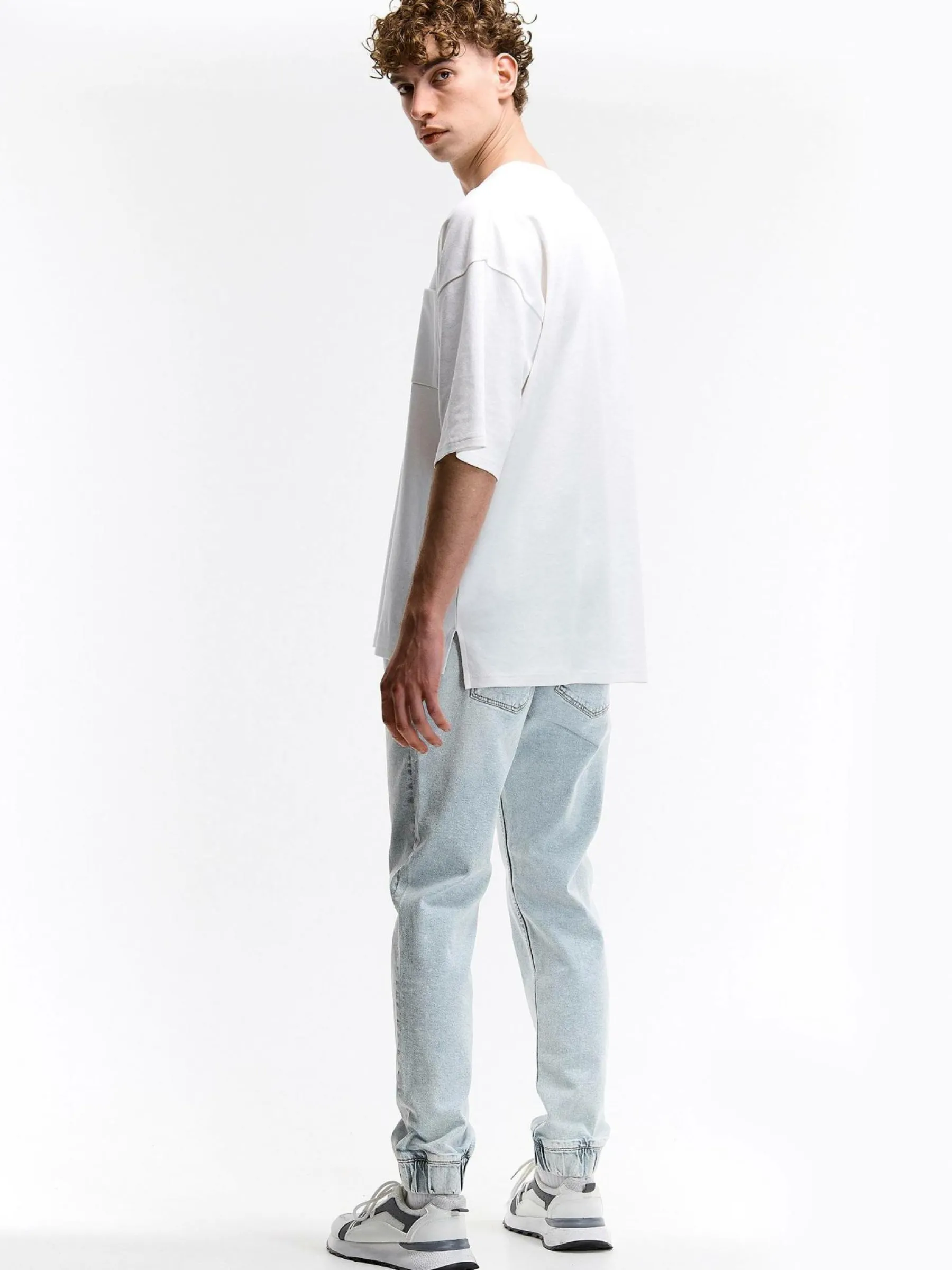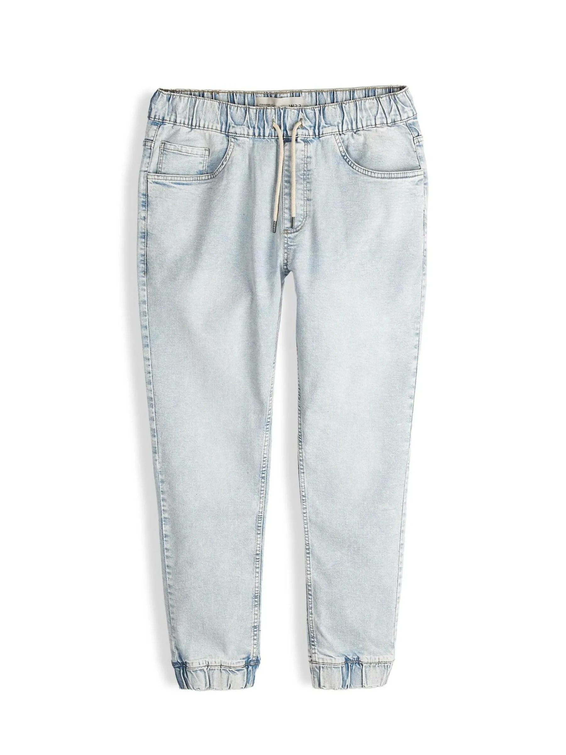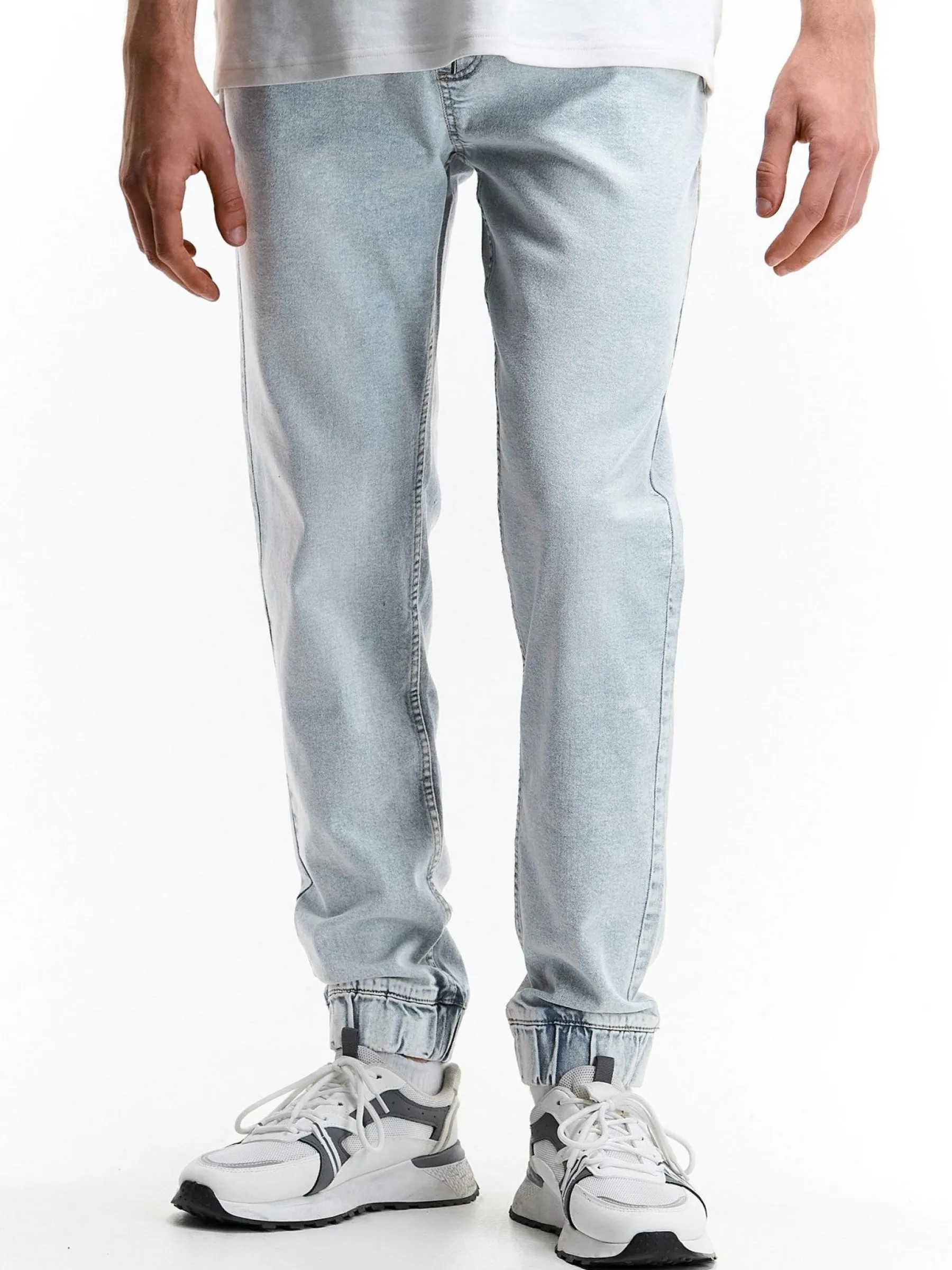 Kolor: niebieskiKrój: joggerTyp: jeansDługość: dlugiePattern style: pojedynczy kolorDetal: ze sznurowaniem, z kiesze…