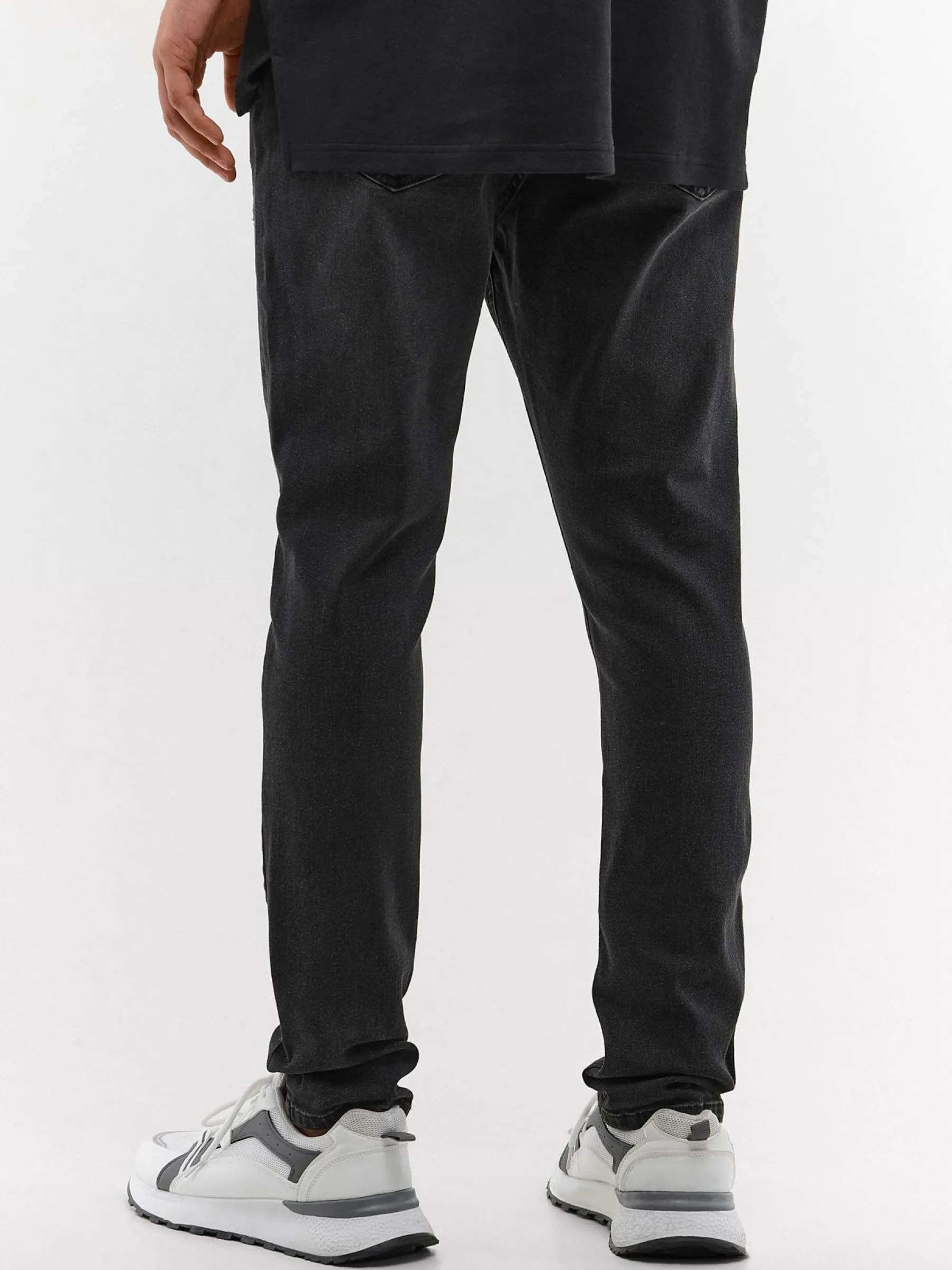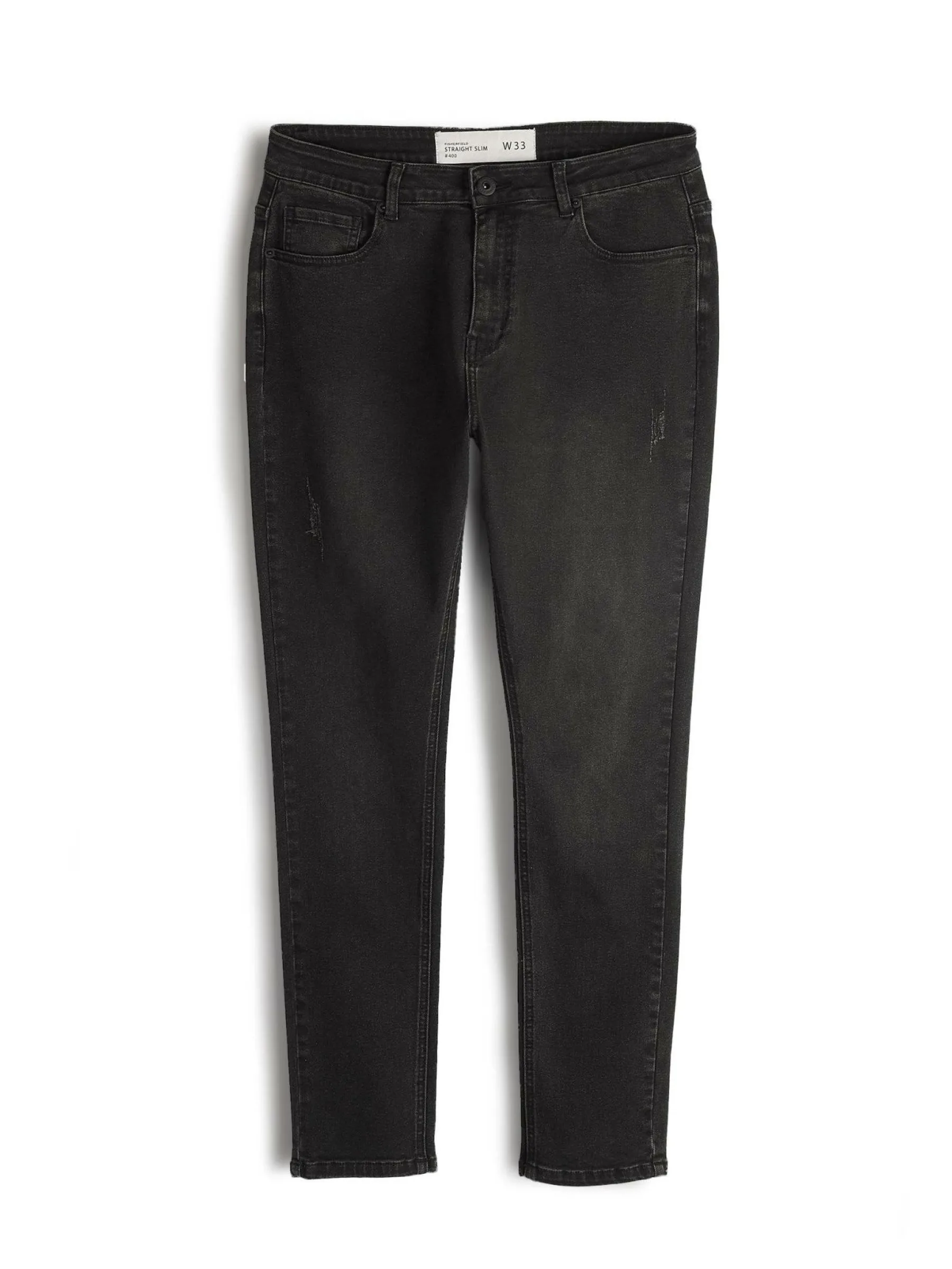 Kolor: czarnyKrój: prosty slimTyp: jeansDługość: dlugiePattern style: pojedynczy kolorDetal: na zamek, z kieszeniami…