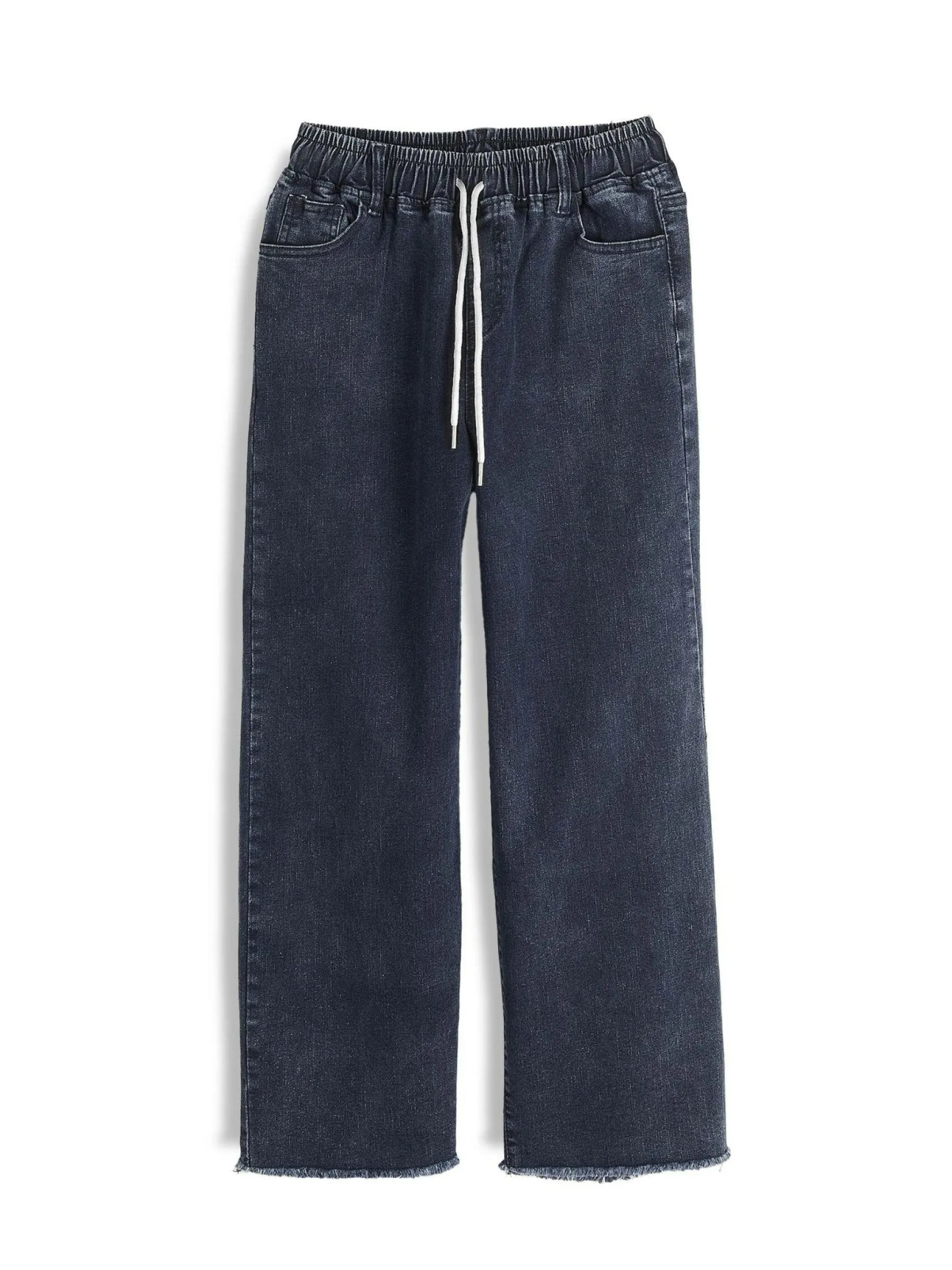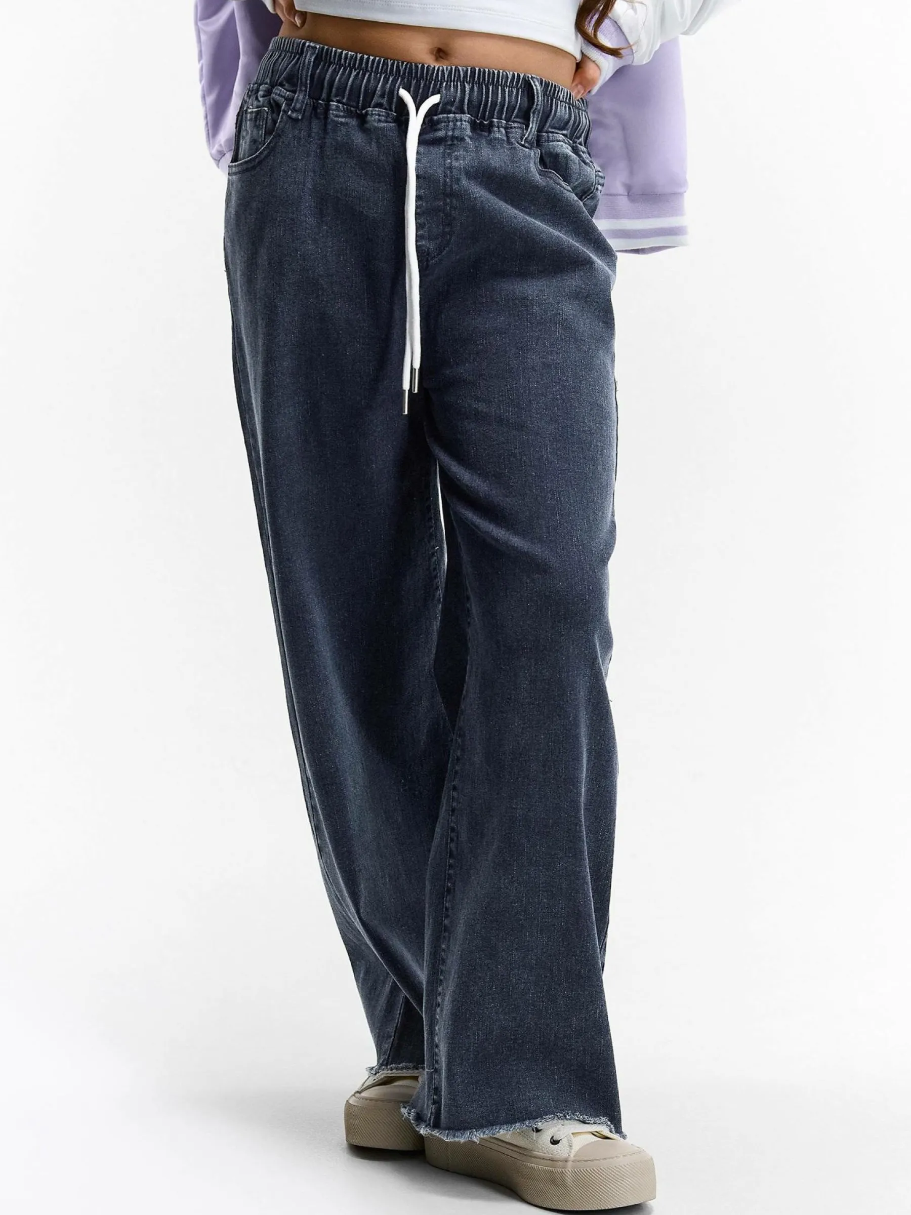 Kolor: niebieskiKrój: straightTyp: jeansDługość: dlugiePattern style: pojedynczy kolorDetal: ze sznurowaniem, z kies…