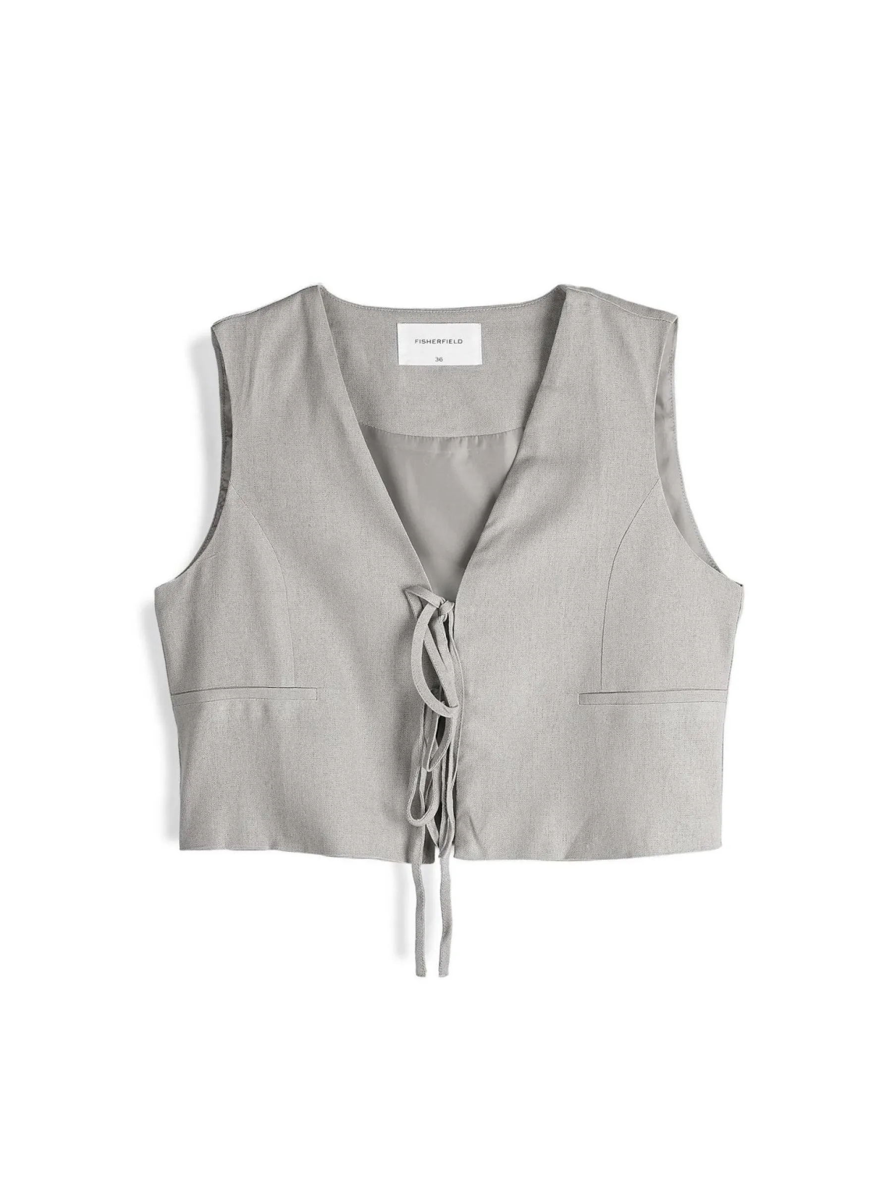 Kolor: szaryKrój: podstawowyTyp: kamizelkaRekaw: bez rękawówDługość: krótkiPattern style: pojedynczy kolorDetal: …