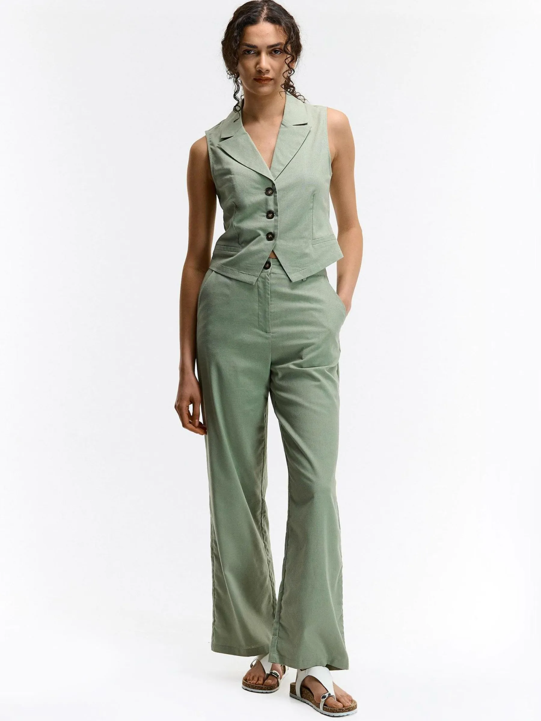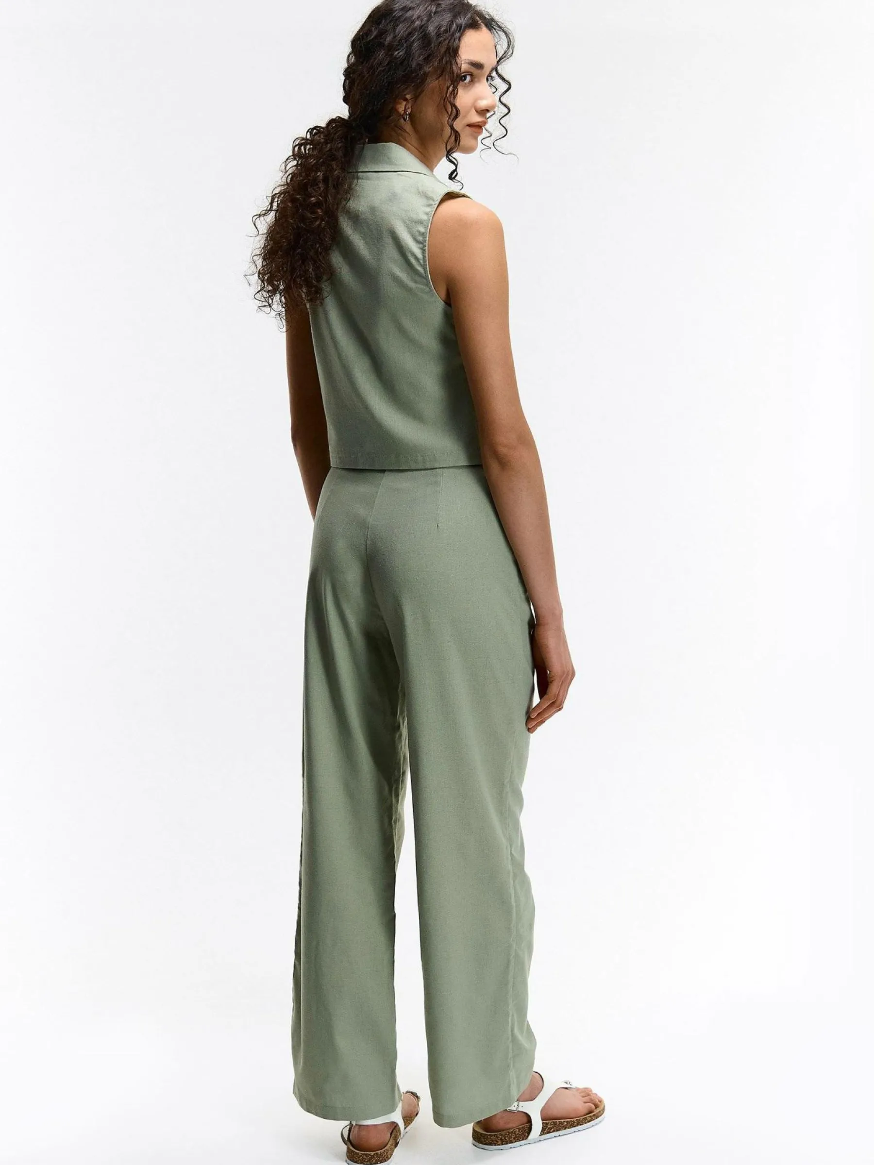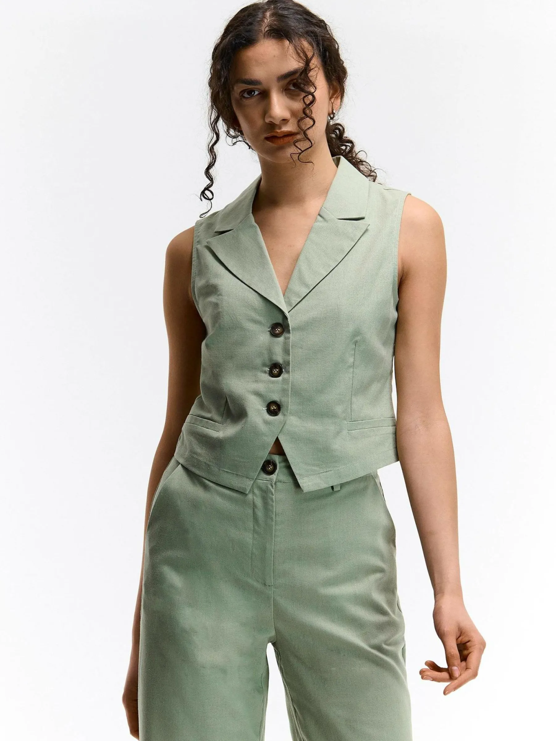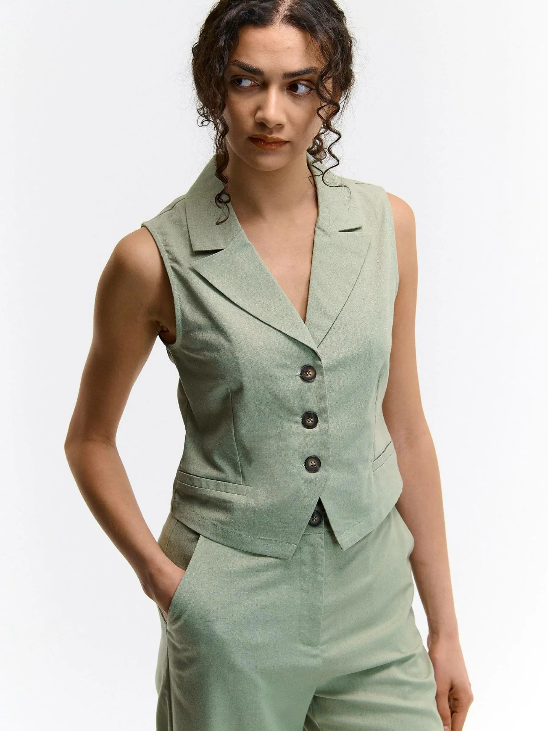 Kolor: khakiKrój: podstawowyTyp: kamizelkaRekaw: bez rękawówDługość: krótkiPattern style: pojedynczy kolorDetal: …