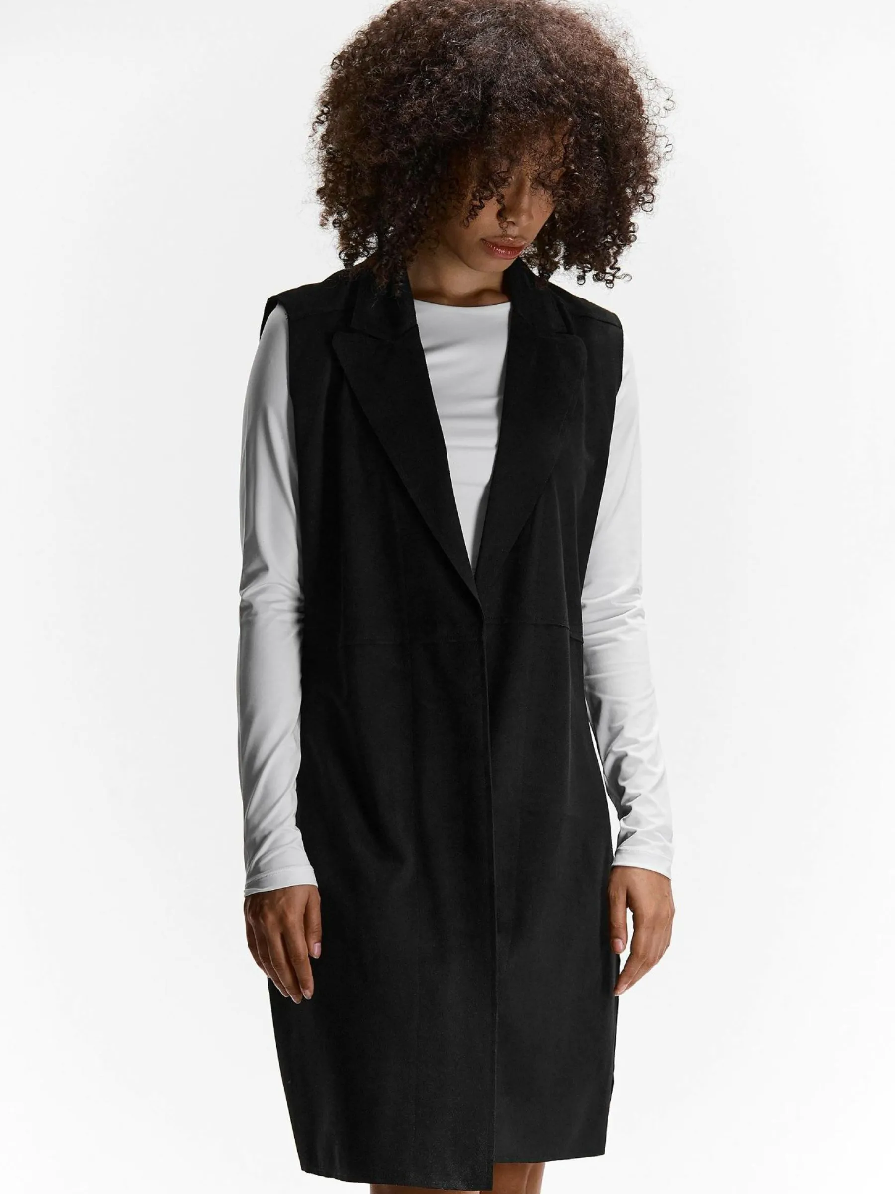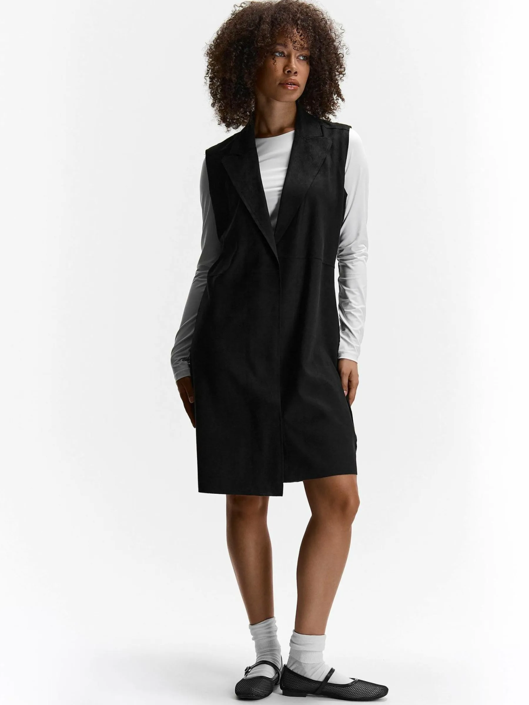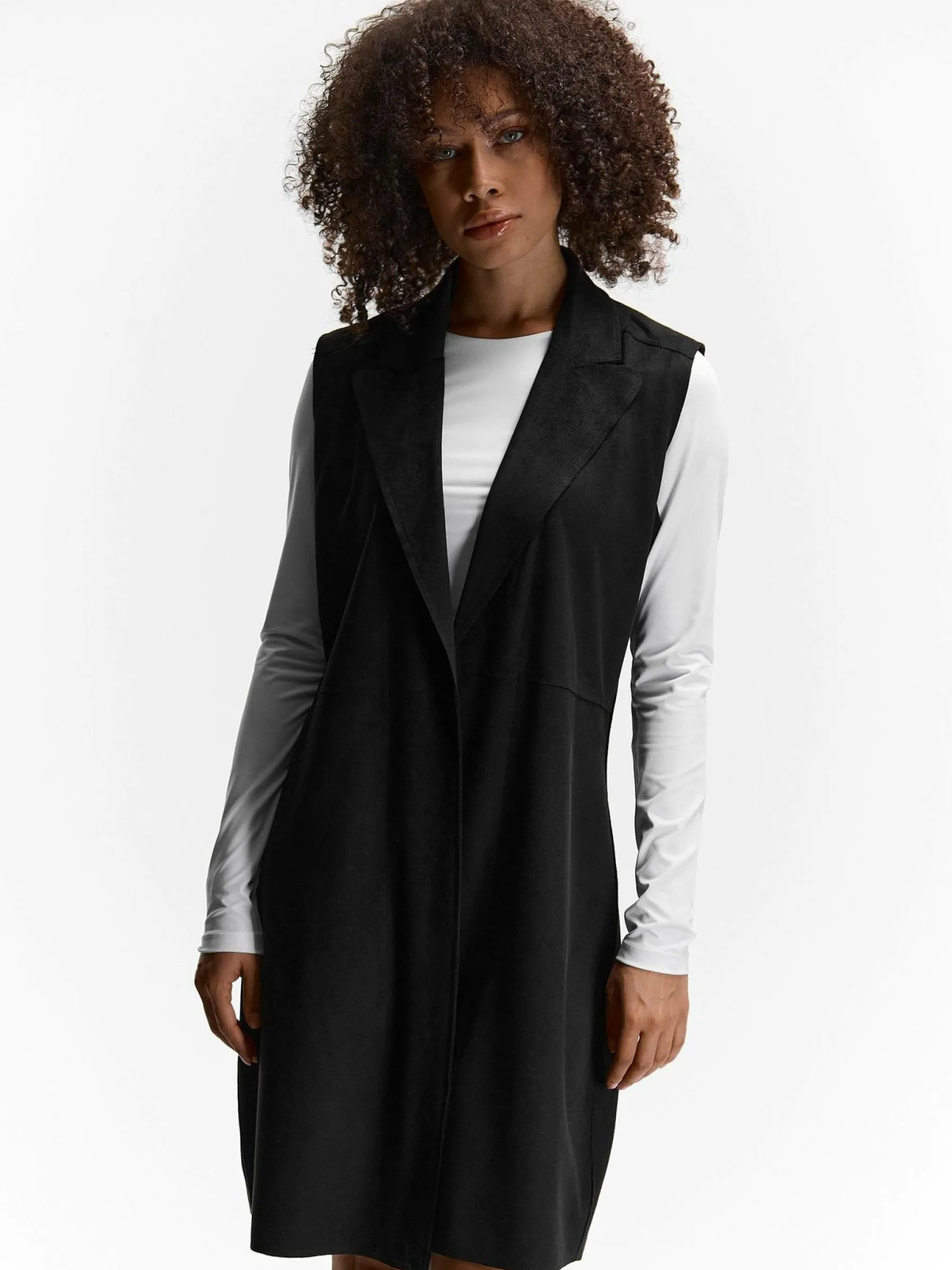 Kolor: czarnyKrój: regularTyp: kamizelkaRekaw: bez rękawówDługość: dlugiePattern style: pojedynczy kolorDetal: bez…