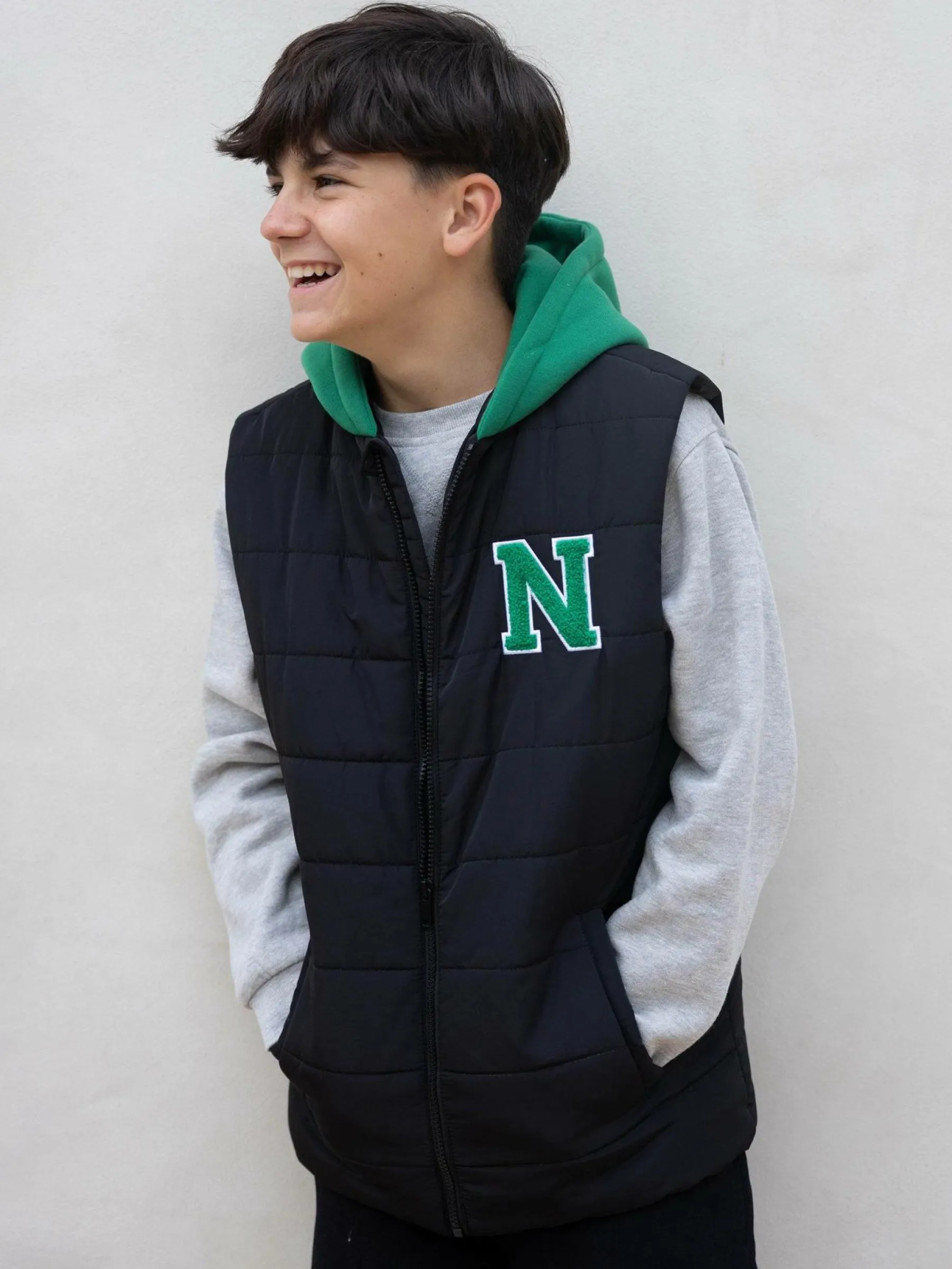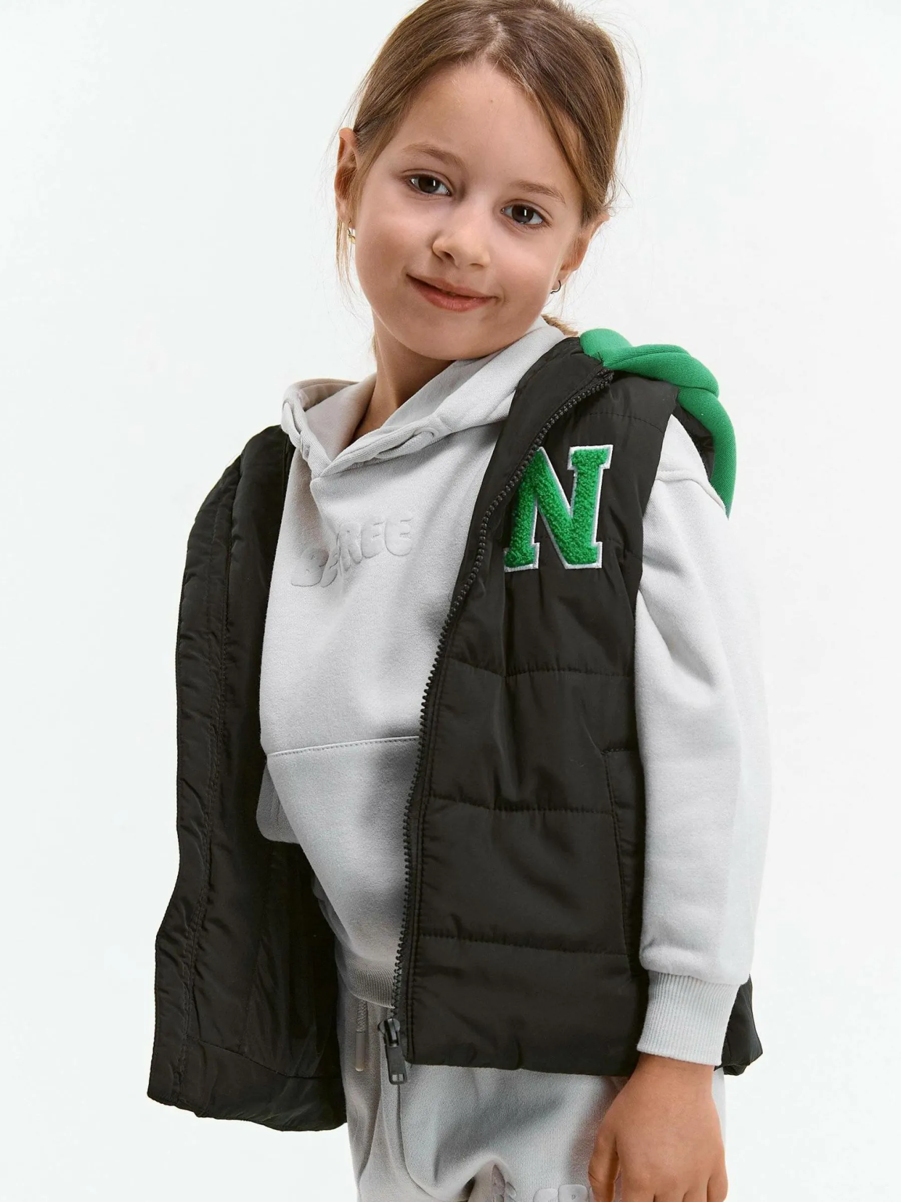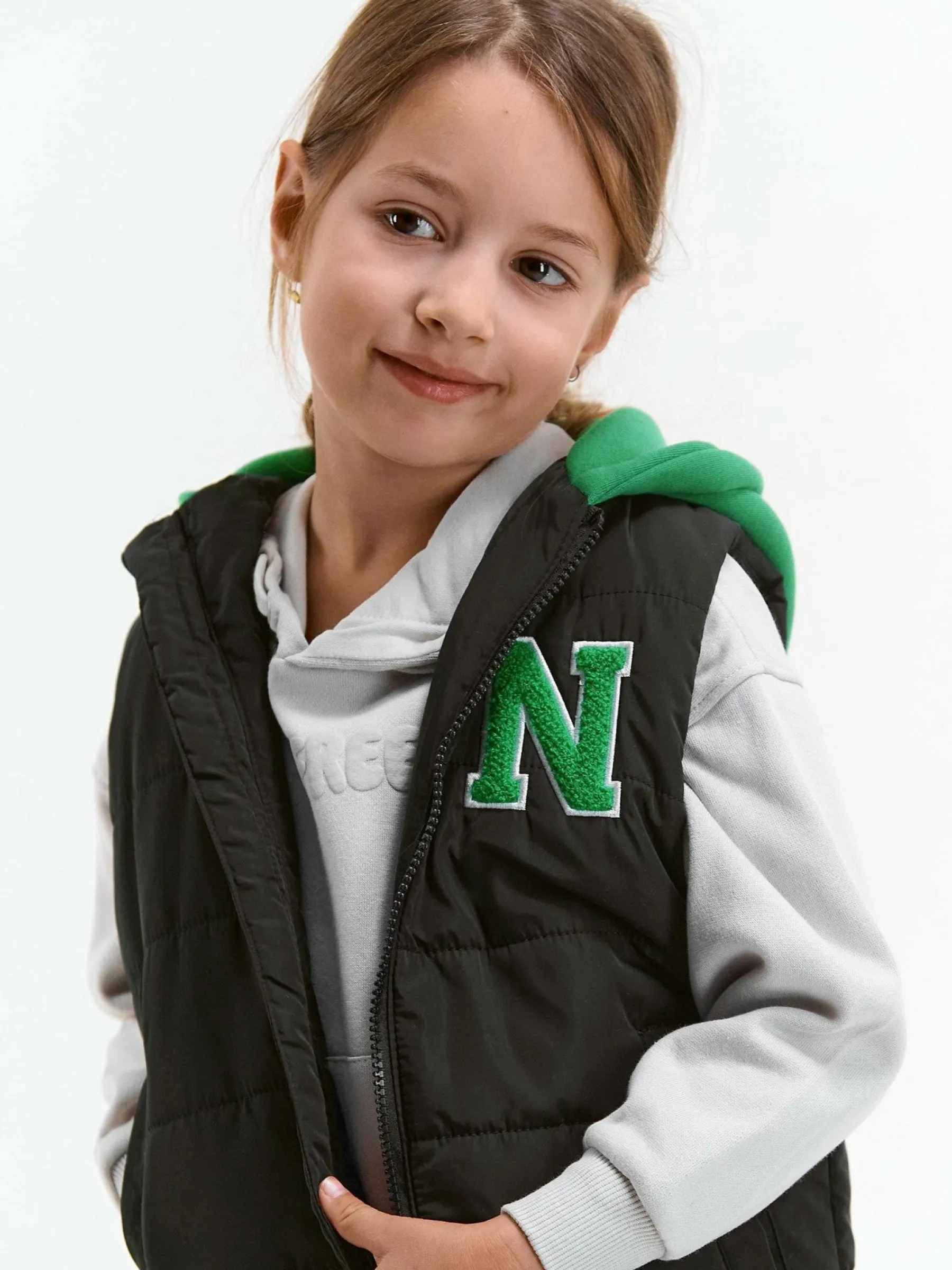 Zdjęcia z modelem mogą nie odpowiadać rzeczywistemu kolorowi produktu.Kolor: czarnyKrój: pikowaneTyp: kamizelkaRekaw…