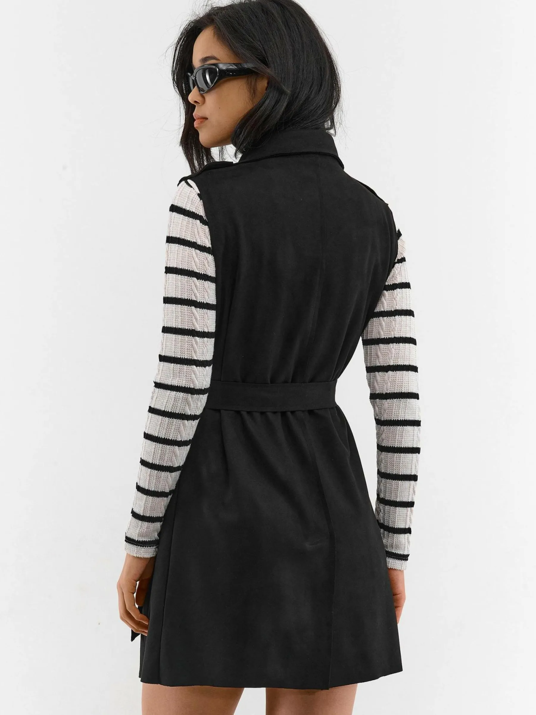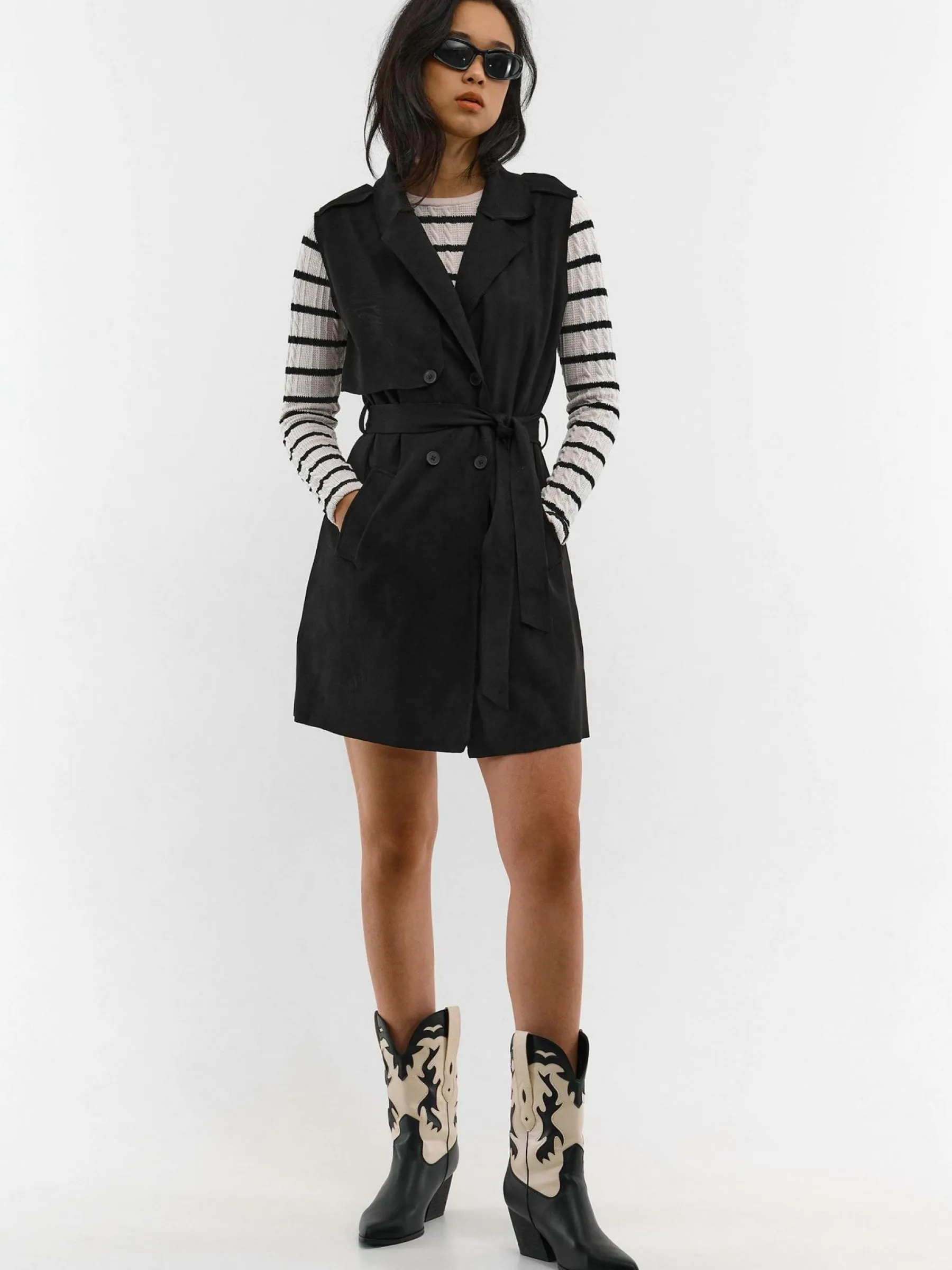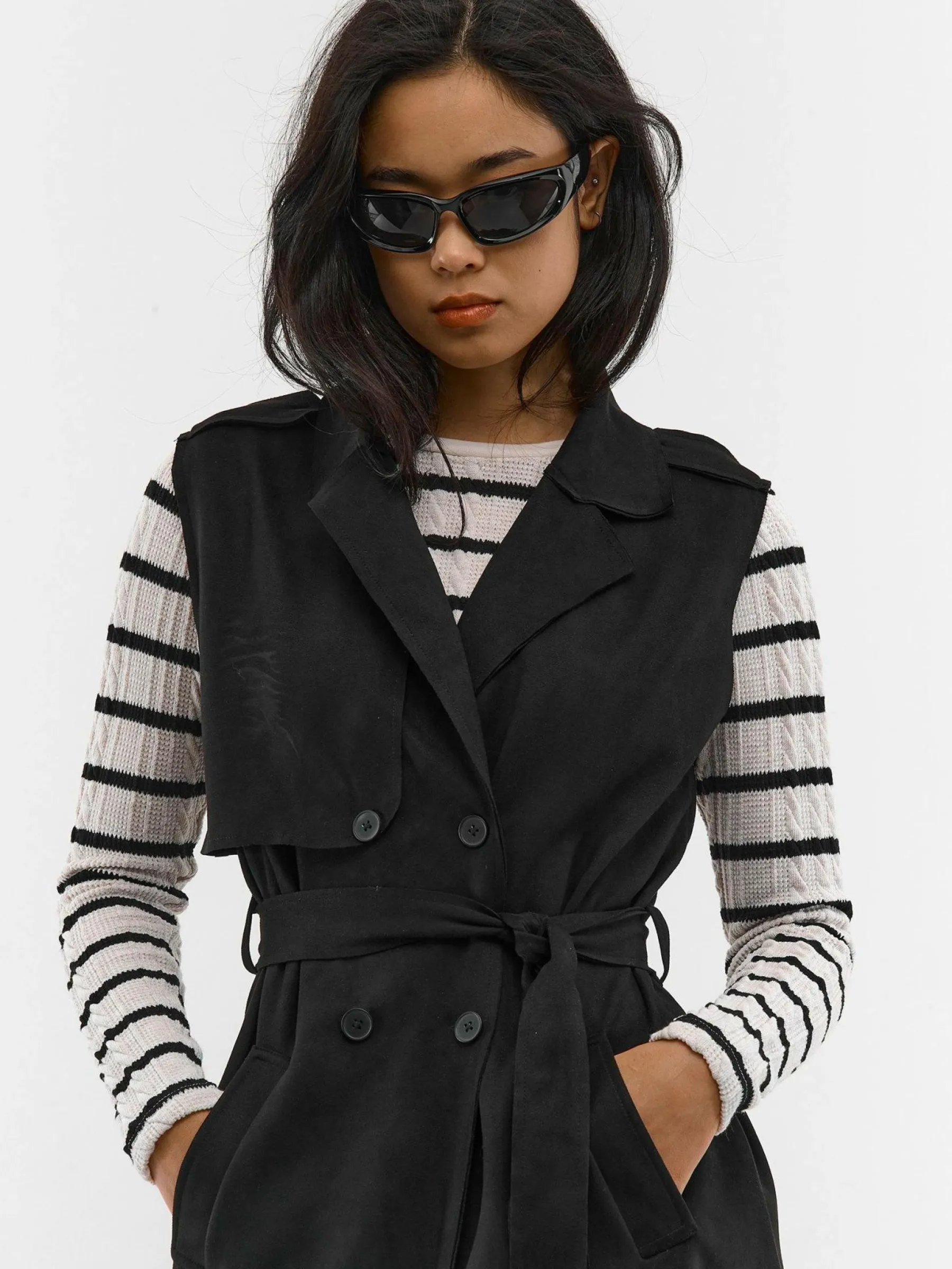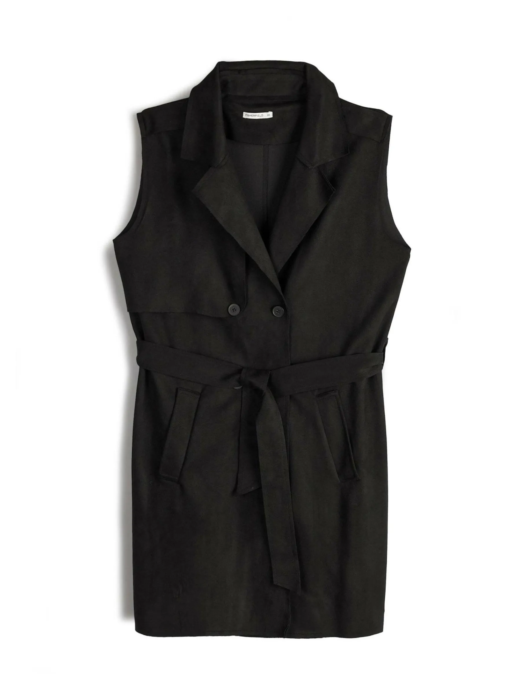 Kolor: czarnyKrój: podstawowyTyp: kamizelkaRekaw: bez rękawówDługość: dlugiePattern style: pojedynczy kolorDetal: …