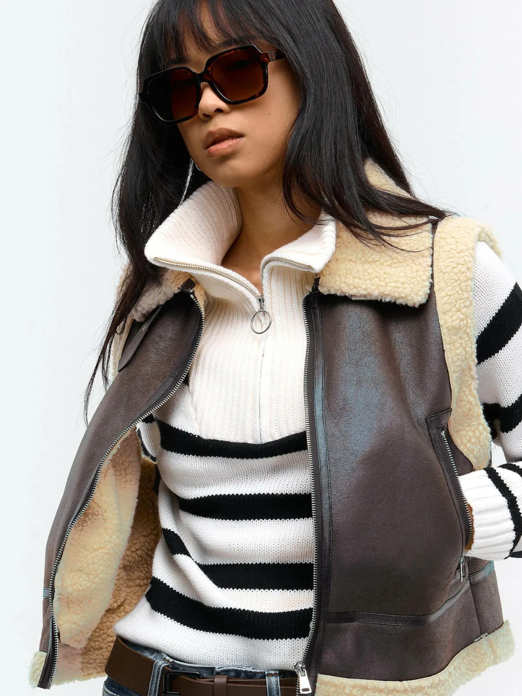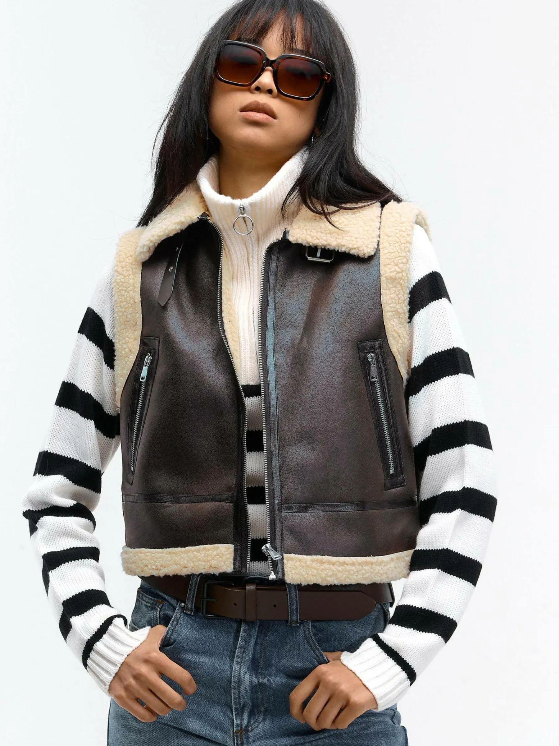 Kolor: brązowyKrój: regularTyp: zimowa/przejściowa kamizelkaRekaw: bez rękawówDługość: krótkiPattern style: poj…