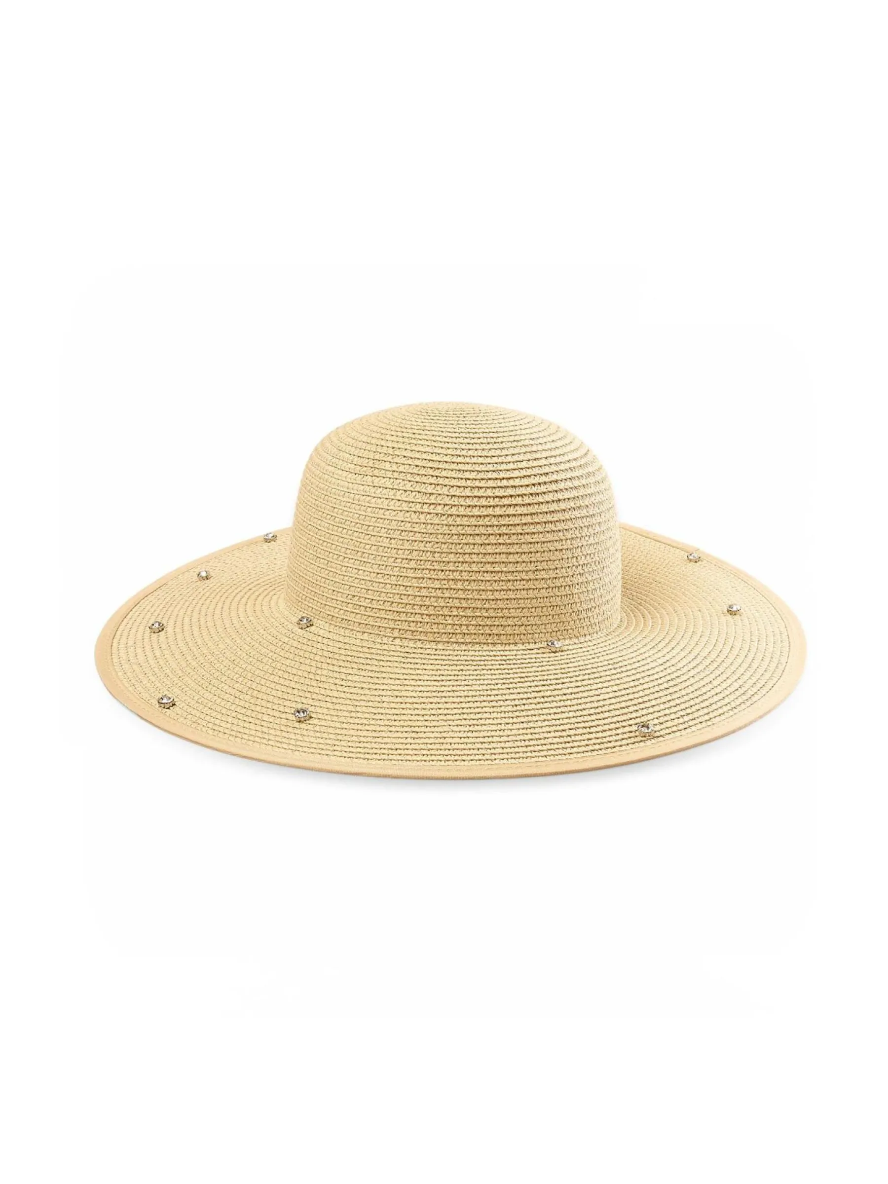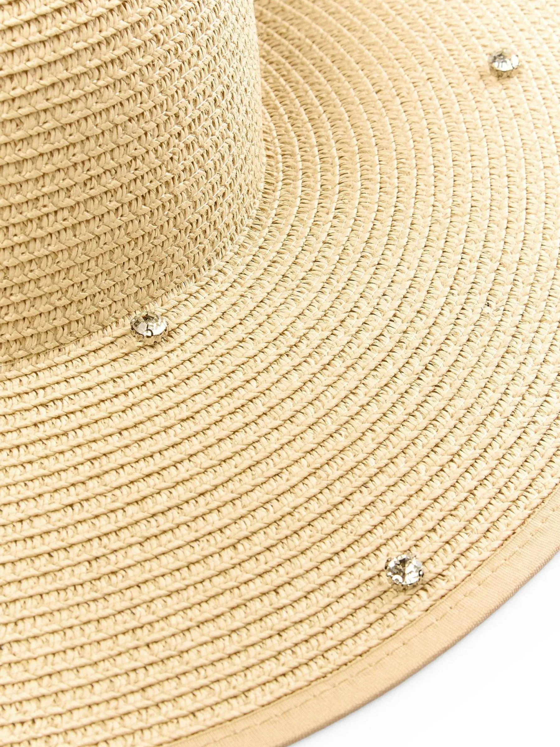 Kolor: beżowyKrój: podstawowyTyp: kapeluszPattern style: pojedynczy kolorDetal: z kamieniamiMateriał: papierPłeć: k…