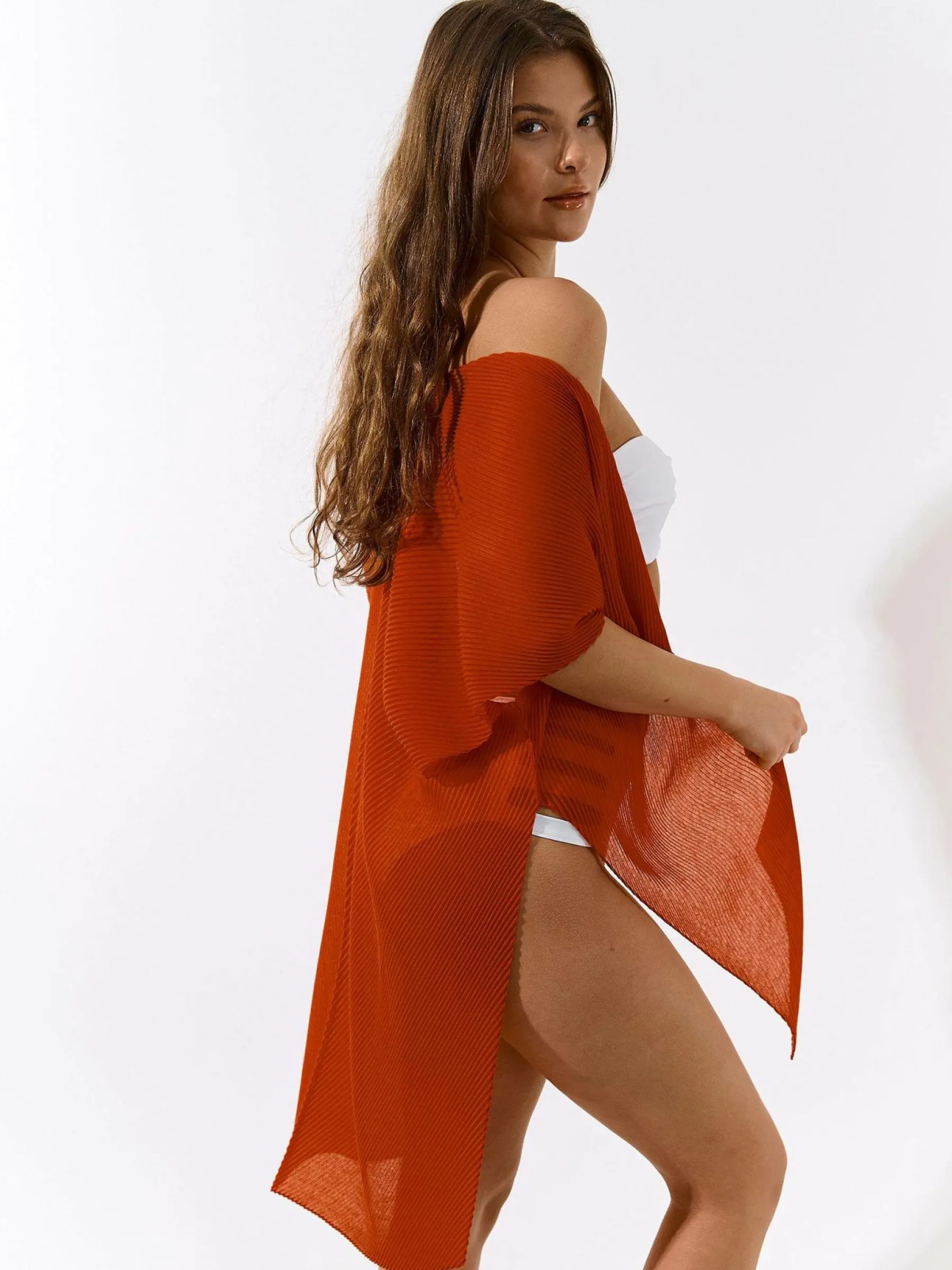 Kolor: pomarańczowyKrój: asymetryczneTyp: szalDługość: dlugiePattern style: pojedynczy kolorDetal: bez zapinaniaPł…