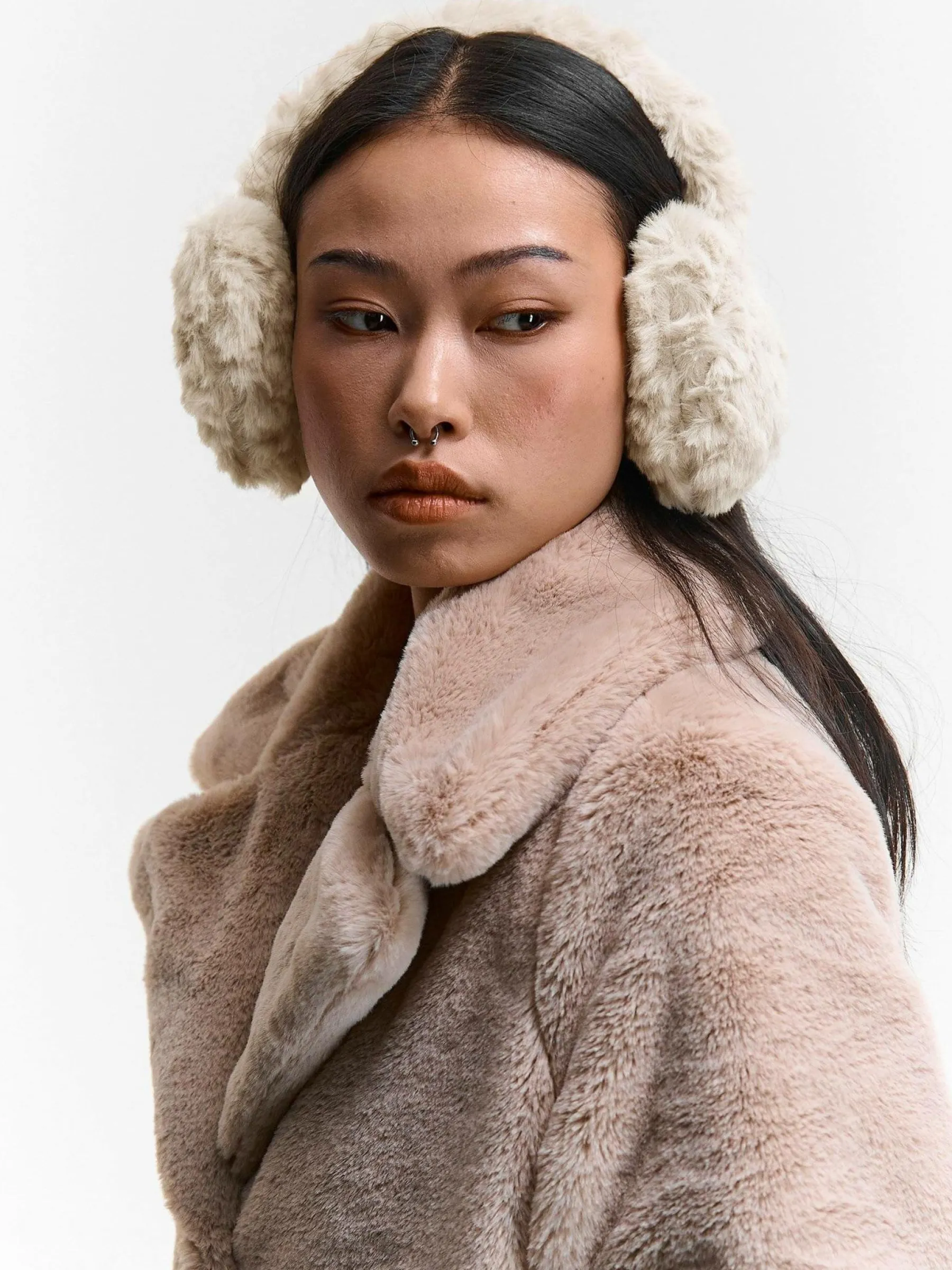 Kolor: beżowyKrój: podstawowyTyp: nausznikiPattern style: pojedynczy kolorMateriał: futroPłeć: kobietyOkazja: odzie…
