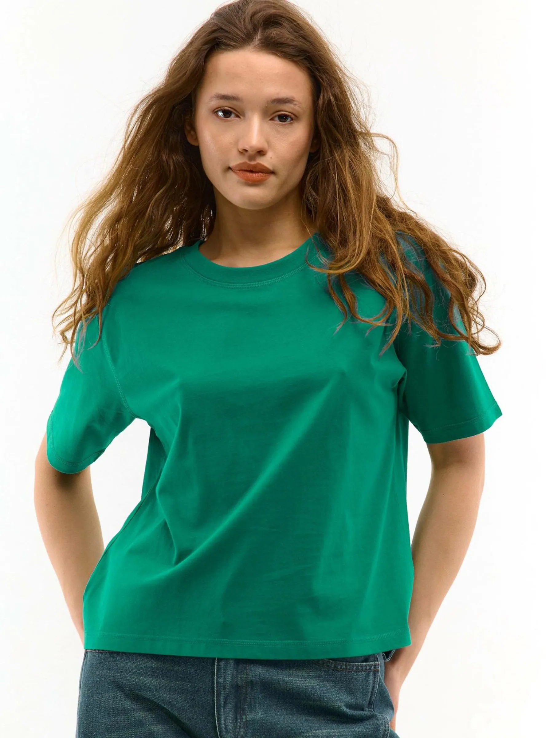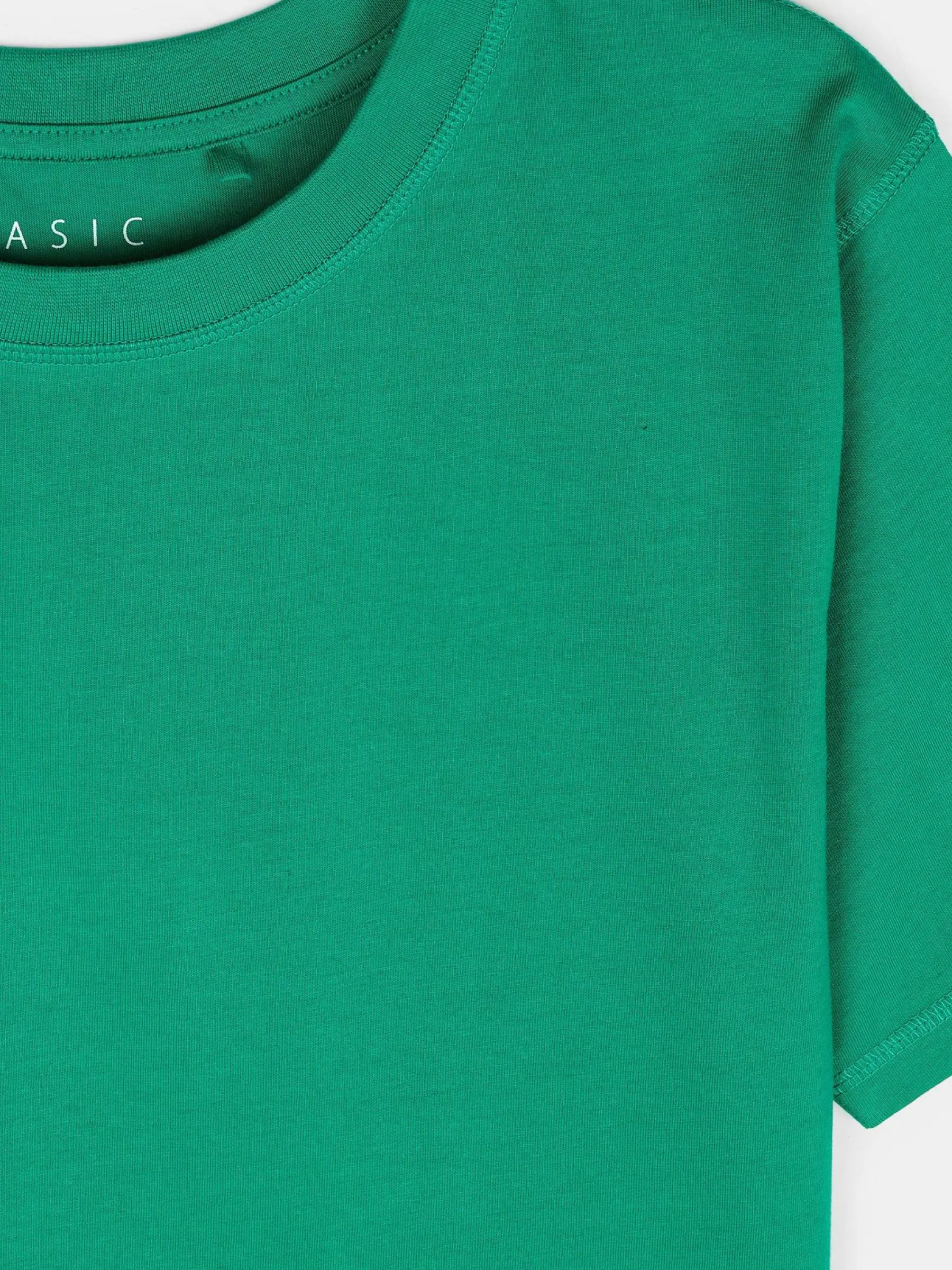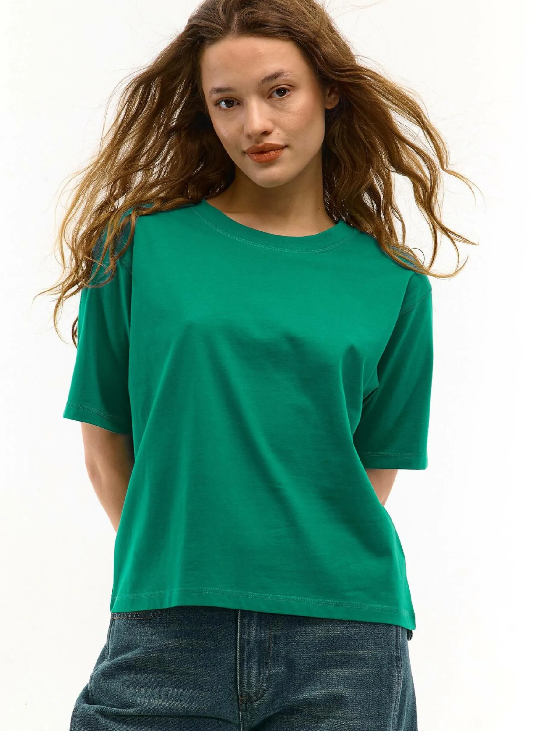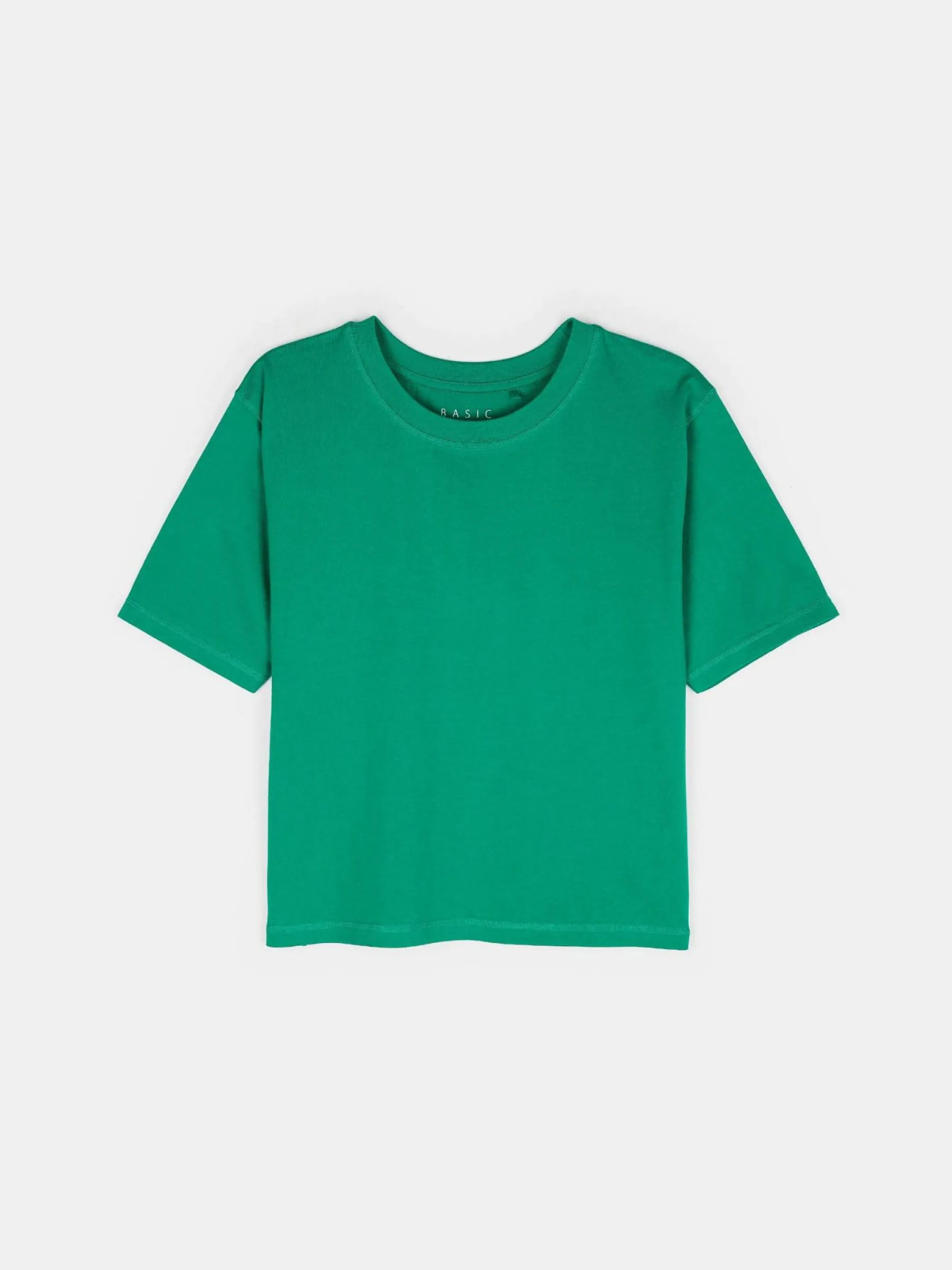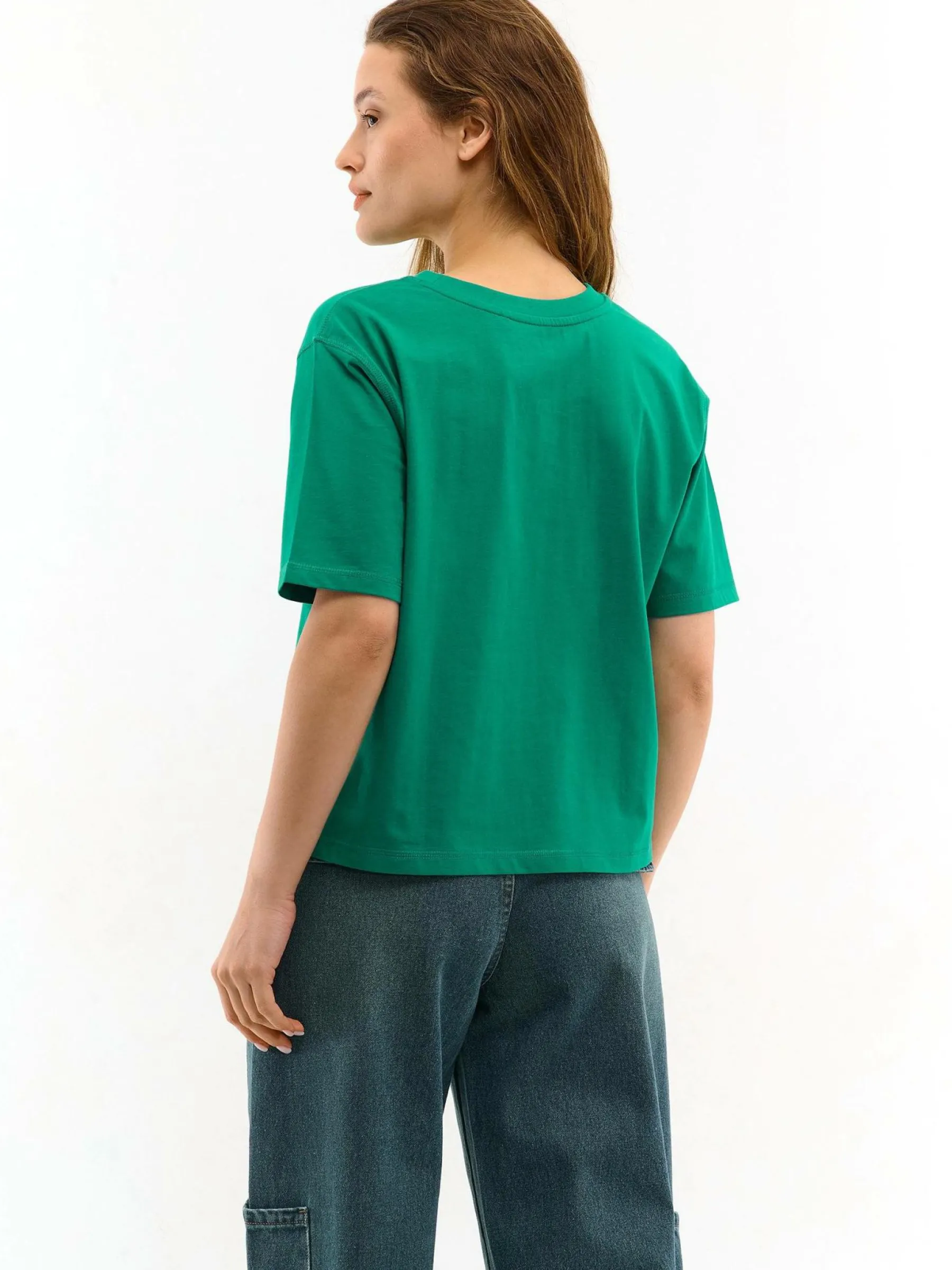 Kolor: zielonyKrój: oversized, regularTyp: koszulkaRekaw: krótki rękawDługość: krótkiPattern style: pojedynczy ko…