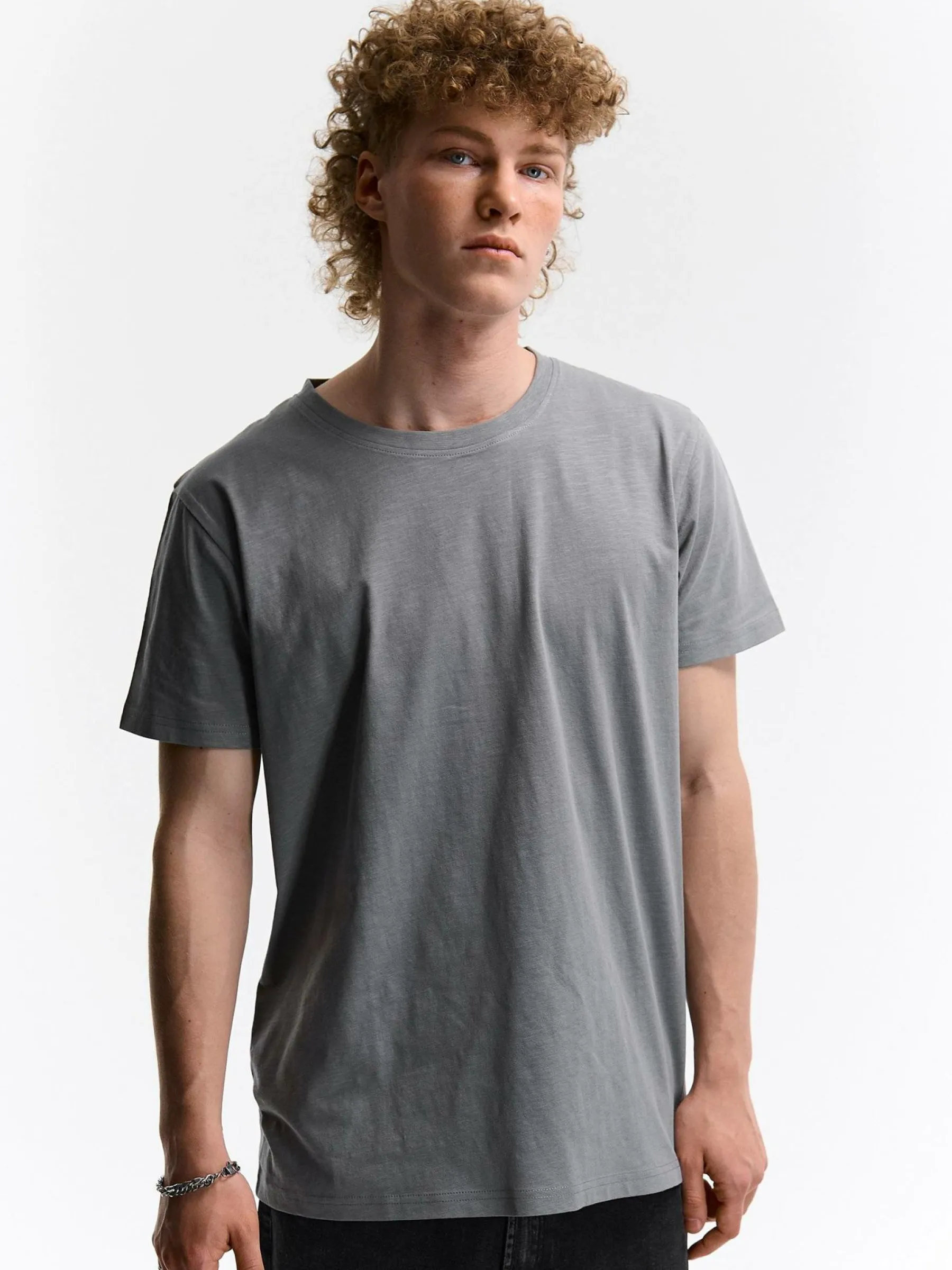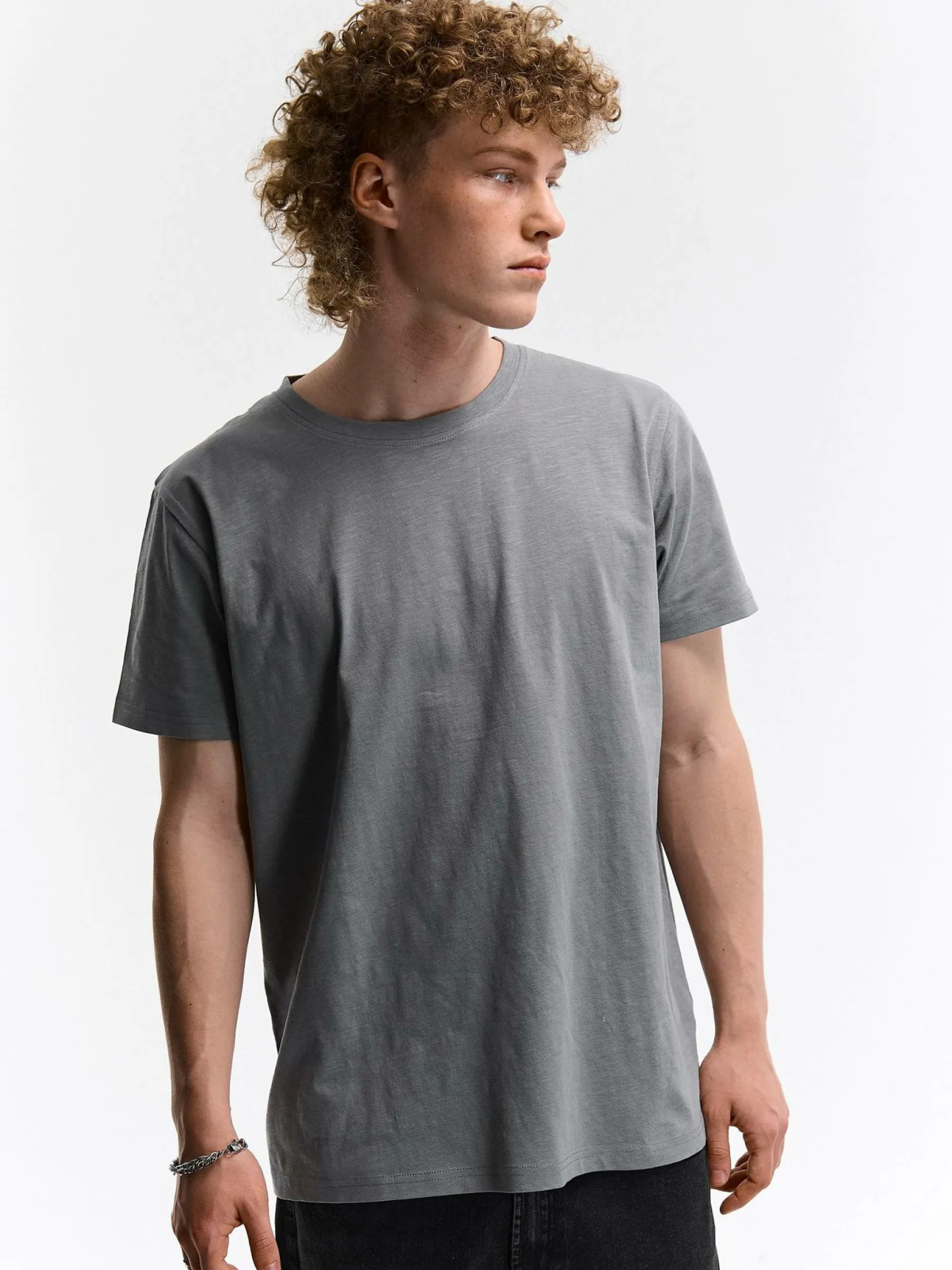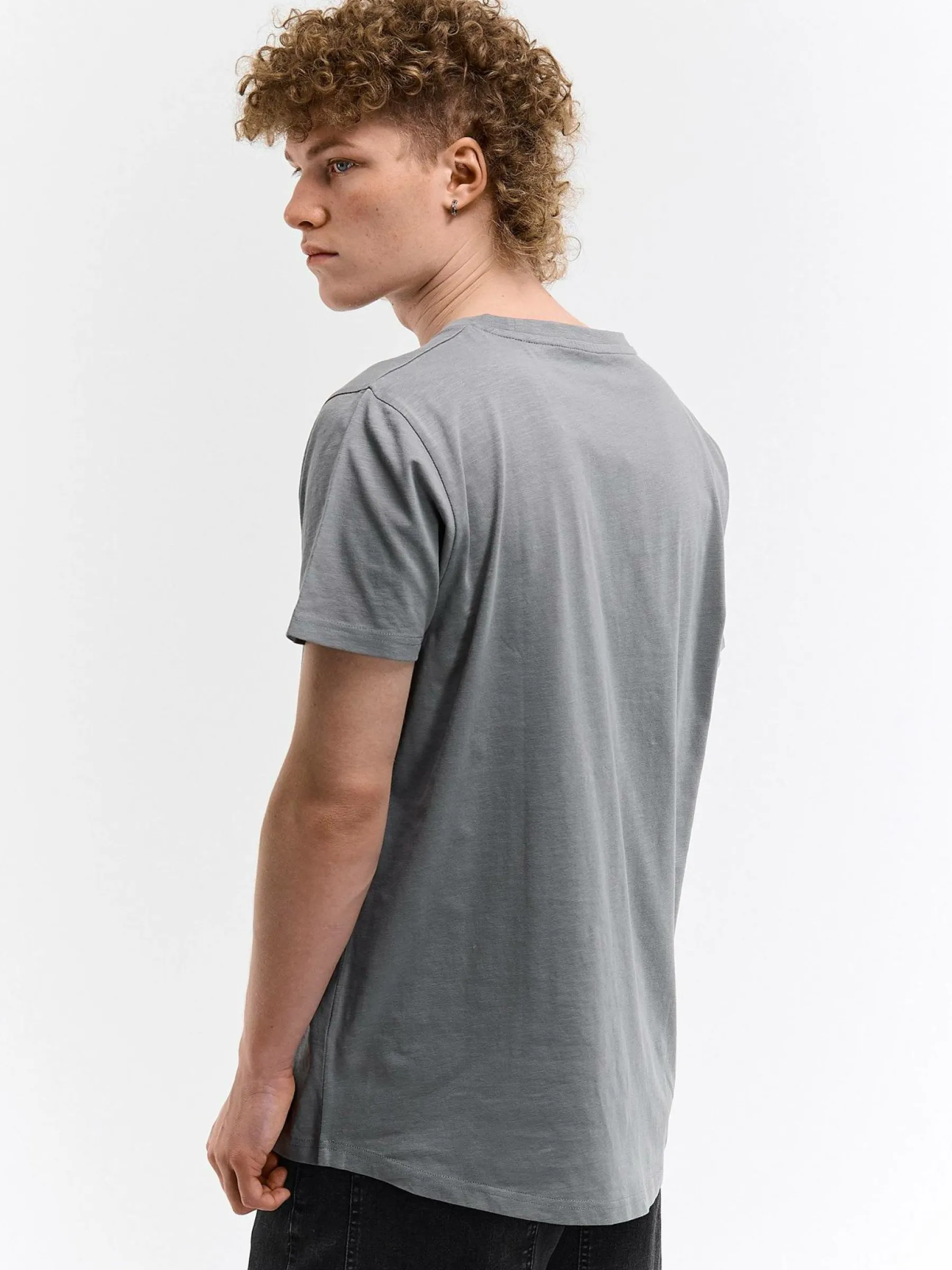 Kolor: szaryKrój: regularTyp: koszulkaRekaw: krótki rękawPattern style: pojedynczy kolorDetal: nad głowąMateriał: …