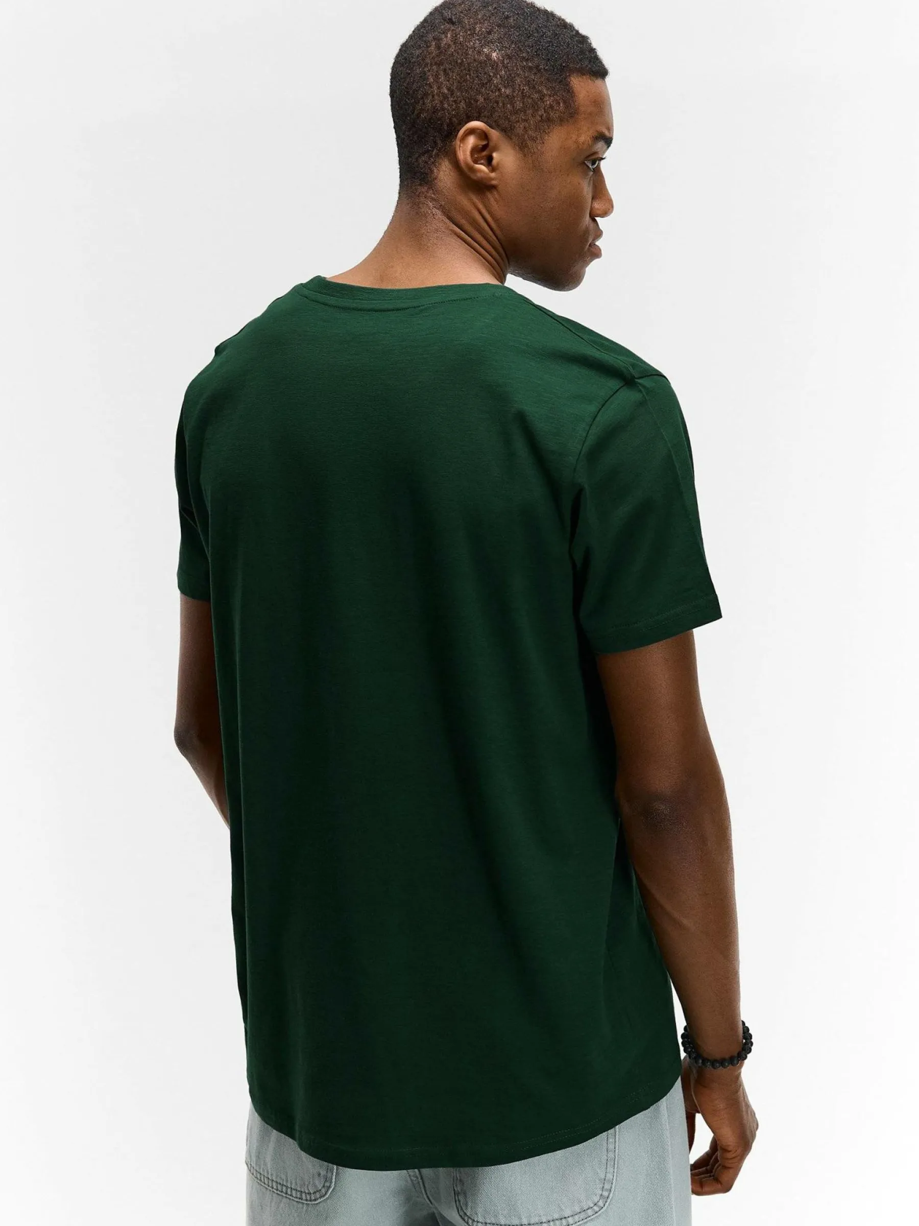 Kolor: zielonyKrój: regularTyp: koszulkaRekaw: krótki rękawPattern style: pojedynczy kolorDetal: nad głowąMateriał…