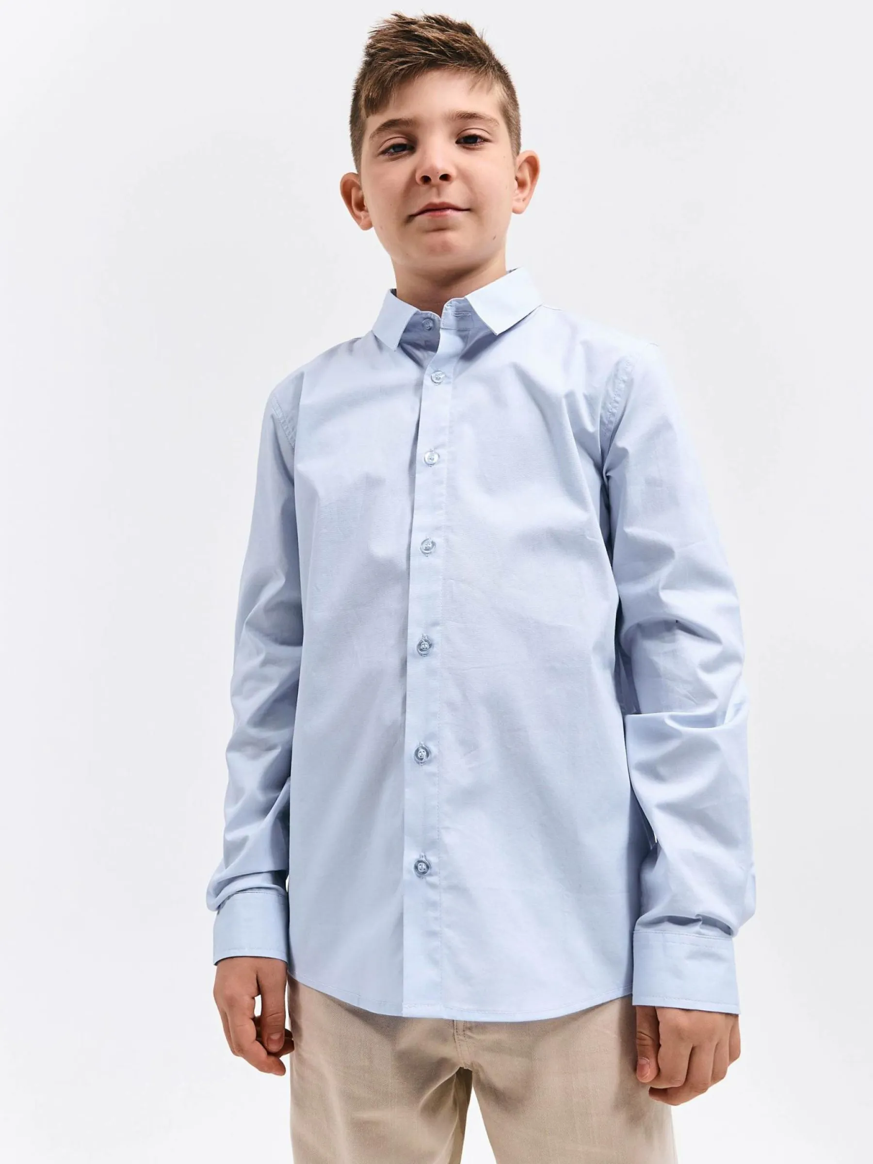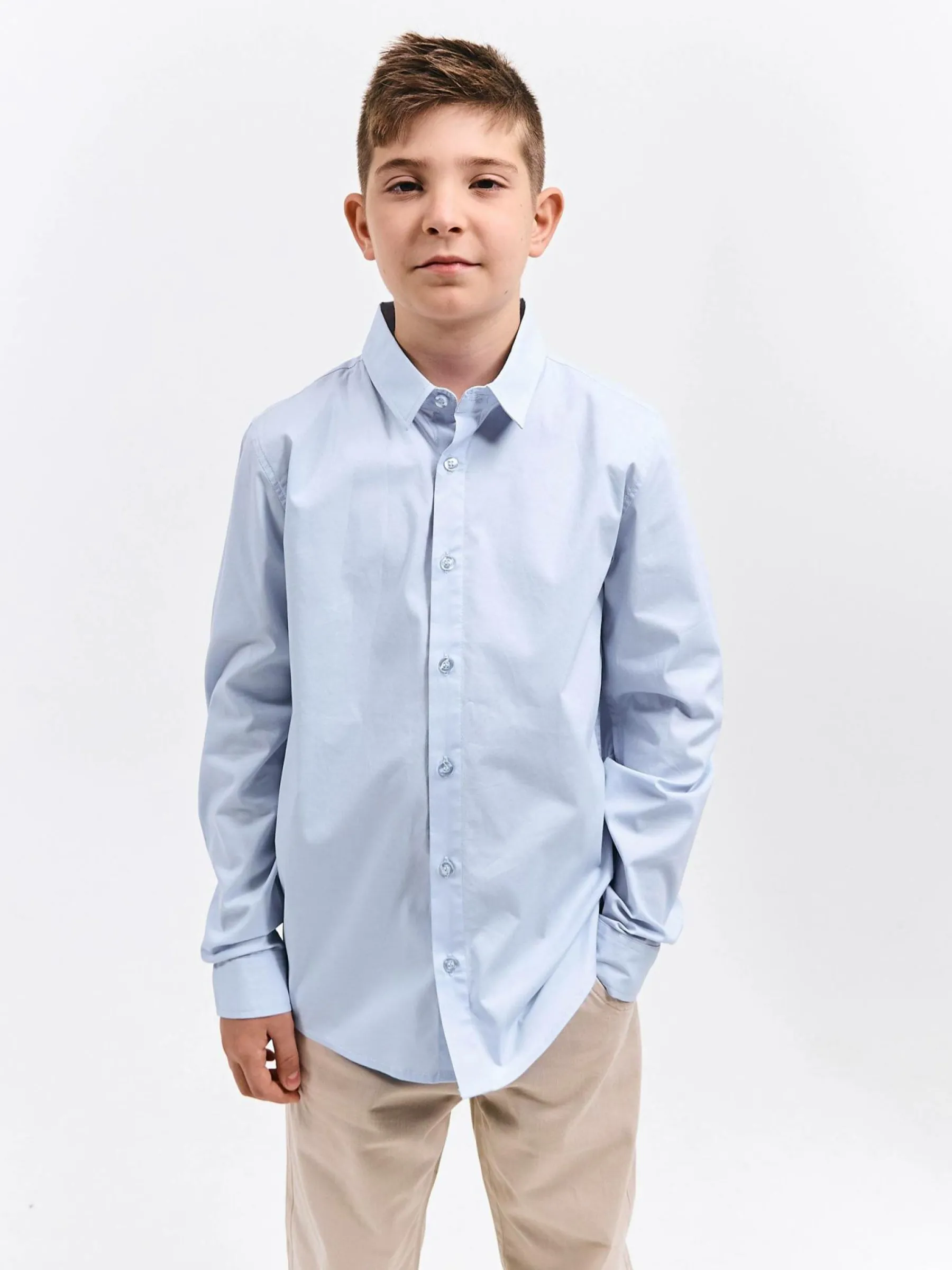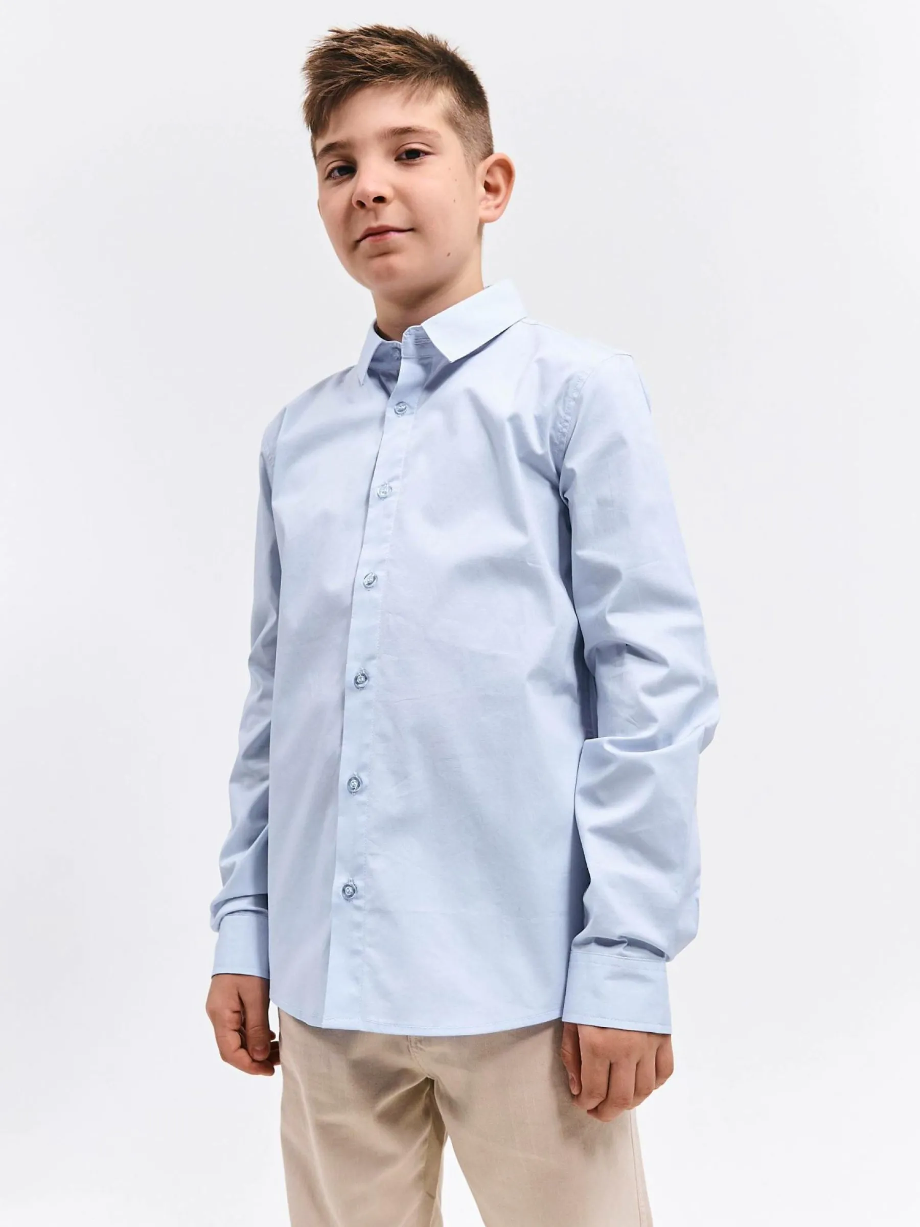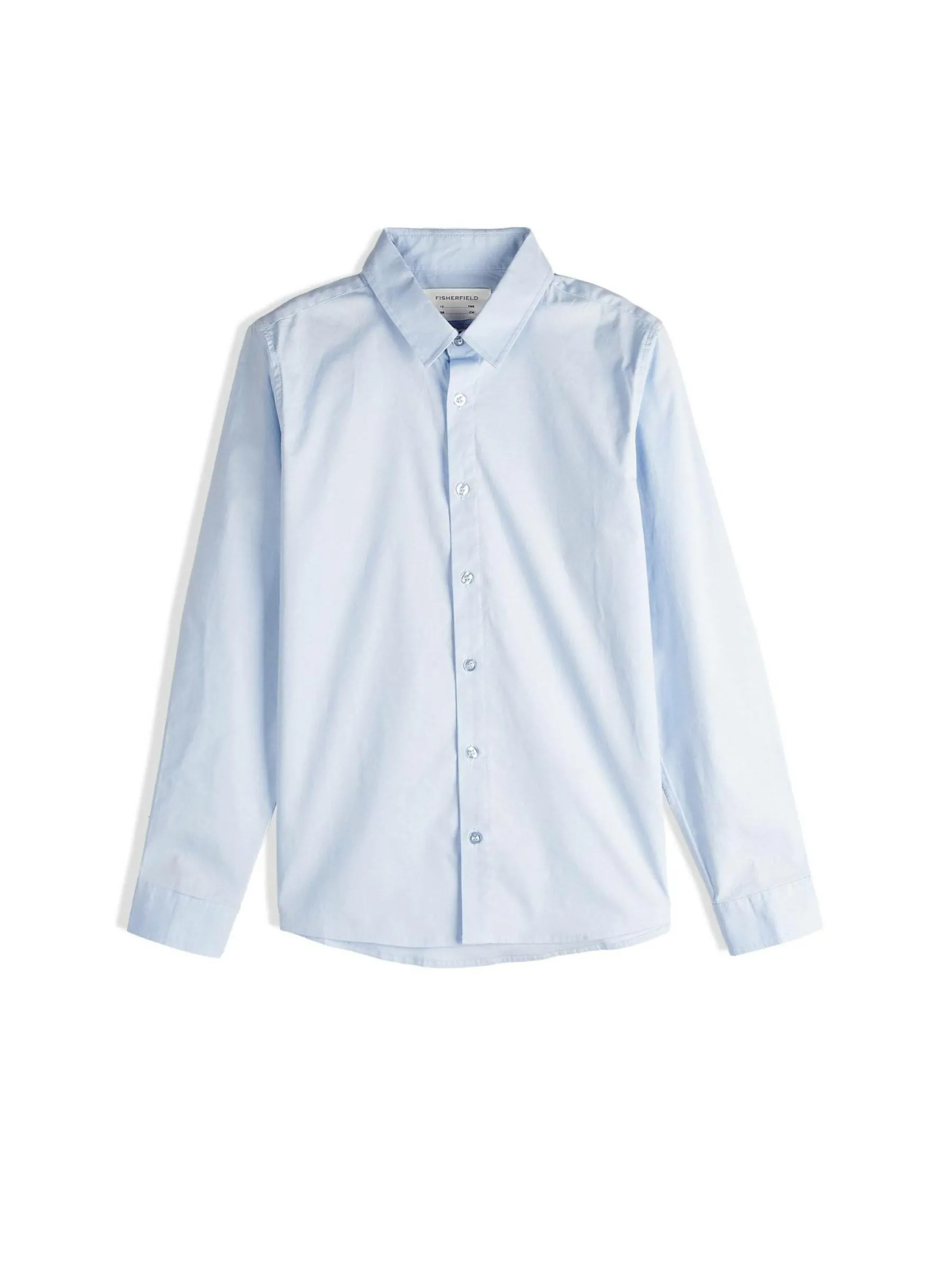 Kolor: niebieskiKrój: podstawowyTyp: koszulaRekaw: długi rękawDługość: krótkiPattern style: pojedynczy kolorDetal…