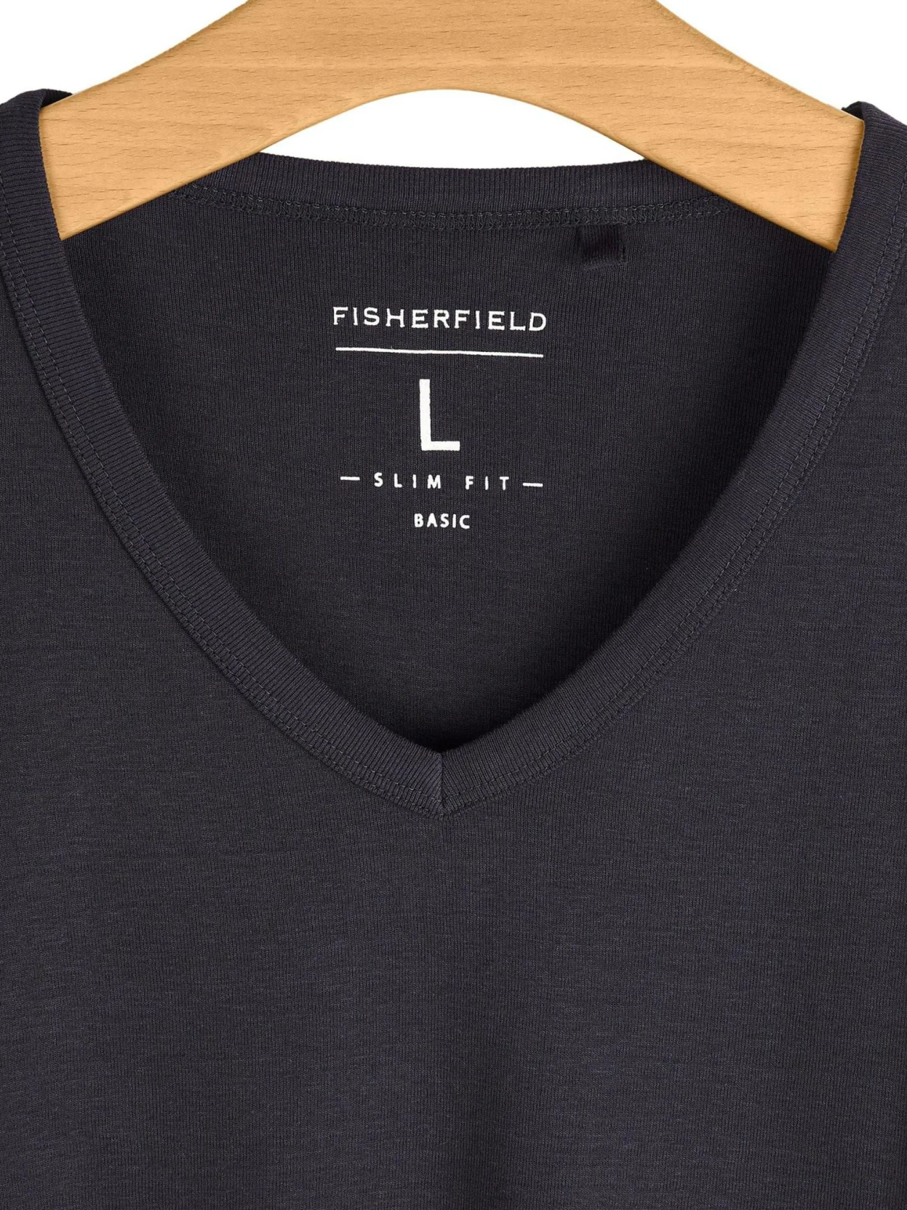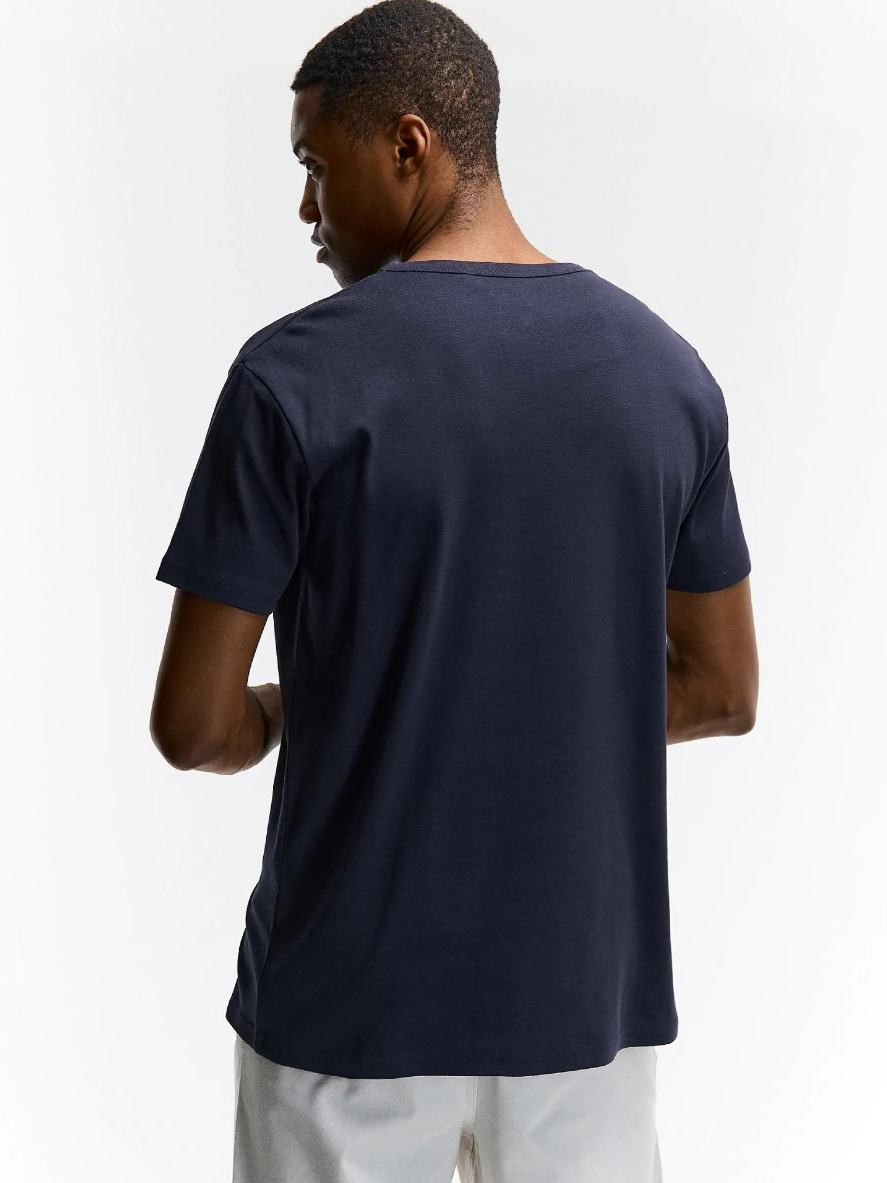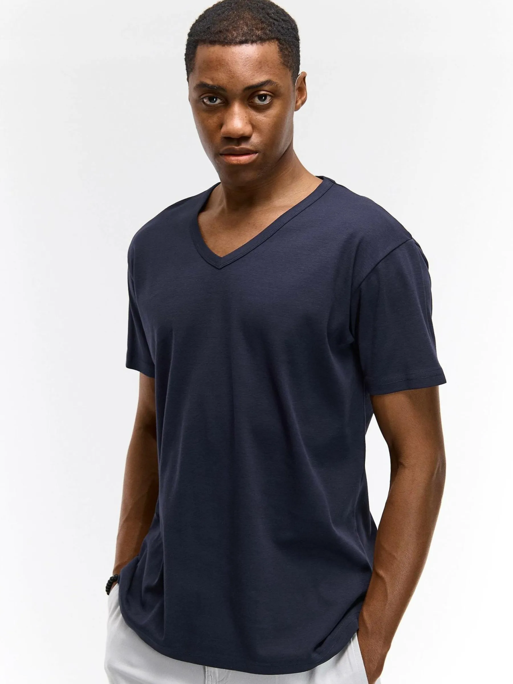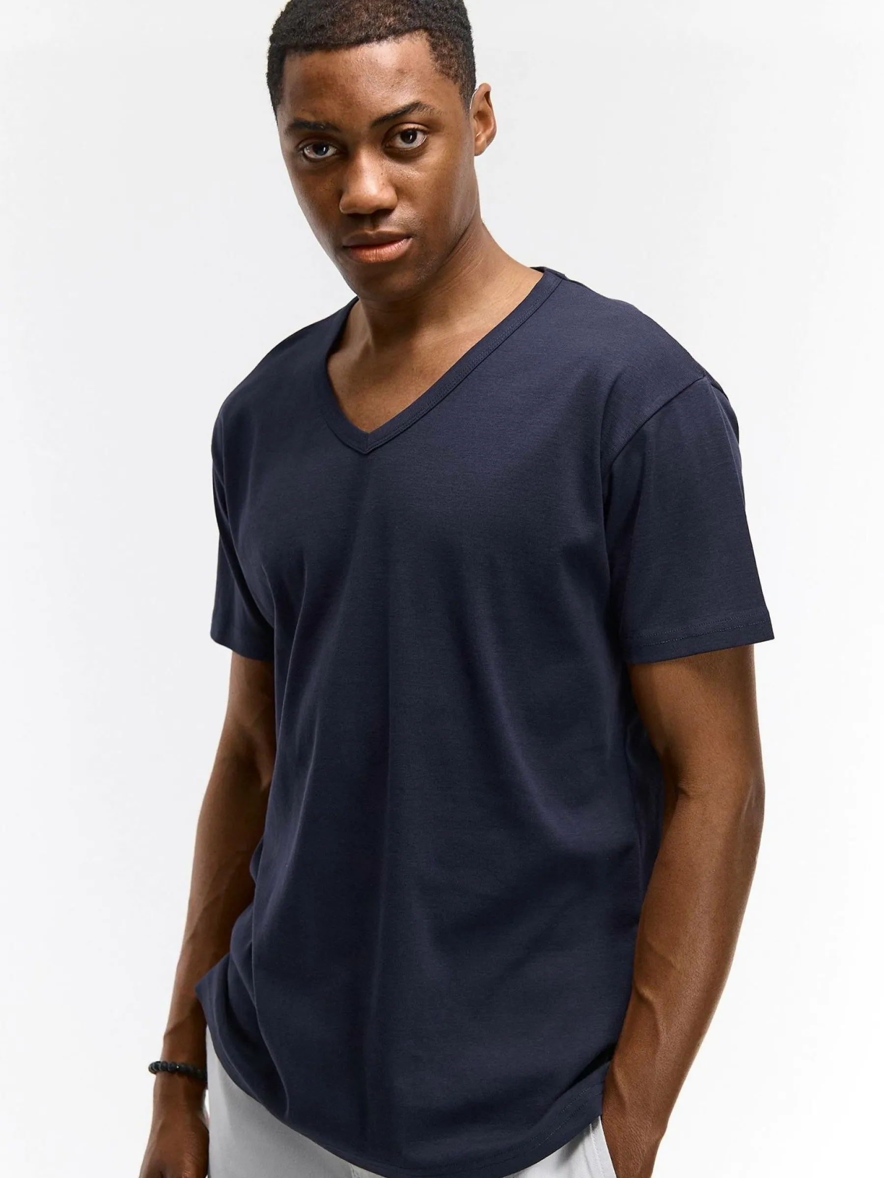 Kolor: granatowy, niebieskiKrój: regularTyp: koszulkaRekaw: krótki rękawPattern style: pojedynczy kolorDetal: v-neck,…